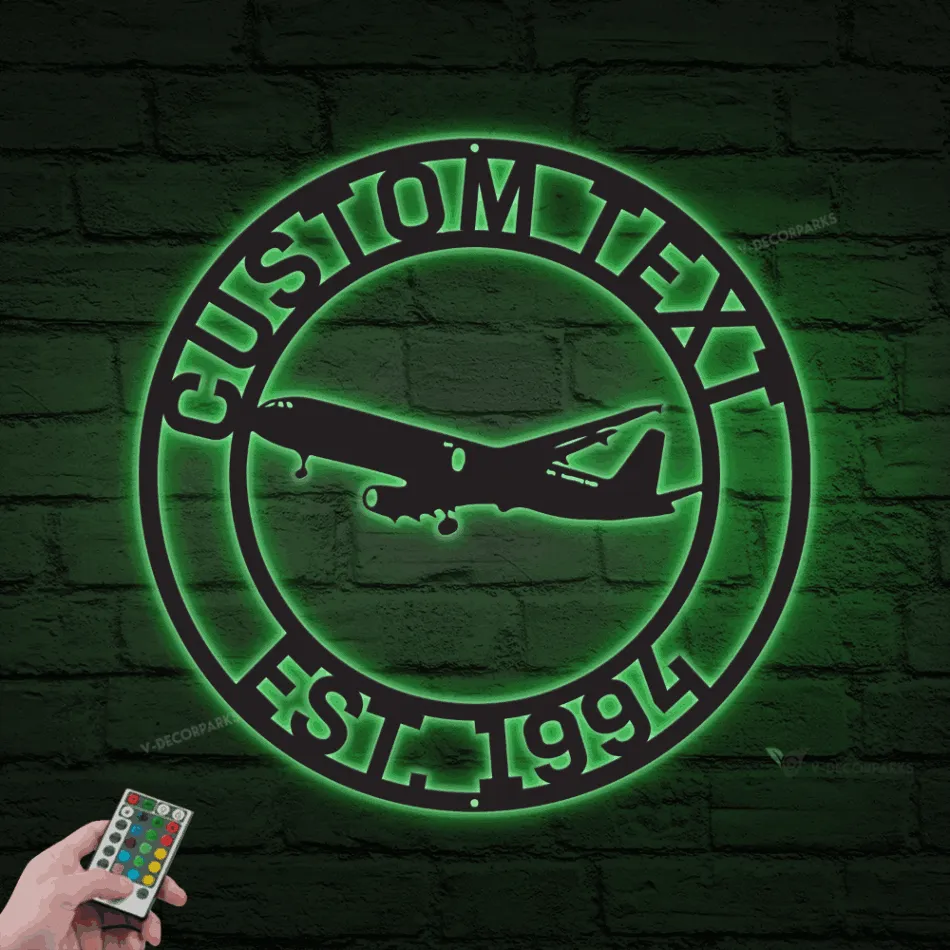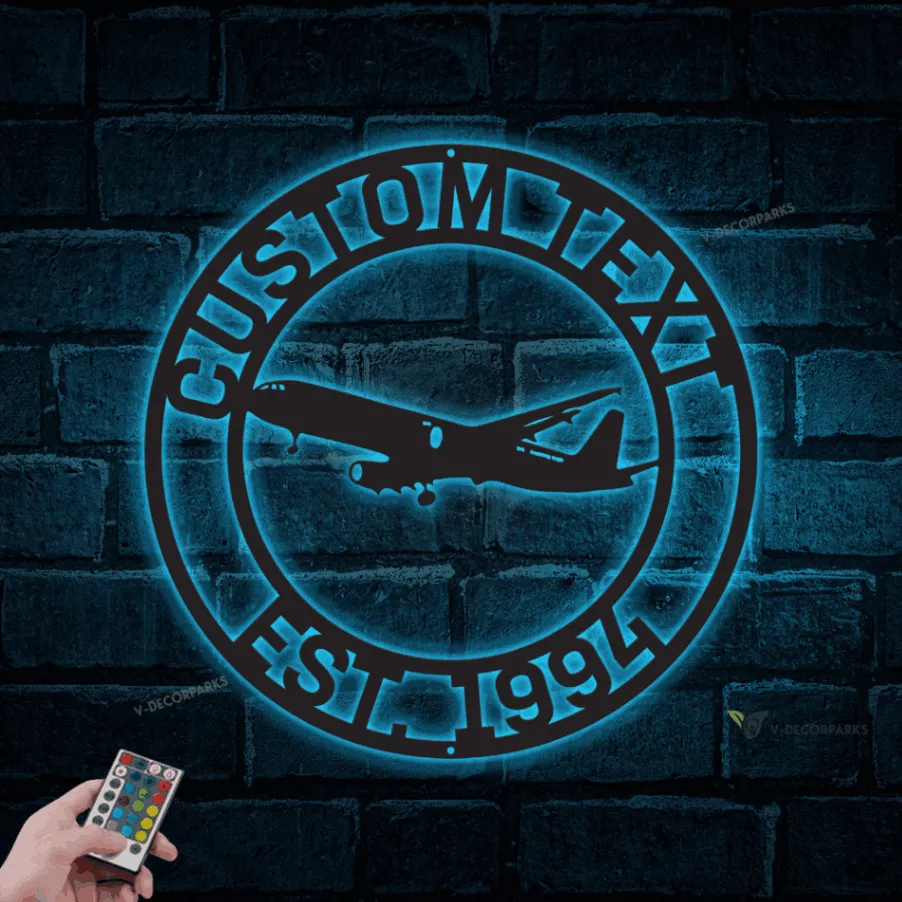 Airplane Metal Sign With Led Lights, Airplane Signs, Fathers Day Gift, Gift For Pilot, Gift For Flight Attendant, Aviation Graduation Gift