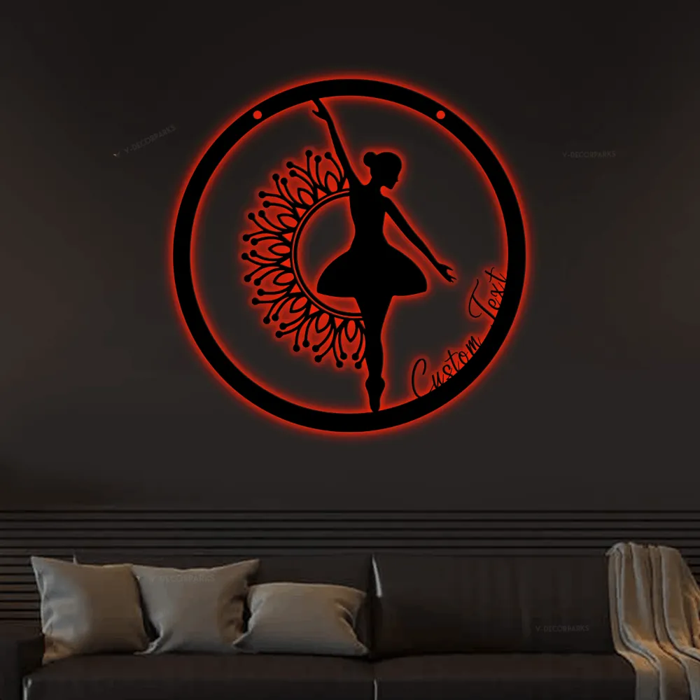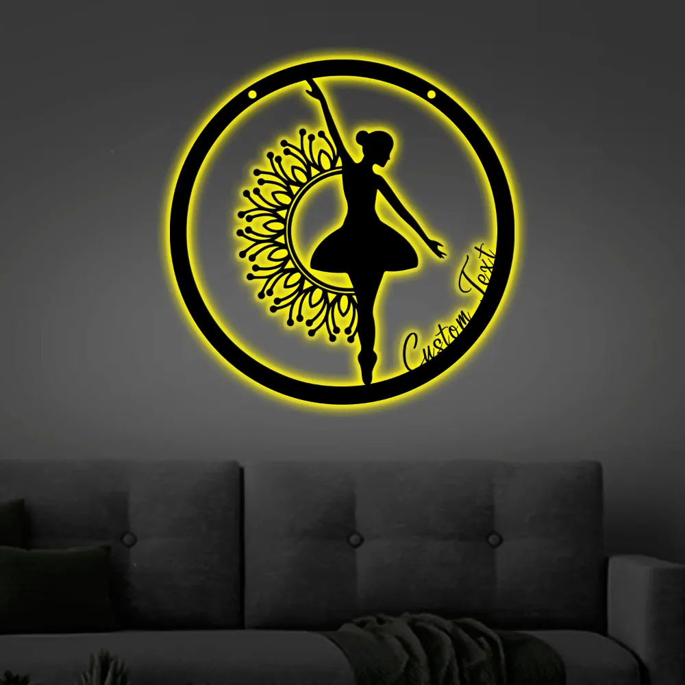 Ballerina Personalized Led Lights Metal Sign, Custom Name Wall Art, Ballet Metal Art, Gift For Her, Birthday Gift, She Shed Metal Sign