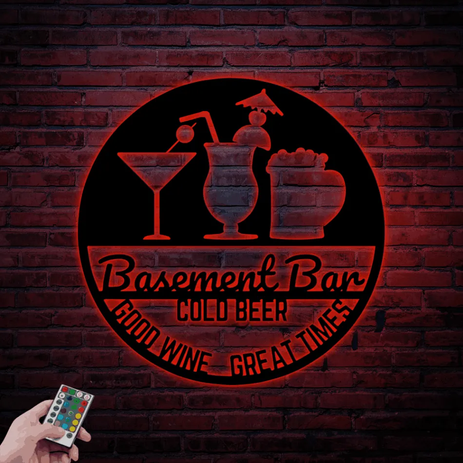 Basement Bar Cocktail Sign With Led Lights, Bar Car Decor Basement Bar Sign Outdoor Bar Decor Cocktails Sign Custom Bar Sign Bar Sign