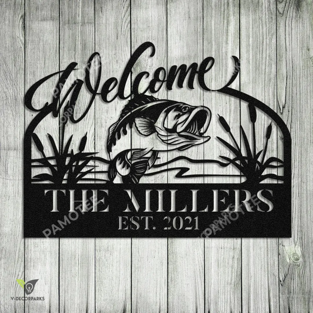 Bass Fish Personalized Metal Welcome Sign, Custom Family And Est. Year, Small Medium Large Sizes
