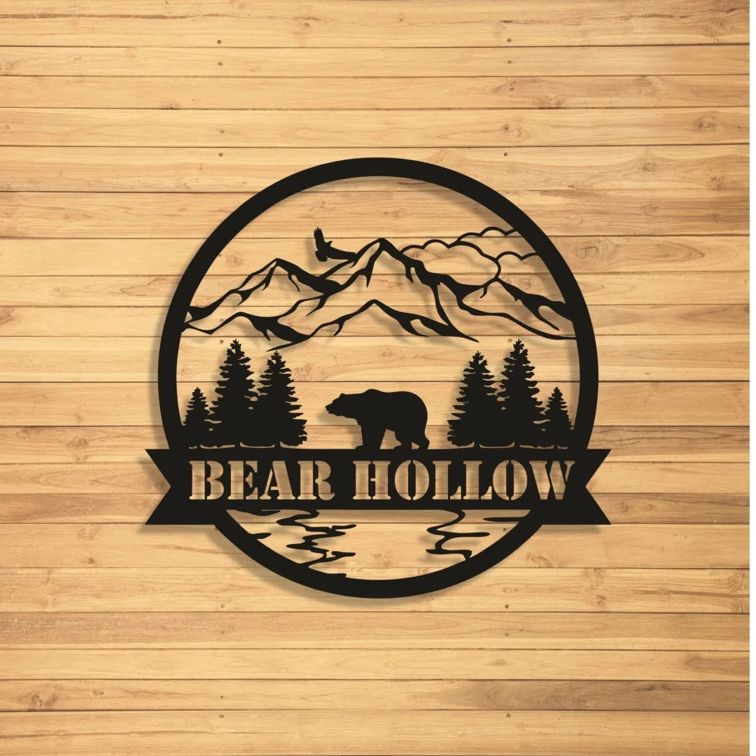 Bear Metal Sign, Bear Decor, Metal Bear Sign, Bear In Woods Cabin Sign, Family Name Black Bear Sign, Personalized Bear Sign, Metal Wall Art