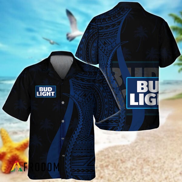 Bud Light Beer Hawaiian Shirt For Men – Blue Polynesian Pattern – Tribal Style Summer Beach Vacation Outfit