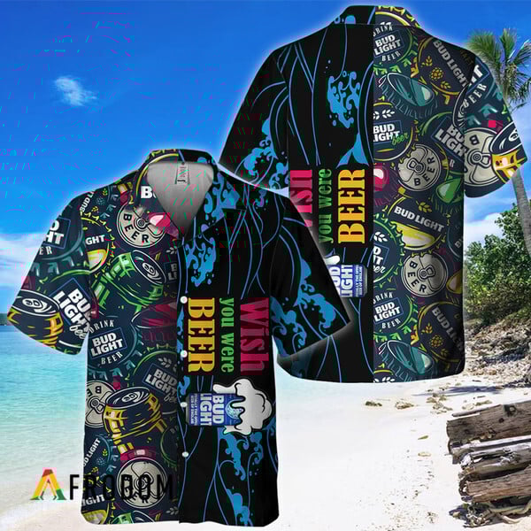 Bud Light Beer Hawaiian Shirt For Men – Wish You Were Beer Can – Funny Drinking Summer Beach Gift