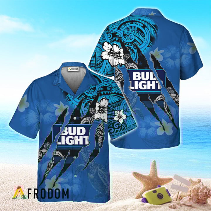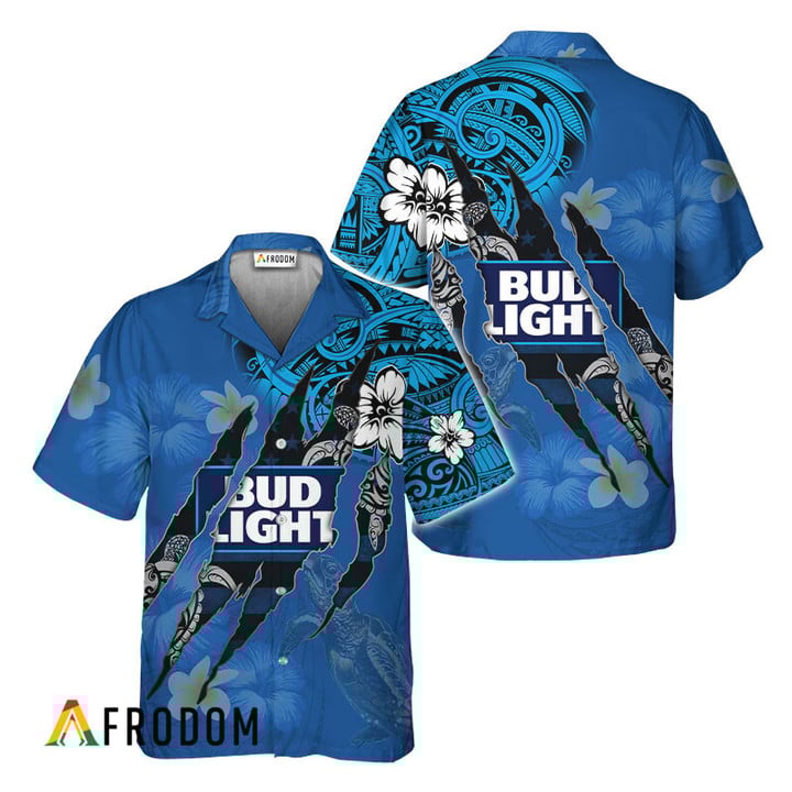 Bud Light Hawaiian Shirt For Men – Polynesian Tattoo Tropical Blue – Casual Streetwear Summer Outfit
