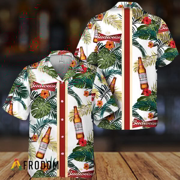 Budweiser Beer Hawaiian Shirt For Men – Tropical Floral Stripe Pattern – Casual Golf Summer Outfit For Husband