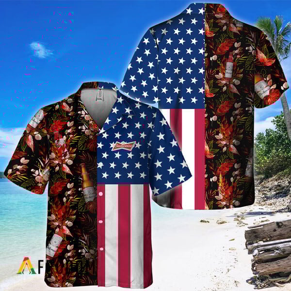 Budweiser Beer Hawaiian Shirt For Men – Us Flag Tropical Flowers Design – Patriotic 4th Of July Gift For Dad