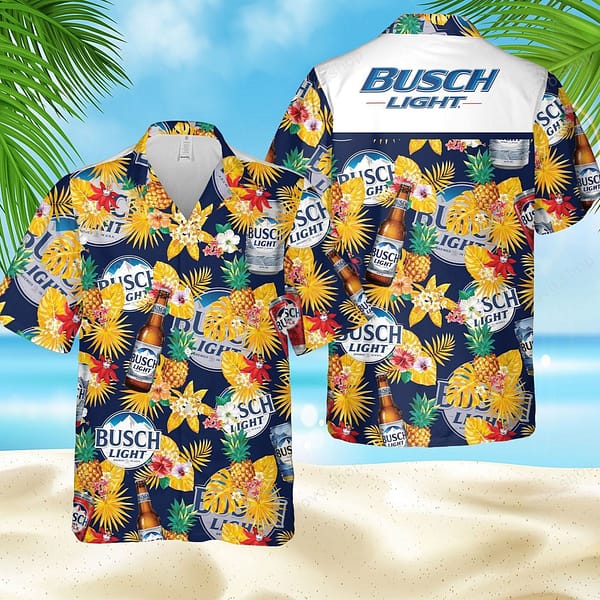 Busch Light Beer Hawaiian Shirt For Men – Tropical Pineapple Design – Summer Beach Vacation Gift For Dad