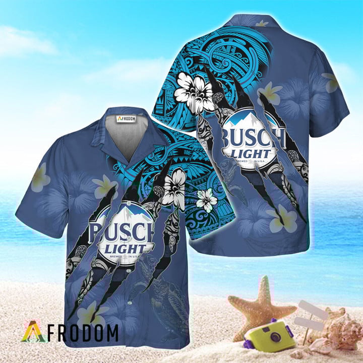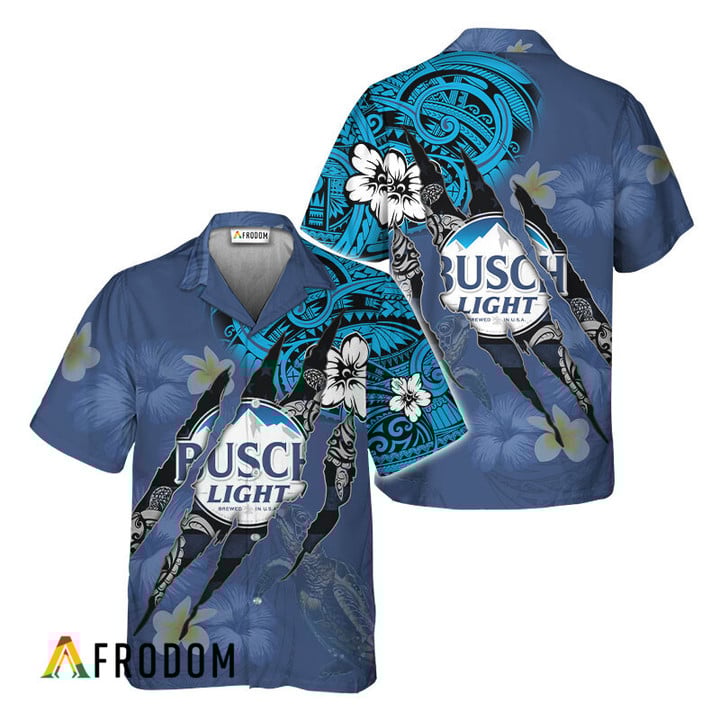 Busch Light Hawaiian Shirt For Men – Polynesian Tattoo Tropical Blue – Casual Streetwear Gift