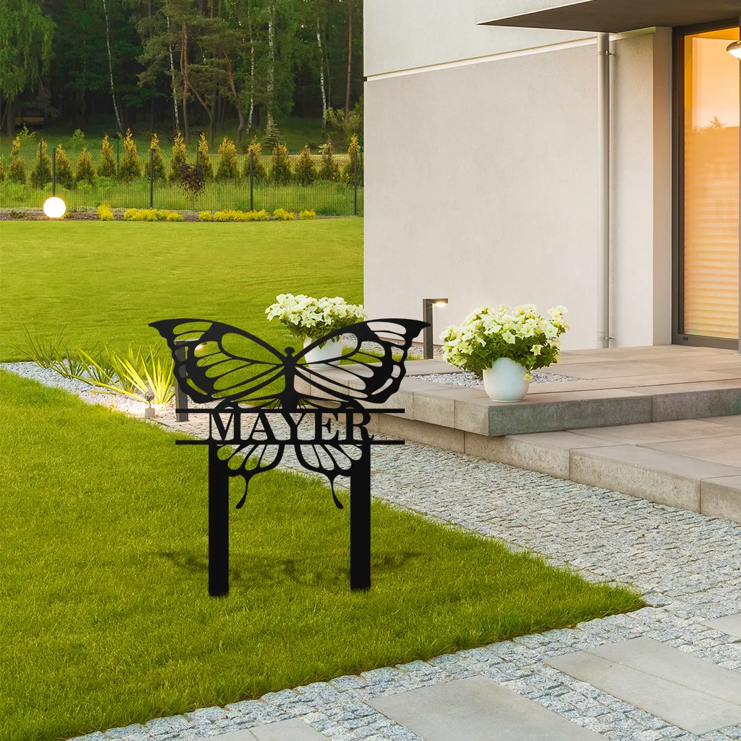 Butterfly Yard Stake, Cut Metal Sign