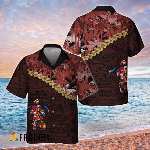 Captain Morgan Hawaiian Shirt For Men – Red Palm Tree Polynesian Blend – Tribal Style Summer Outfit