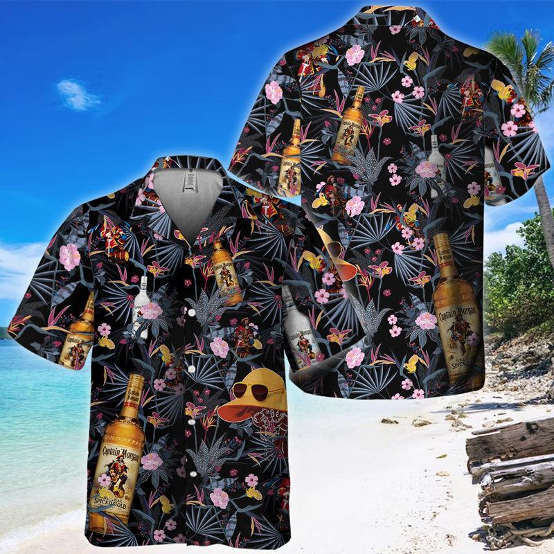 Captain Morgan Hawaiian Shirt For Men – Tropical Floral Pattern – Summer Beach Vacation Gift For Dad