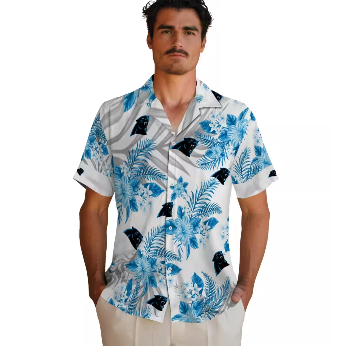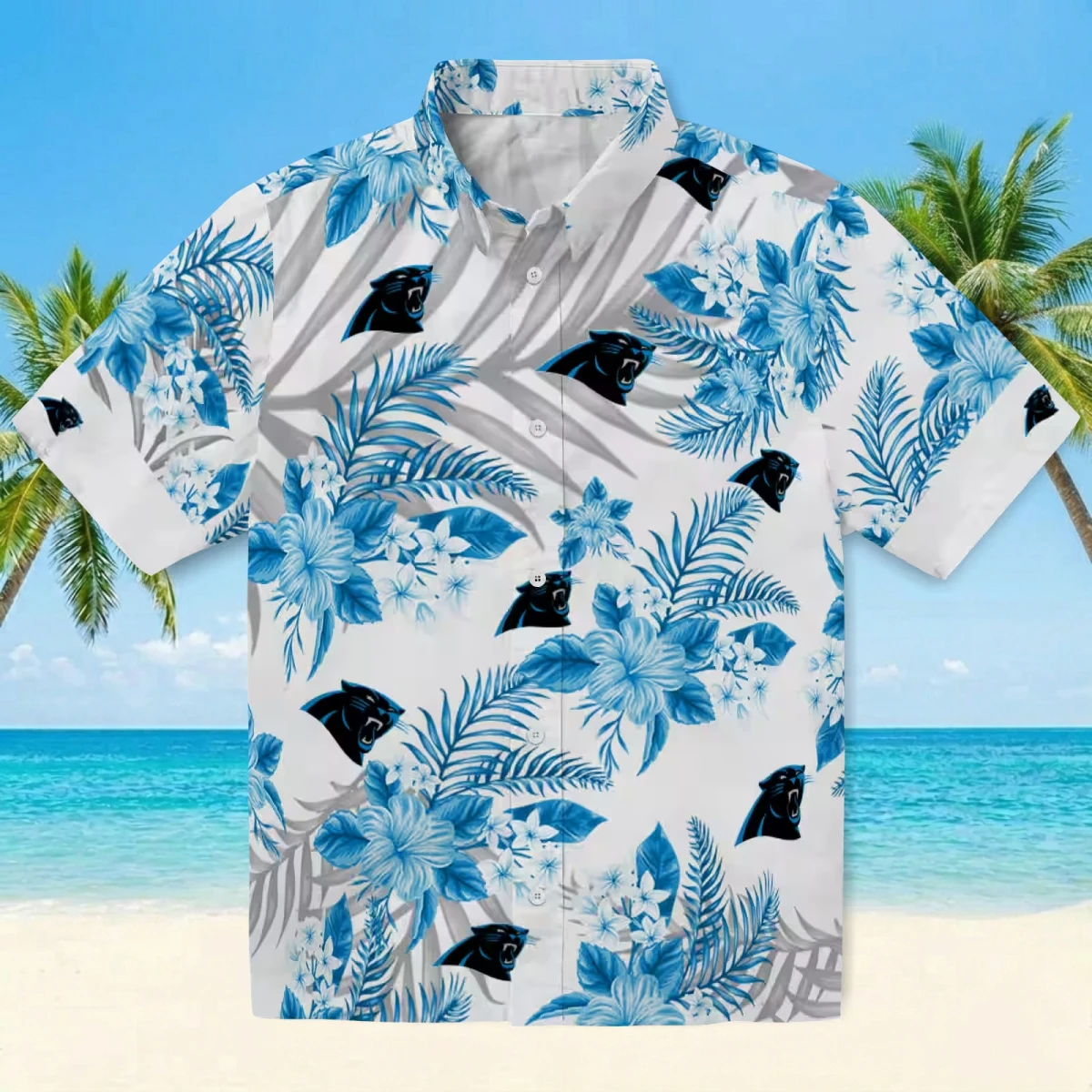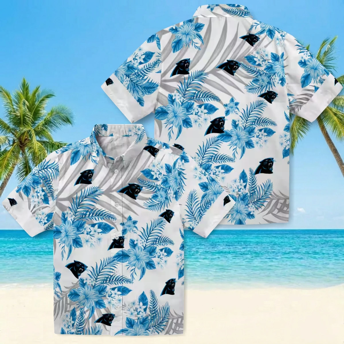 Carolina Panthers Hawaiian Shirt � Hibiscus Palm Leaves Blue White, Casual Button Down For Men & Women
