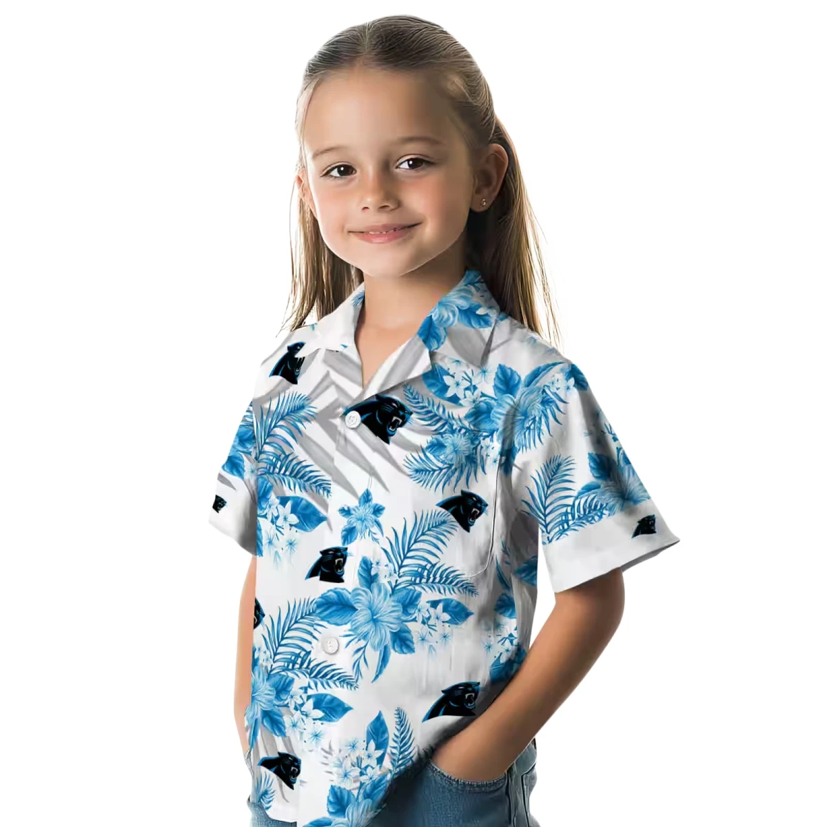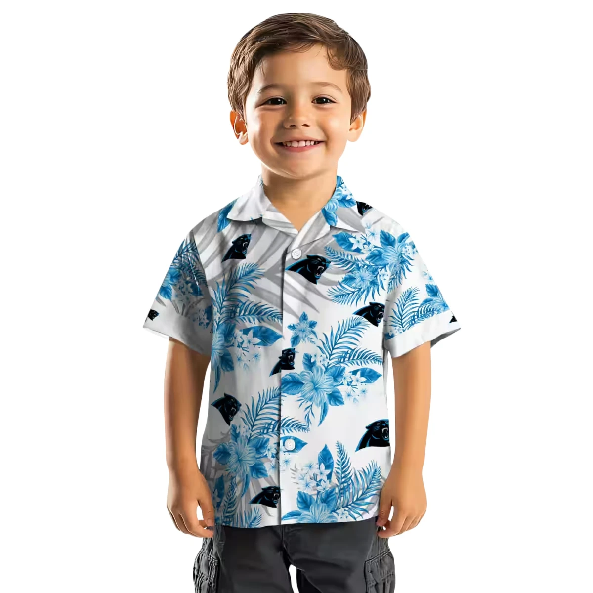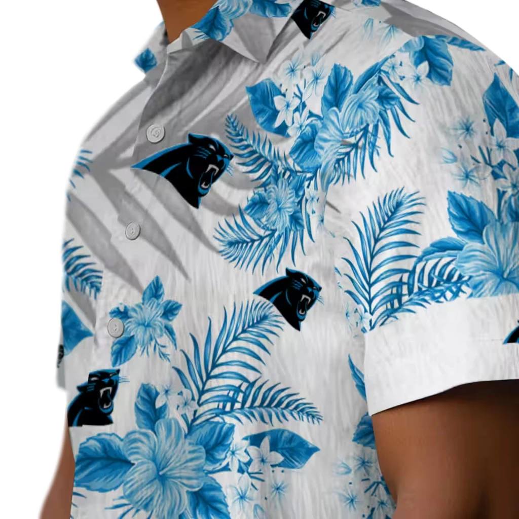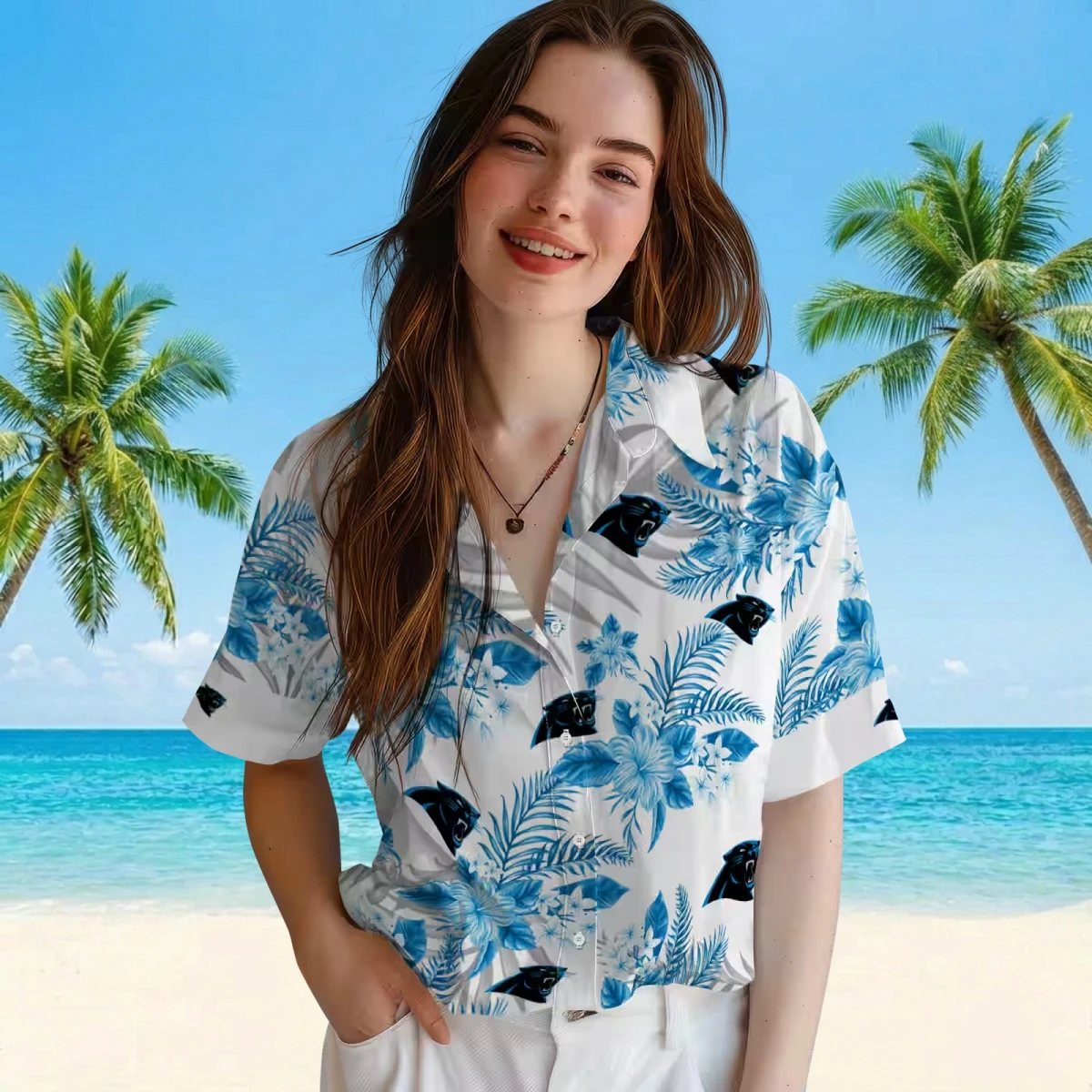 Carolina Panthers Hawaiian Shirt � Hibiscus Palm Leaves Blue White, Casual Button Down For Men & Women