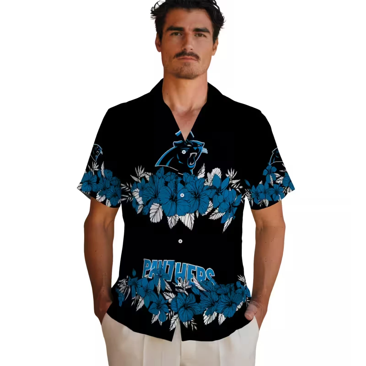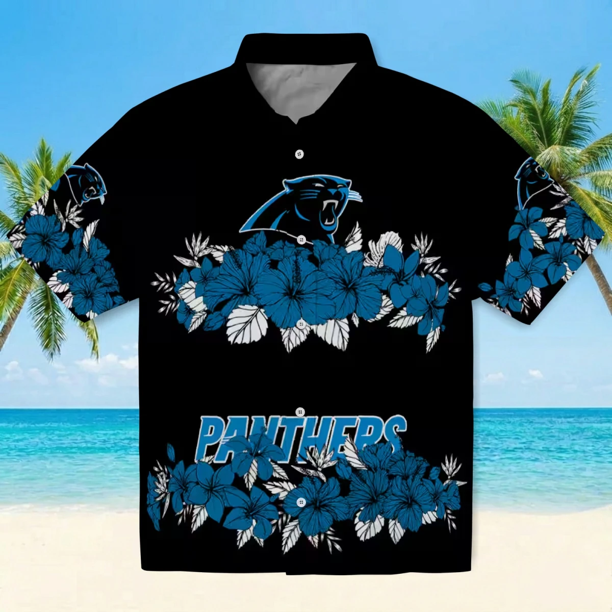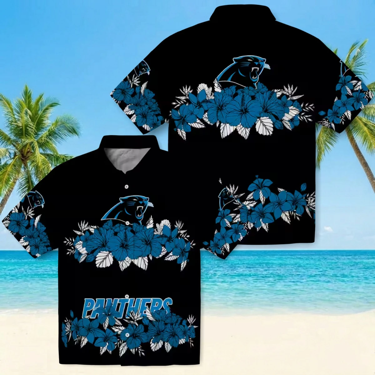 Carolina Panthers Hawaiian Shirt � Hibiscus Stripe Blue Black, Casual Button Down For Men & Women