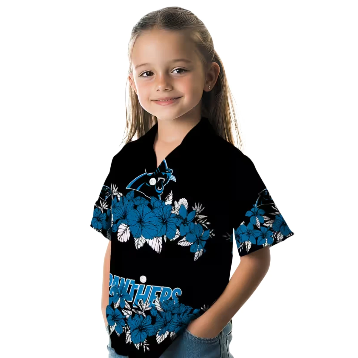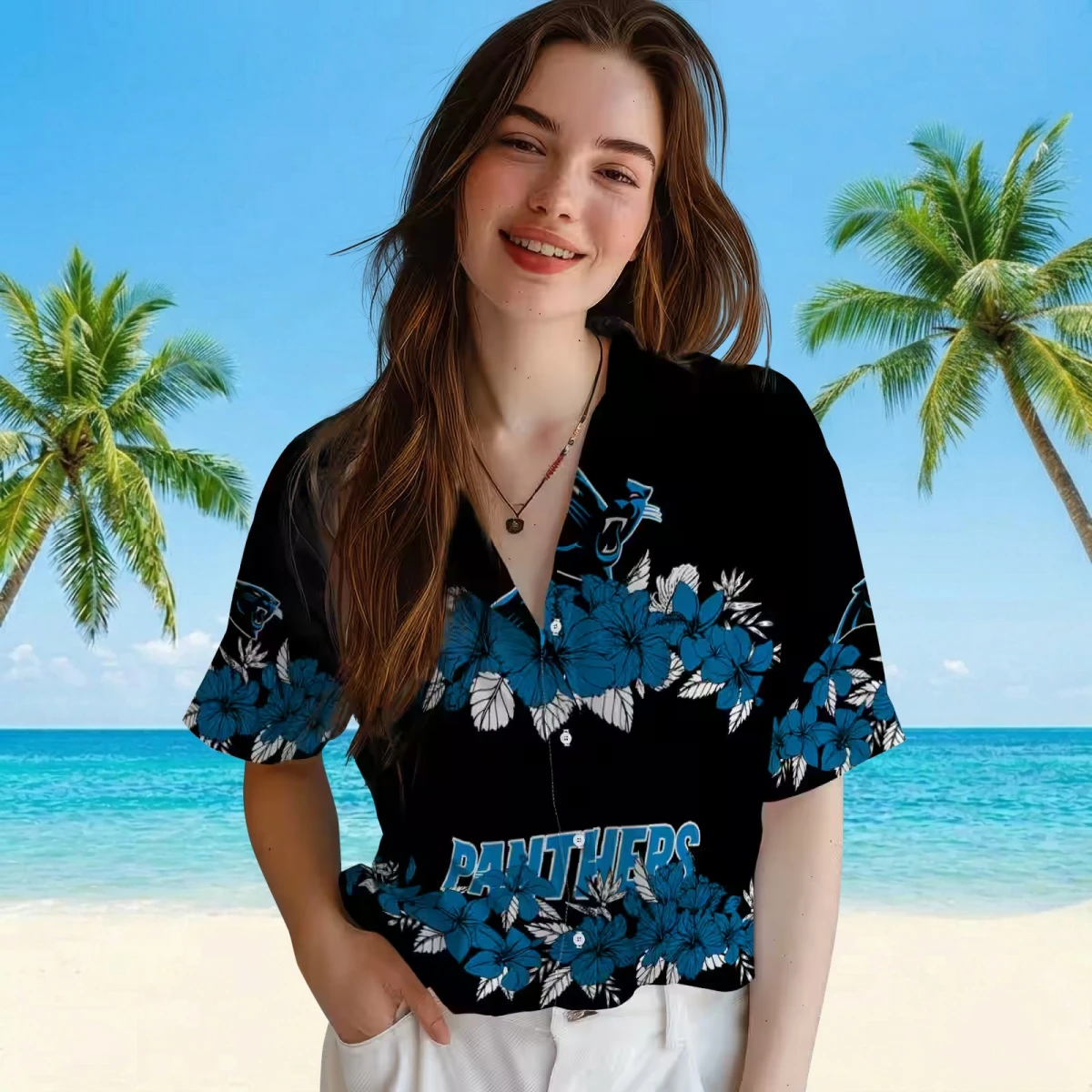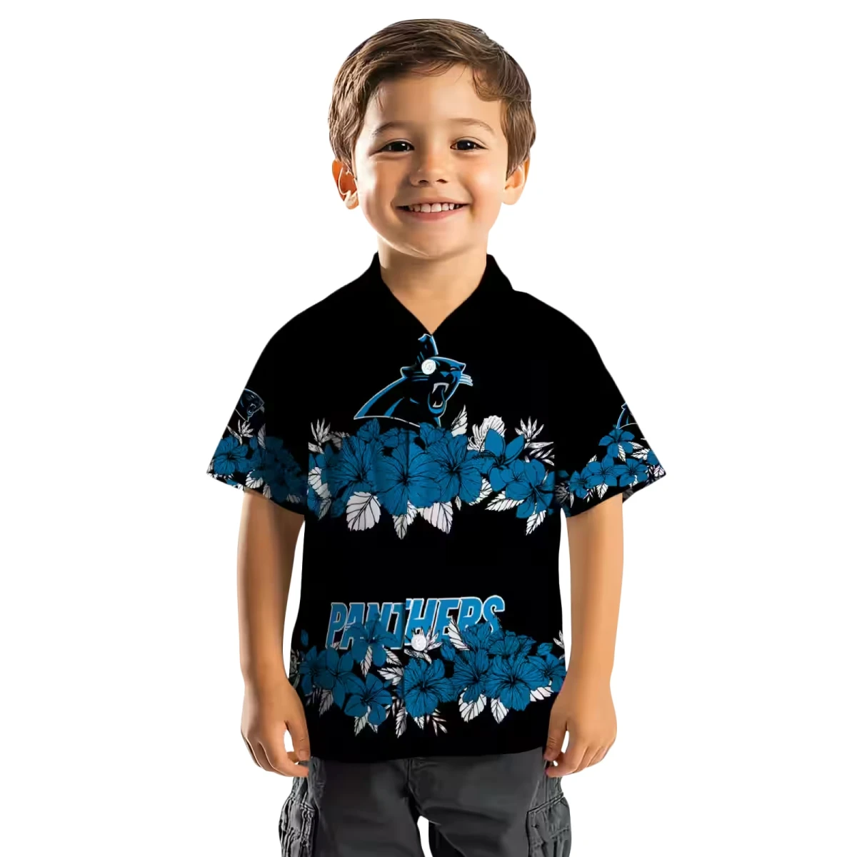 Carolina Panthers Hawaiian Shirt � Hibiscus Stripe Blue Black, Casual Button Down For Men & Women