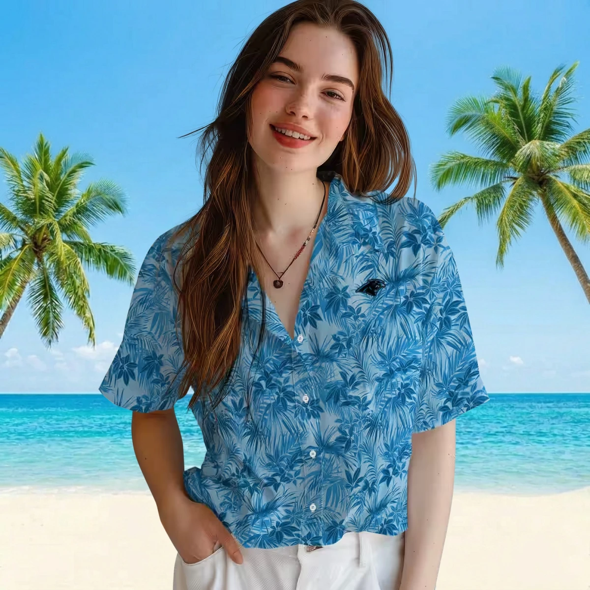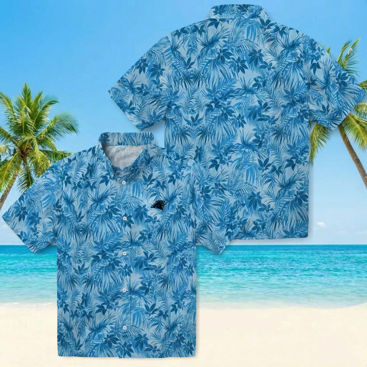 Carolina Panthers Hawaiian Shirt � Leafy Pattern Blue, Casual Button Down For Men & Women