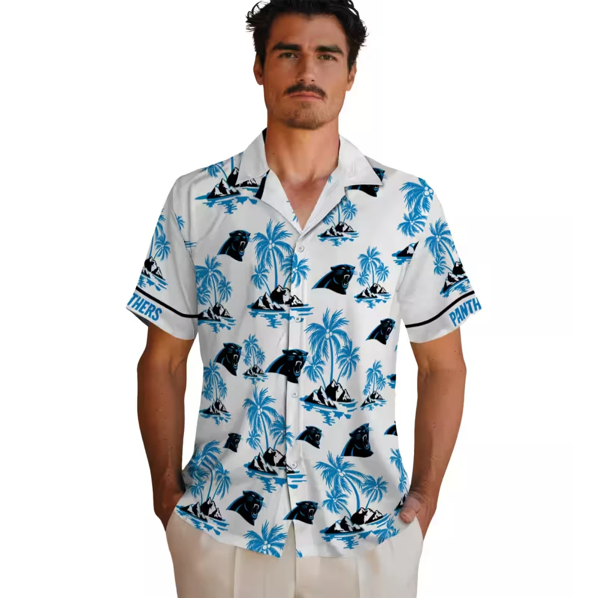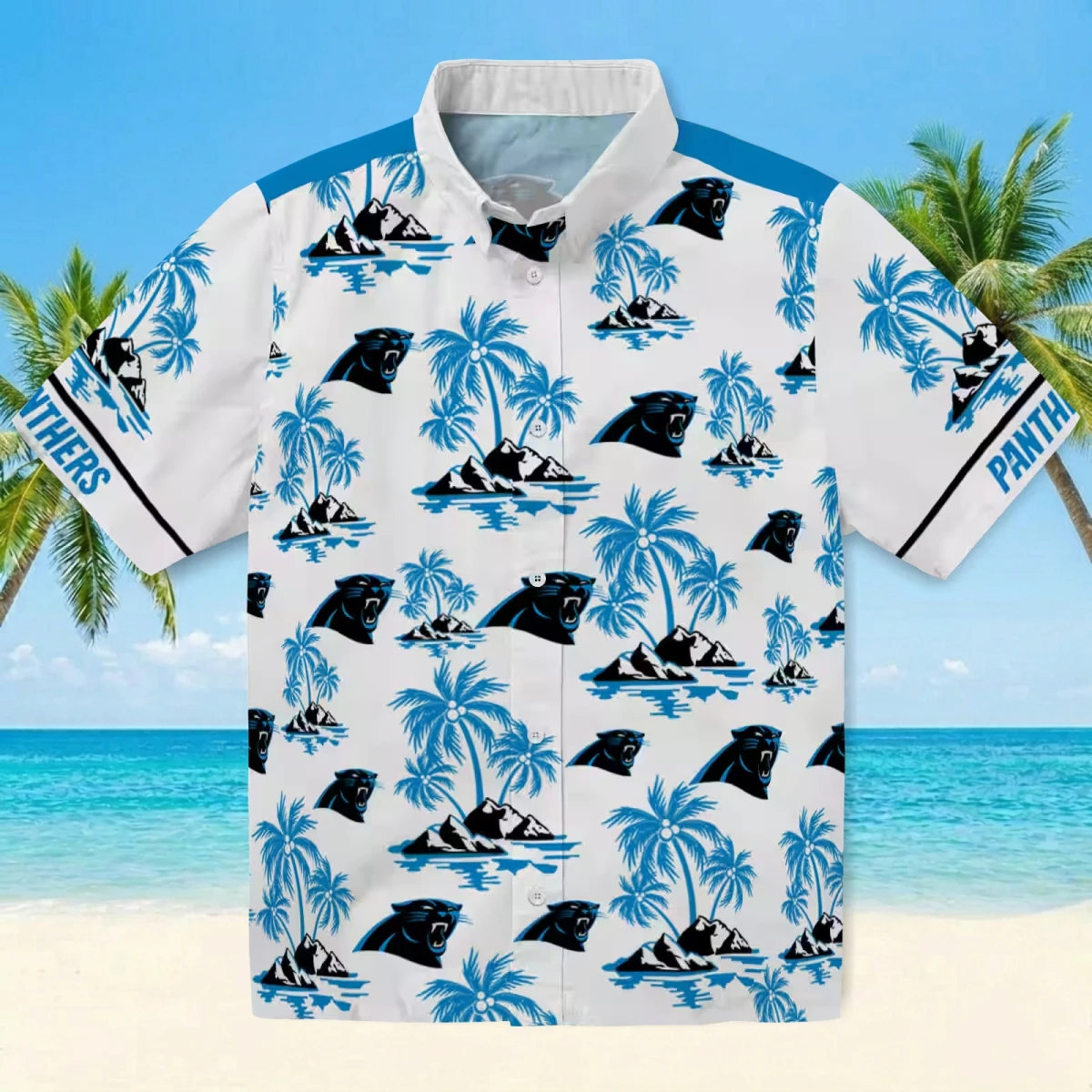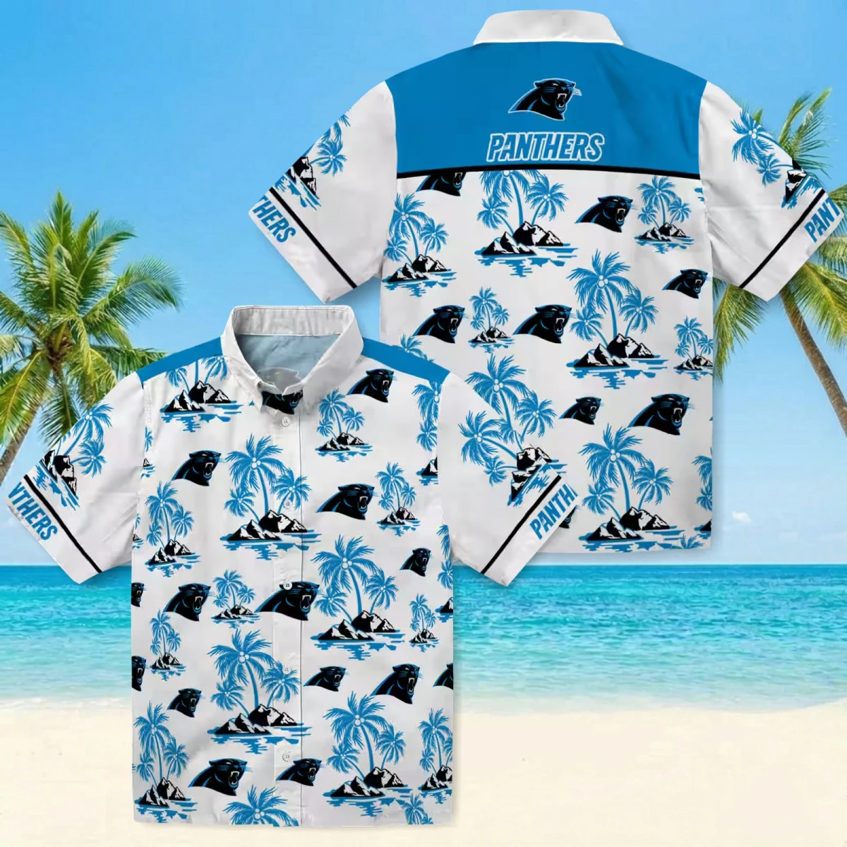 Carolina Panthers Hawaiian Shirt � Palm Island Print Blue White, Casual Button Down For Men & Women