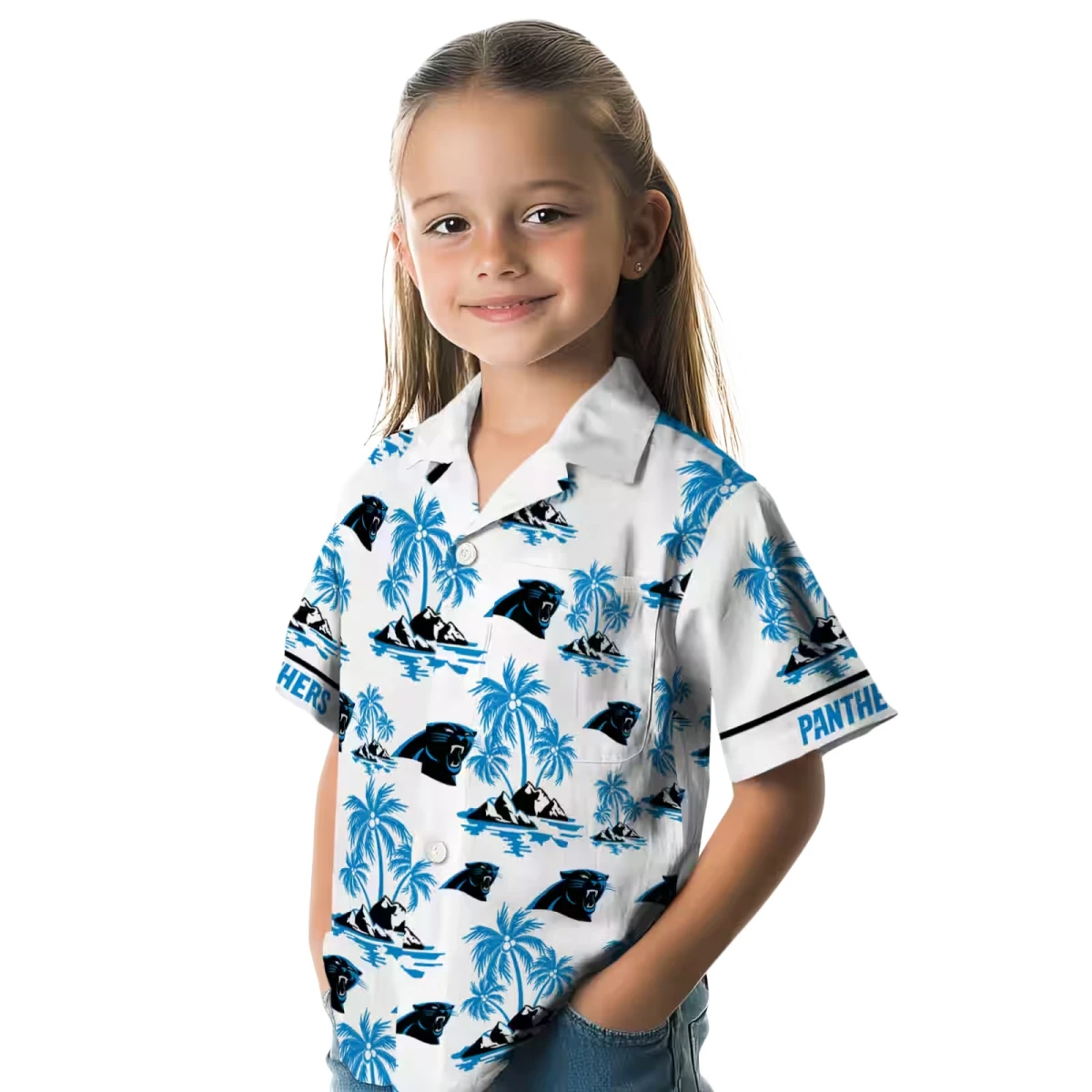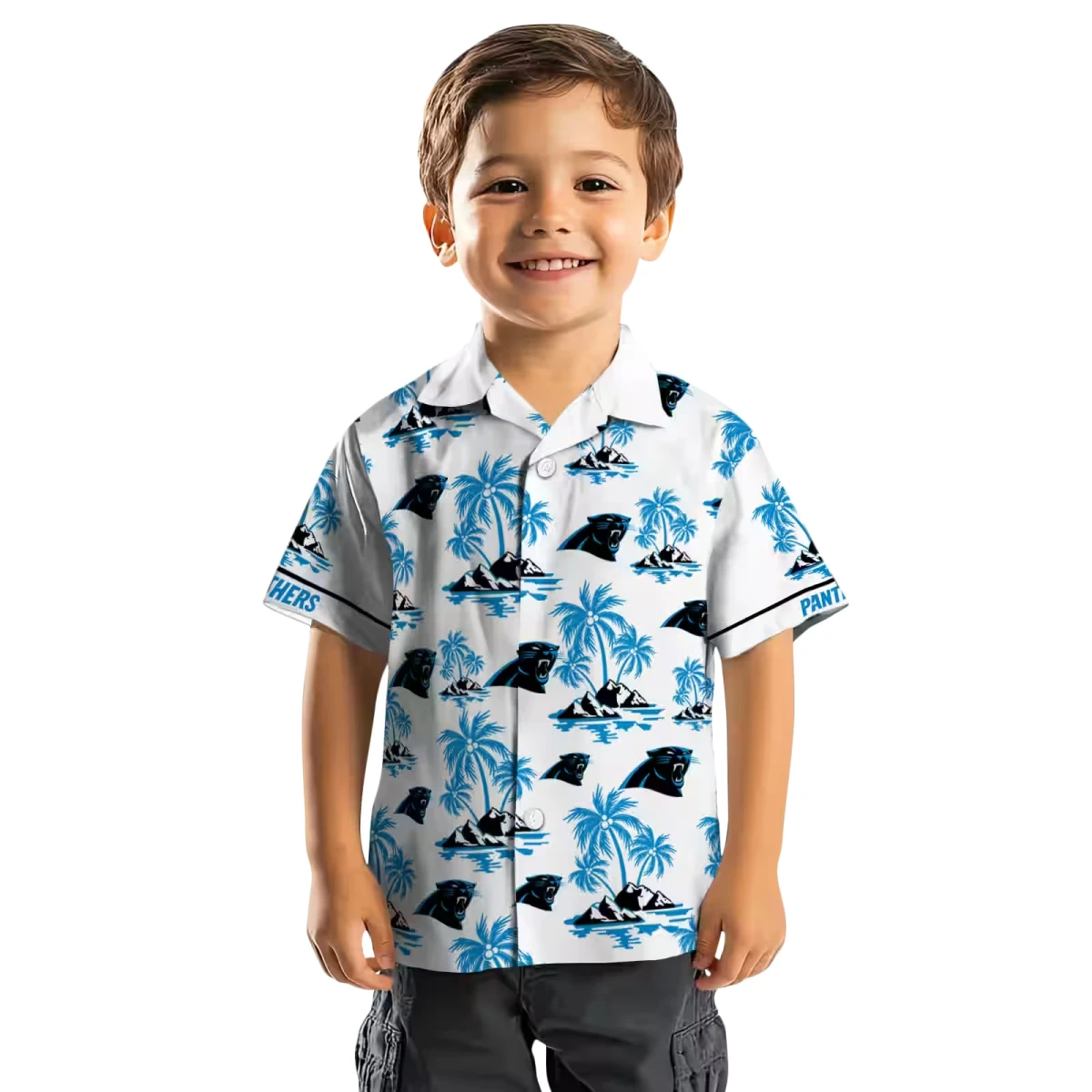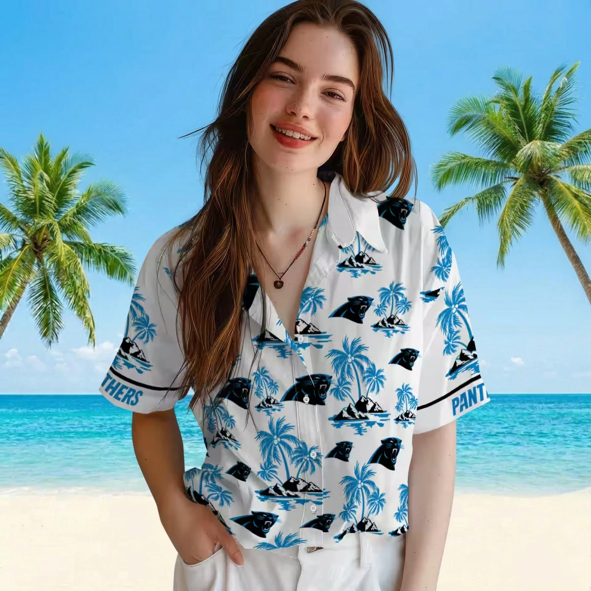 Carolina Panthers Hawaiian Shirt � Palm Island Print Blue White, Casual Button Down For Men & Women