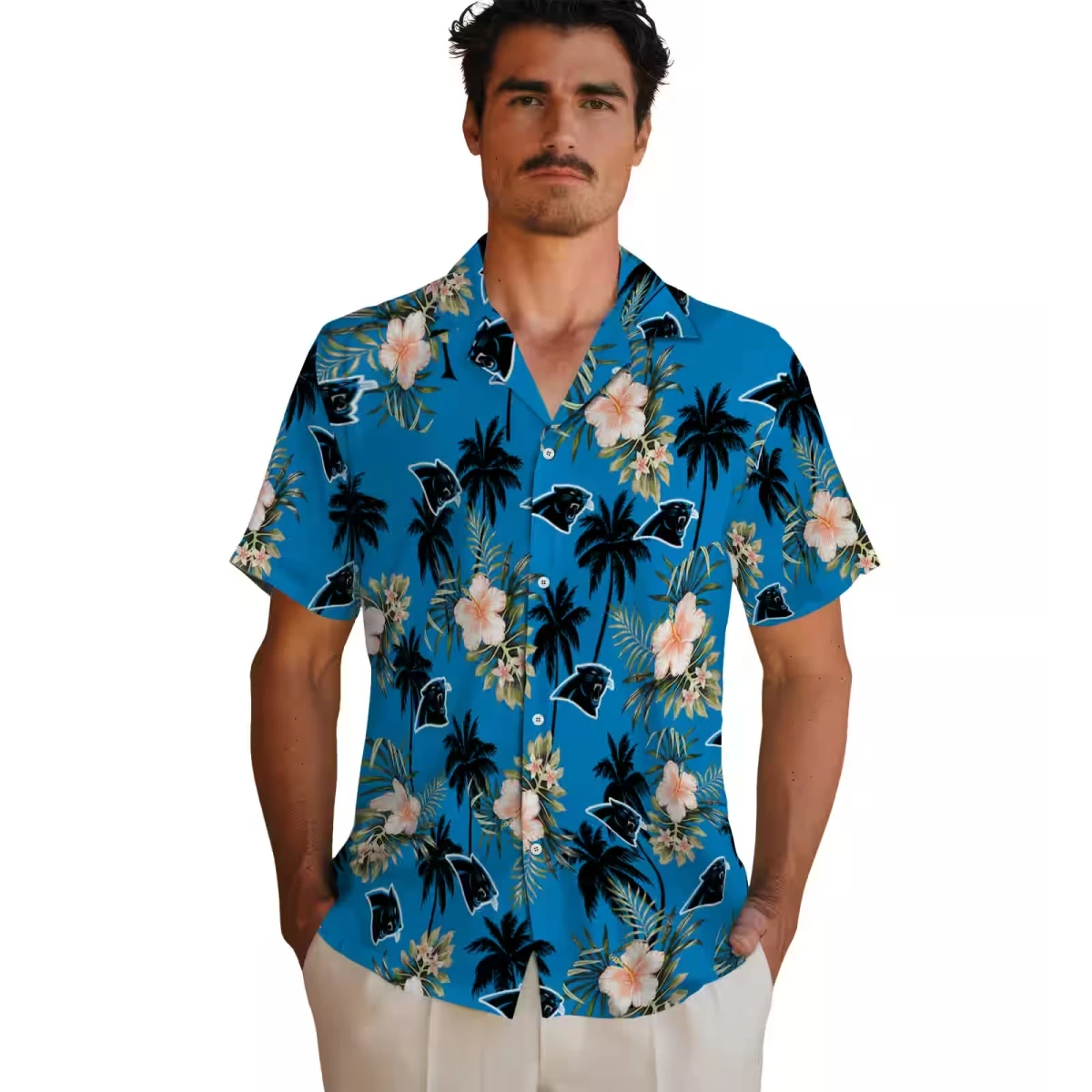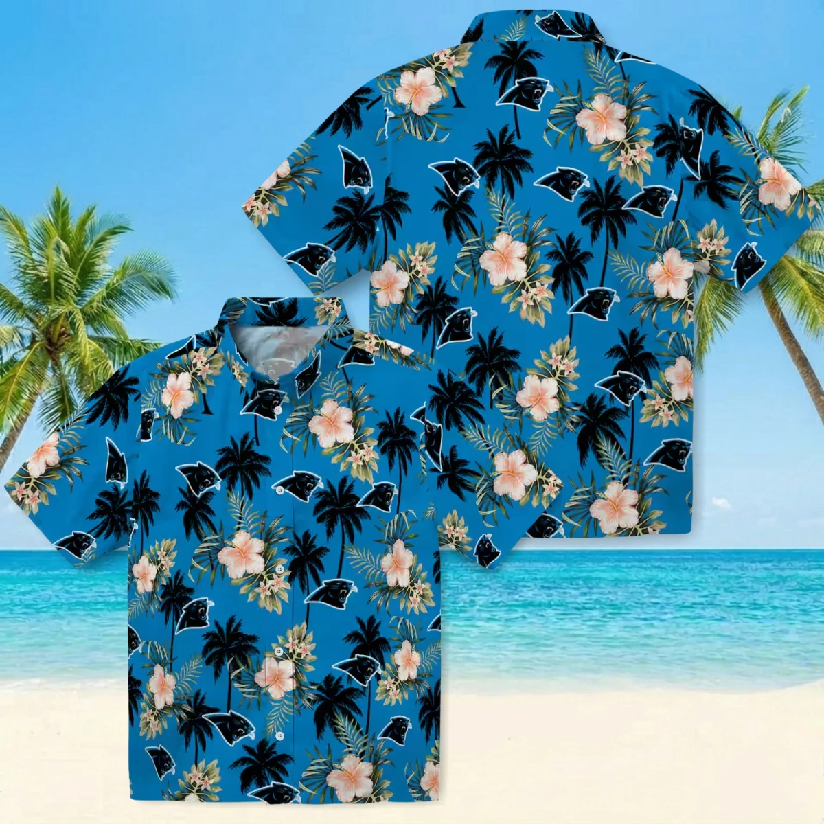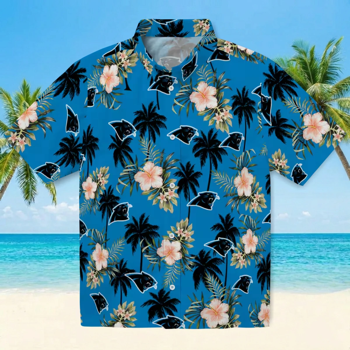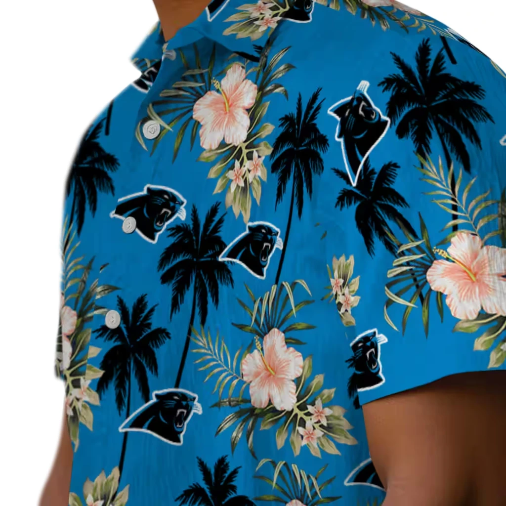 Carolina Panthers Hawaiian Shirt � Palm Tree Flower Blue, Casual Button Down For Men & Women