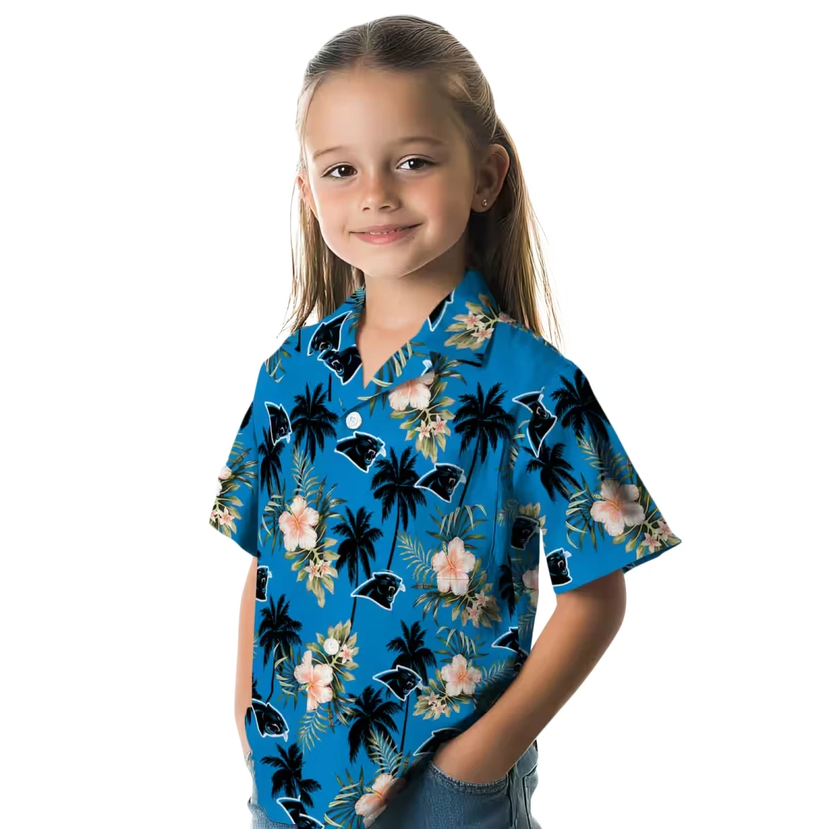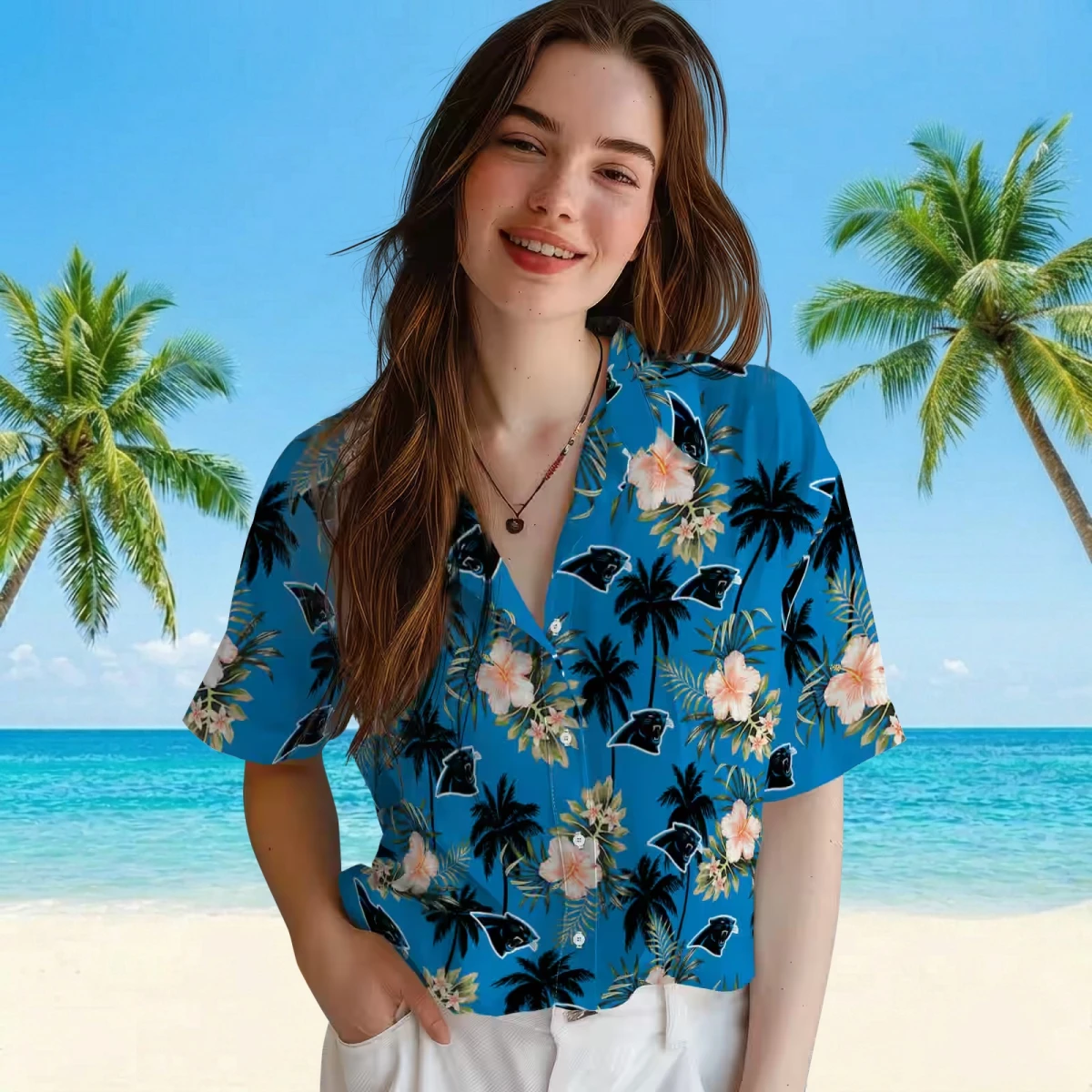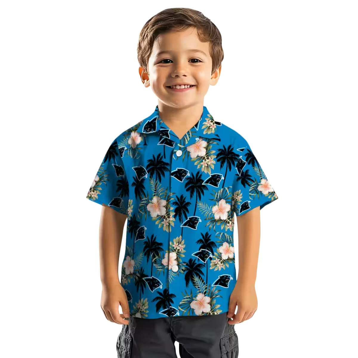 Carolina Panthers Hawaiian Shirt � Palm Tree Flower Blue, Casual Button Down For Men & Women