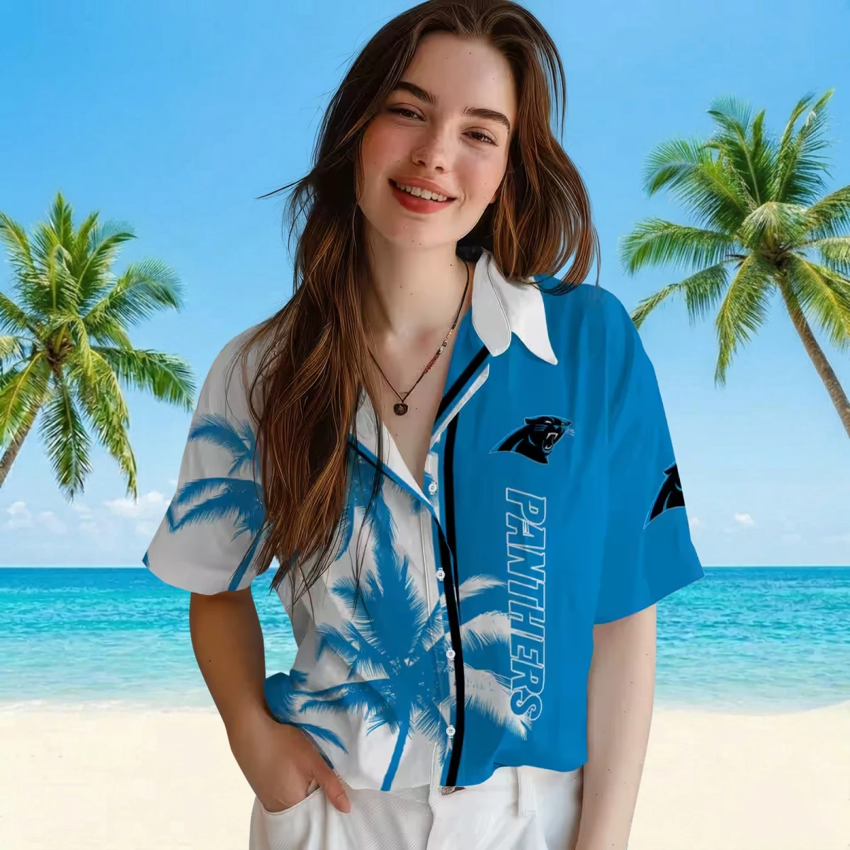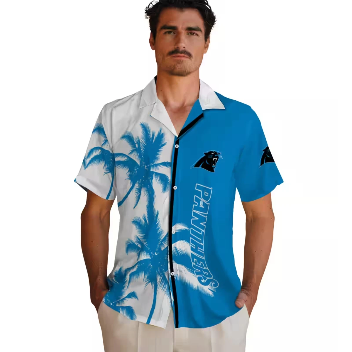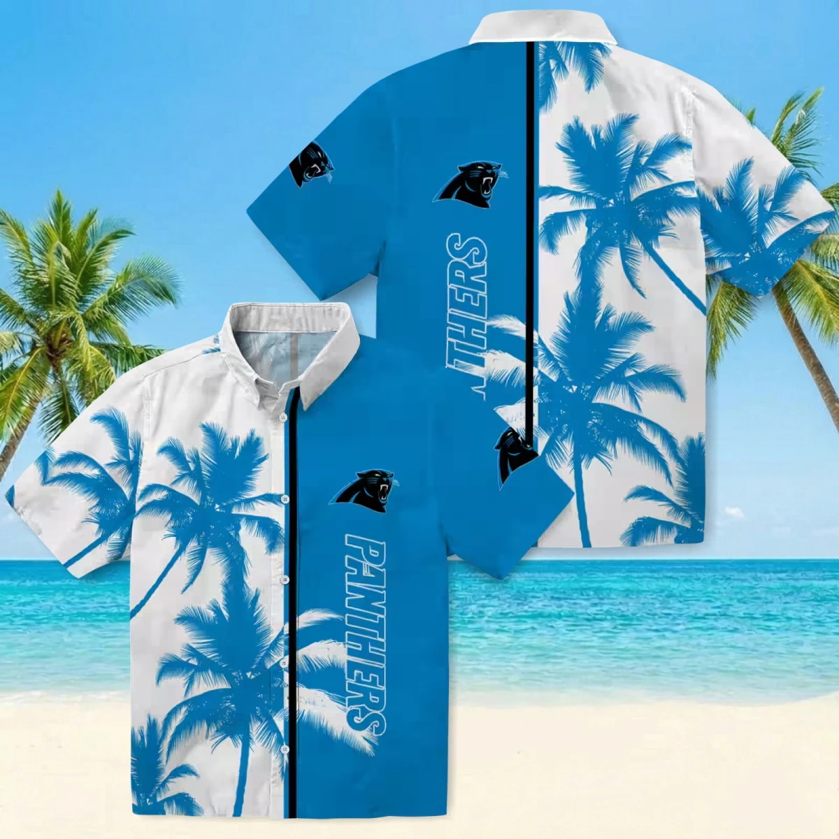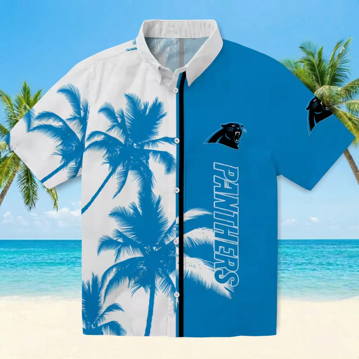 Carolina Panthers Hawaiian Shirt � Palm Trees Blue White, Casual Button Down For Men & Women