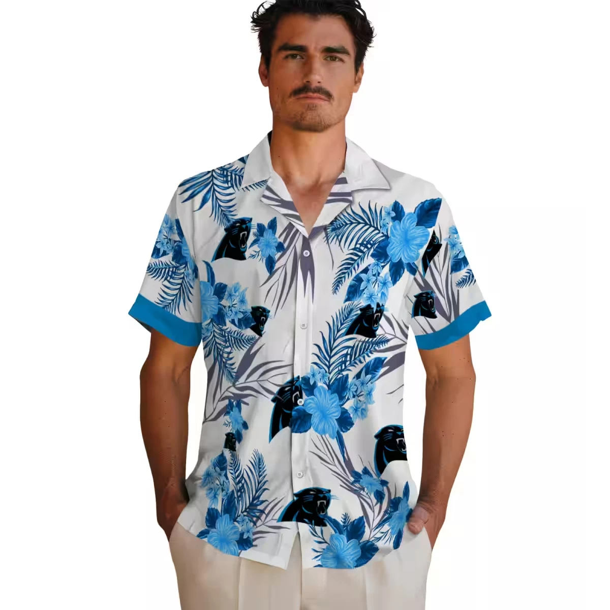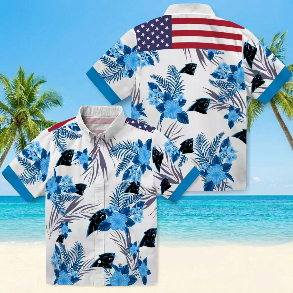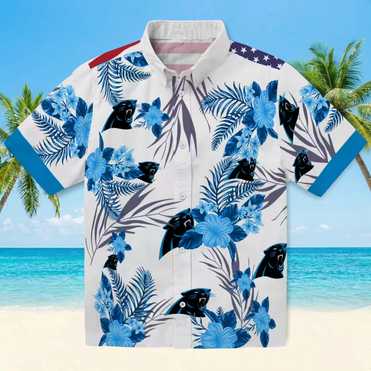 Carolina Panthers Hawaiian Shirt � Patriotic Hibiscus Design Blue White, Casual Button Down For Men & Women