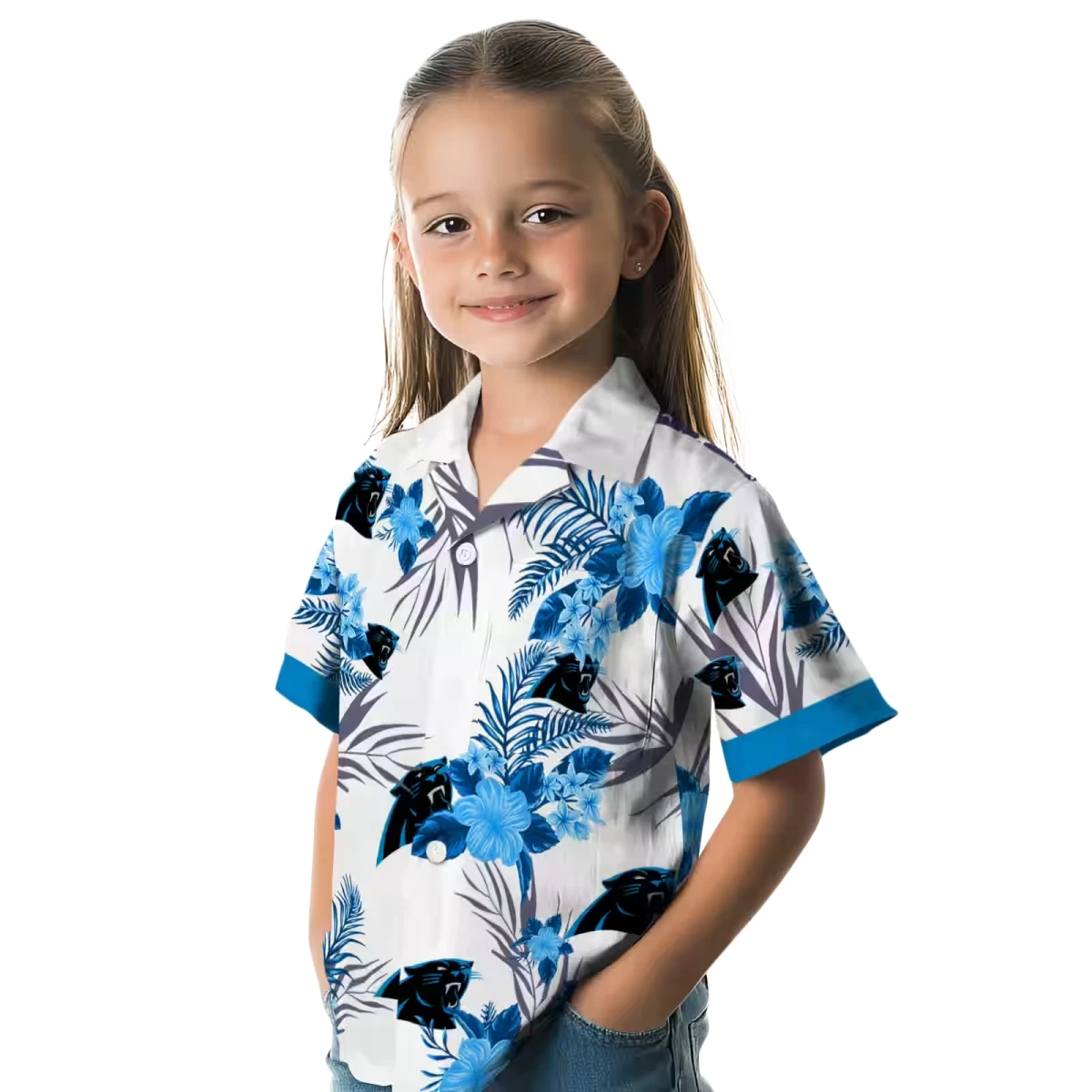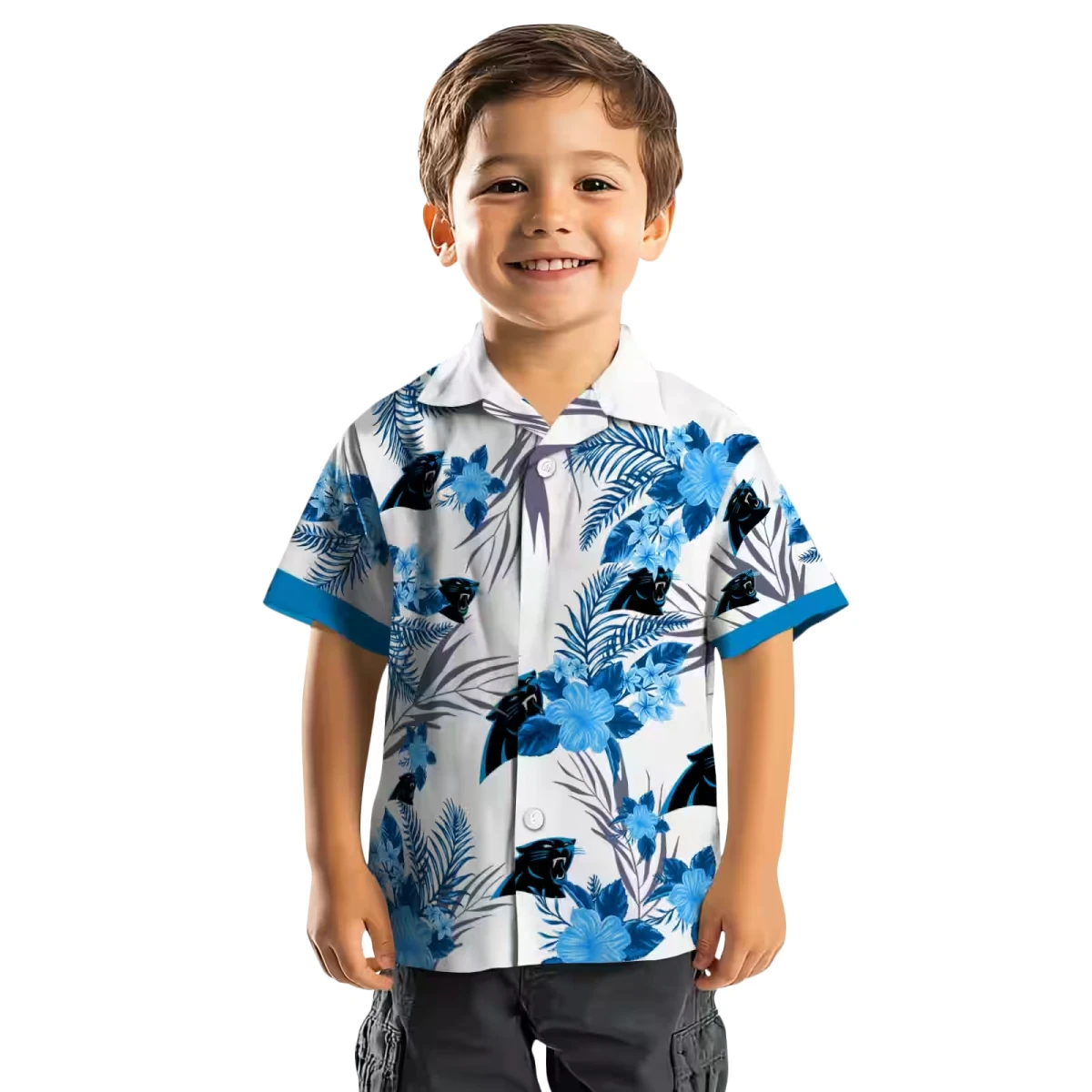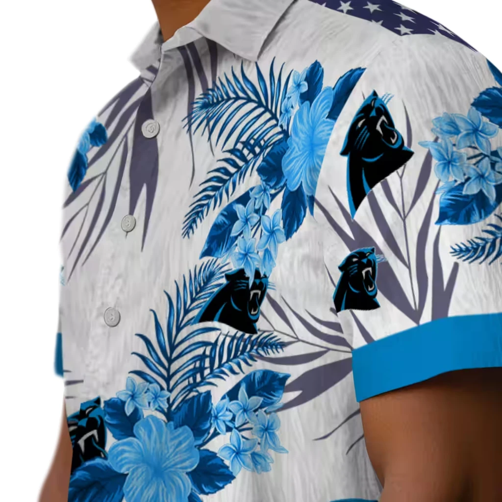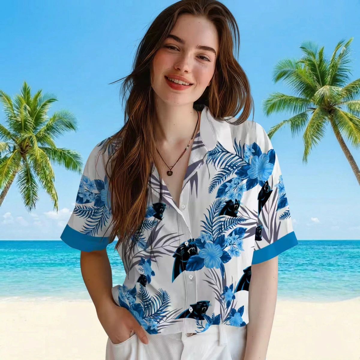 Carolina Panthers Hawaiian Shirt � Patriotic Hibiscus Design Blue White, Casual Button Down For Men & Women