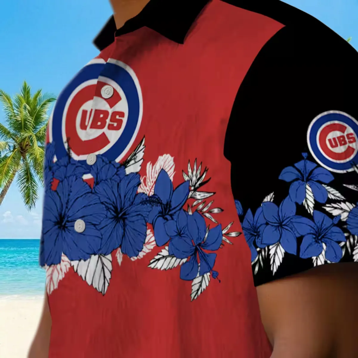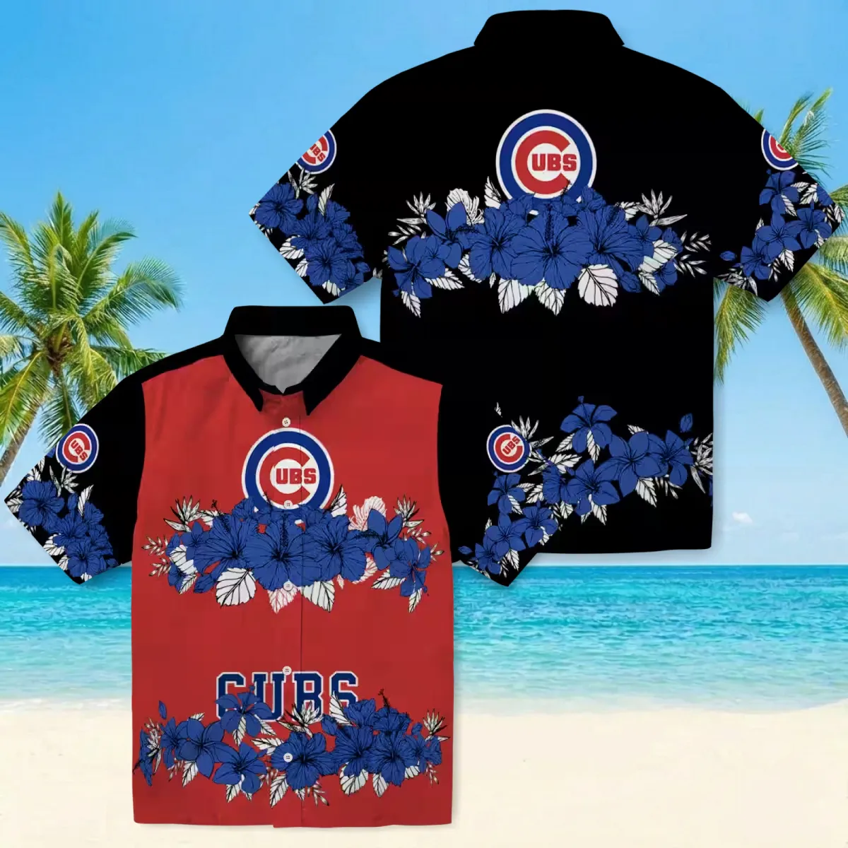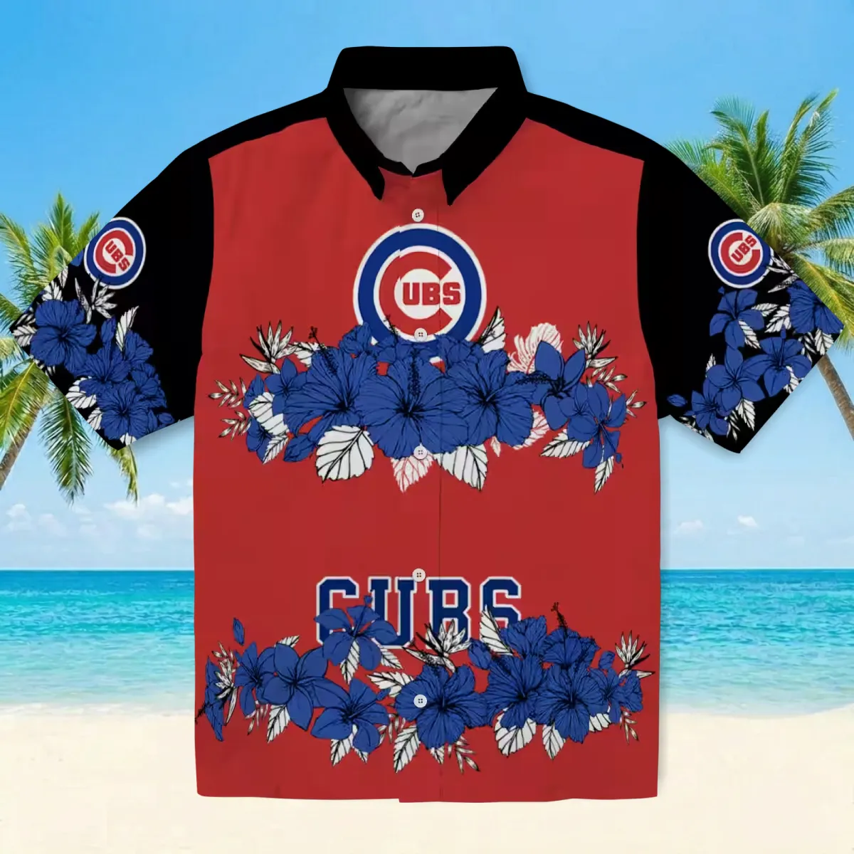 Chicago Cubs Hawaiian Shirt – Hibiscus Stripe Blue Black – Gift For Men, Women