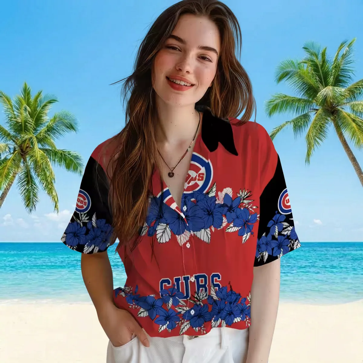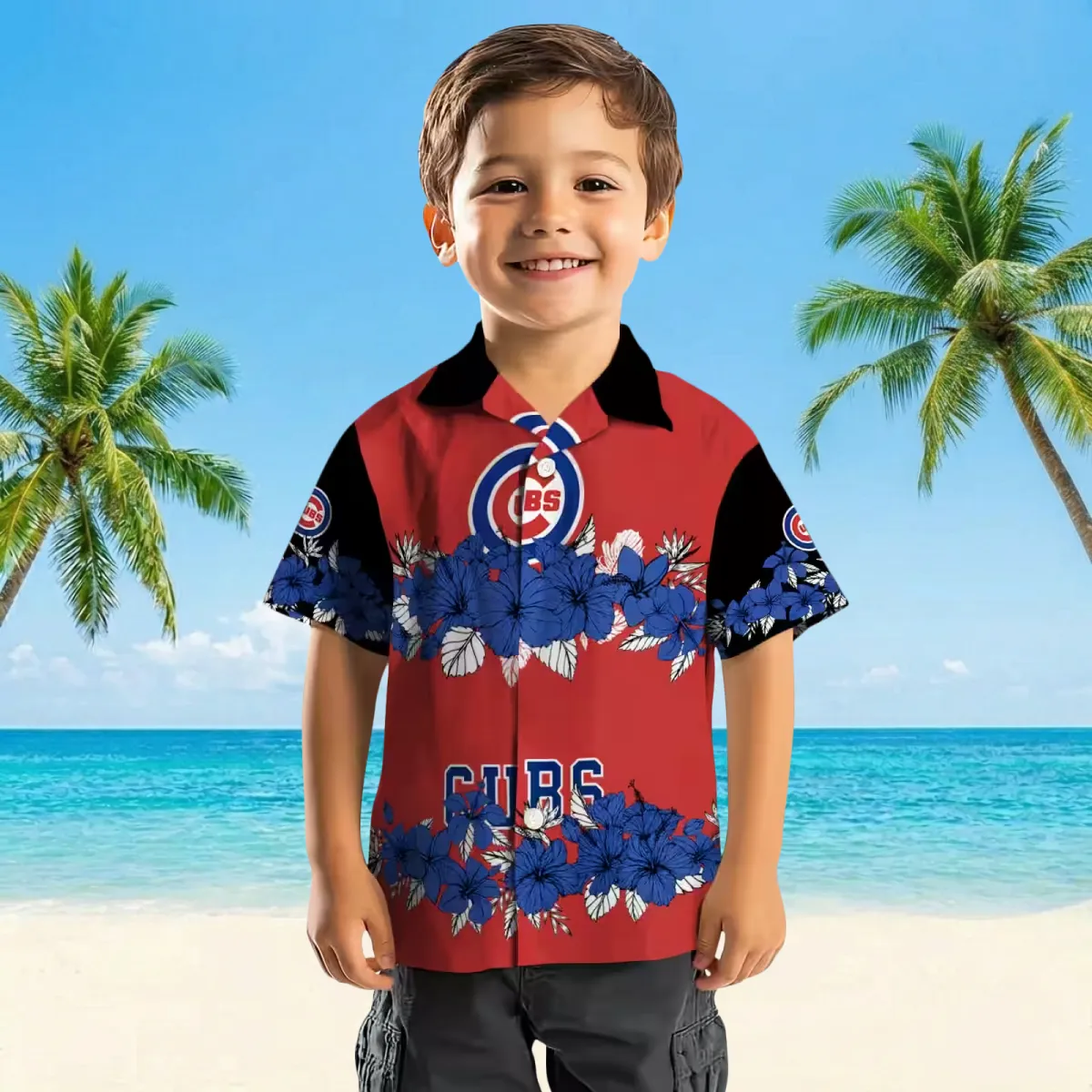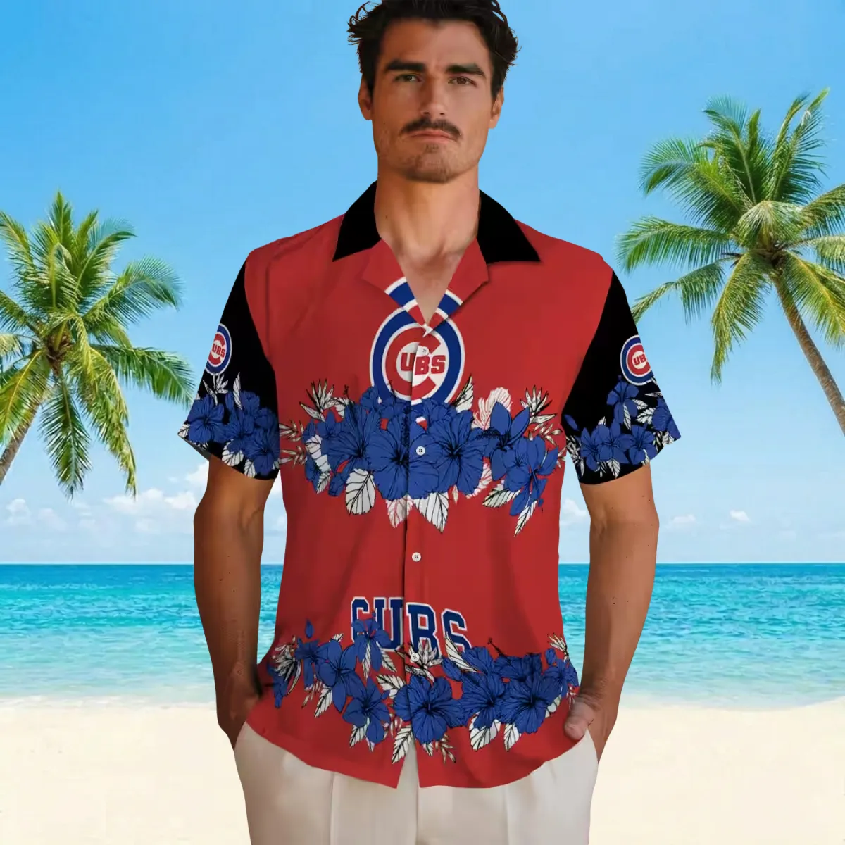 Chicago Cubs Hawaiian Shirt – Hibiscus Stripe Blue Black – Gift For Men, Women
