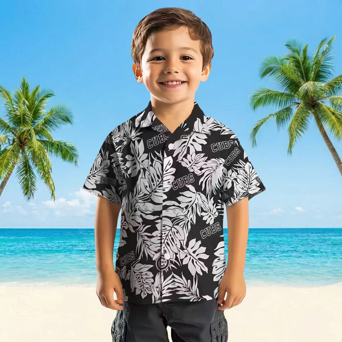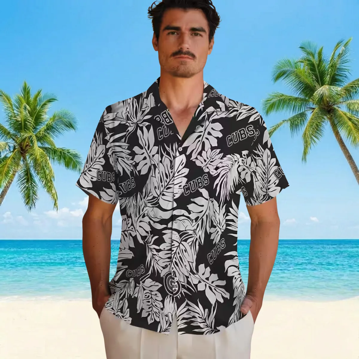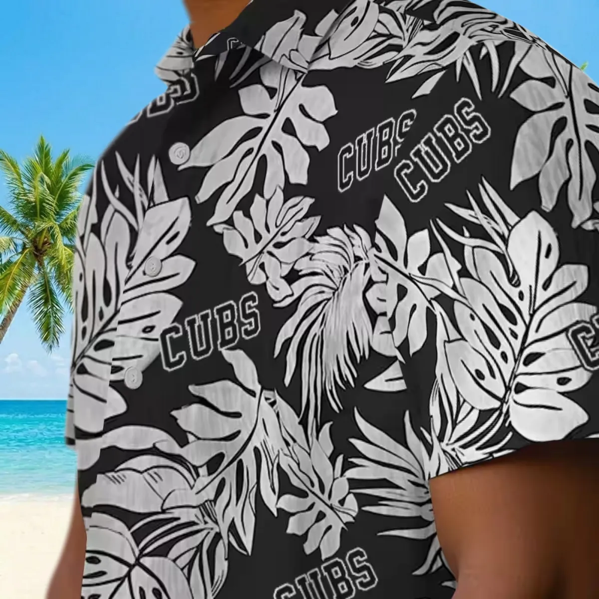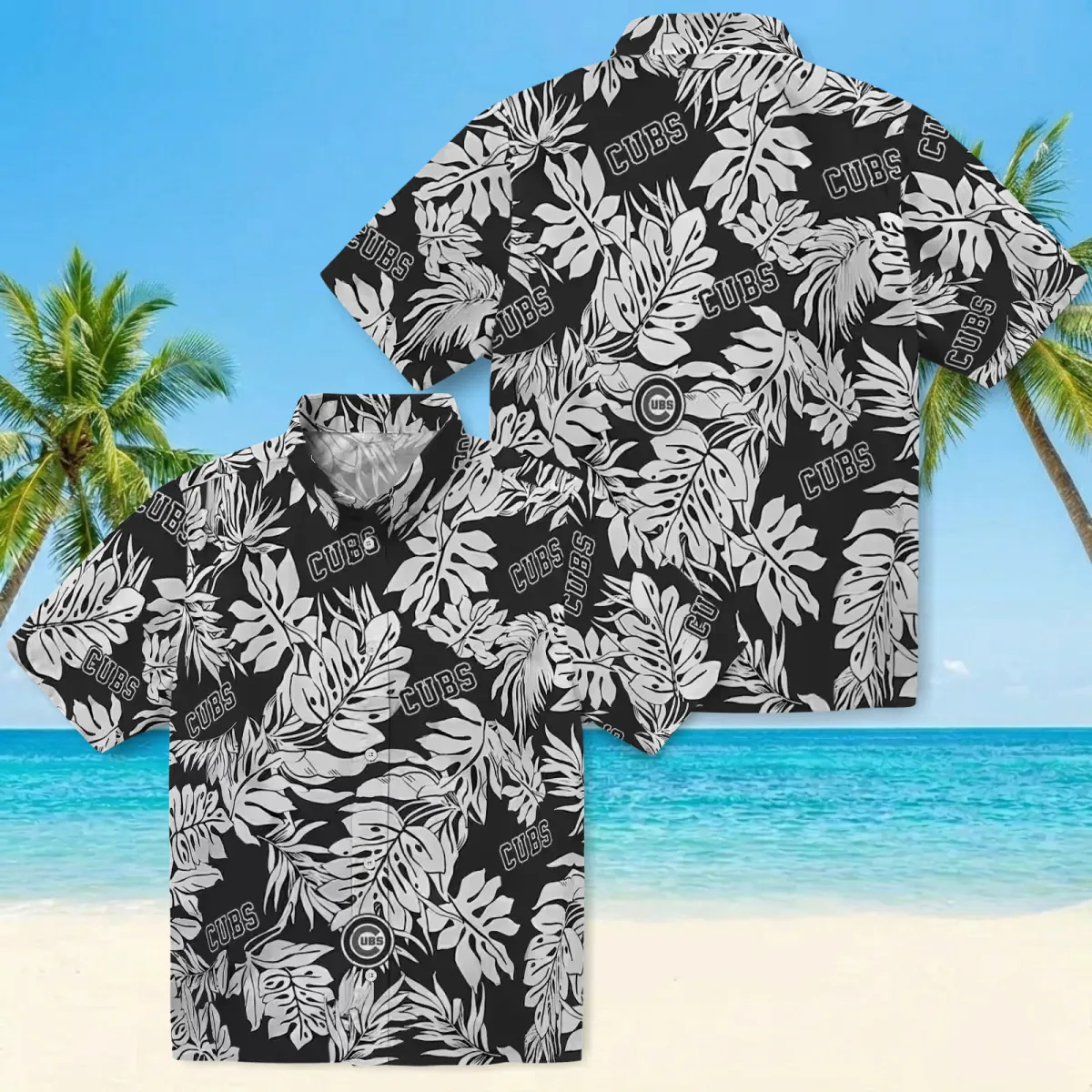 Chicago Cubs Hawaiian Shirt – Monstera Leaf Pattern Black – Gift For Men, Women