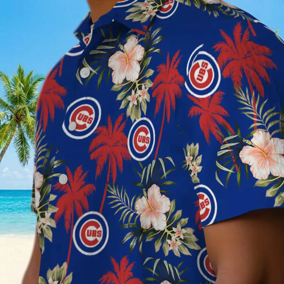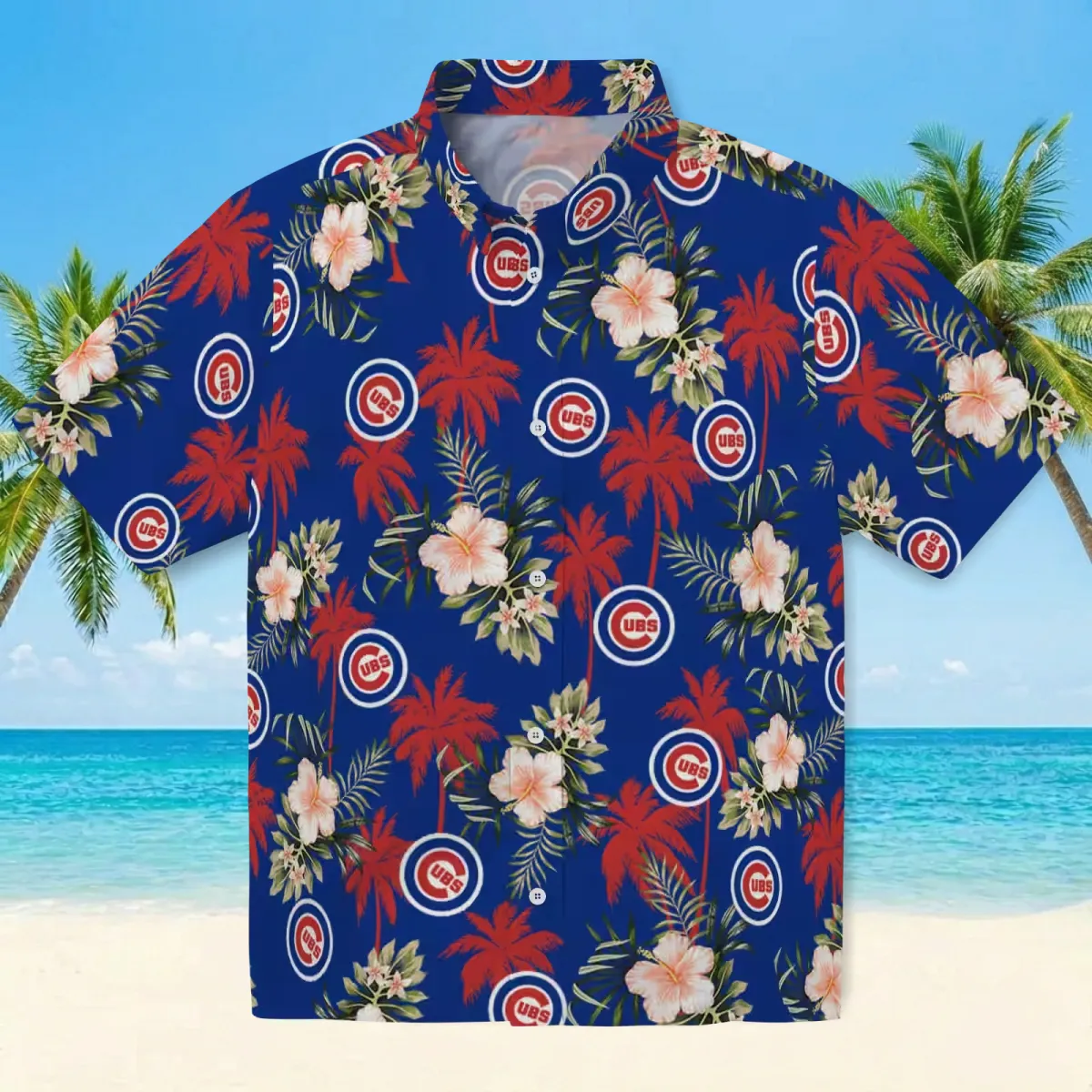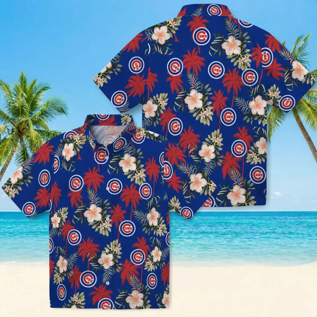 Chicago Cubs Hawaiian Shirt – Palm Tree Flower Blue – Gift For Men, Women