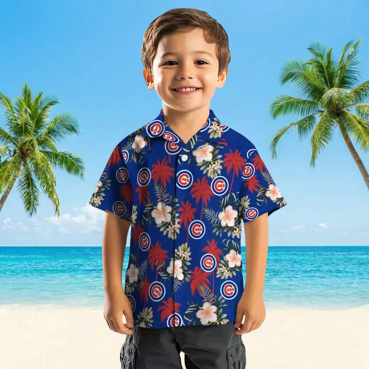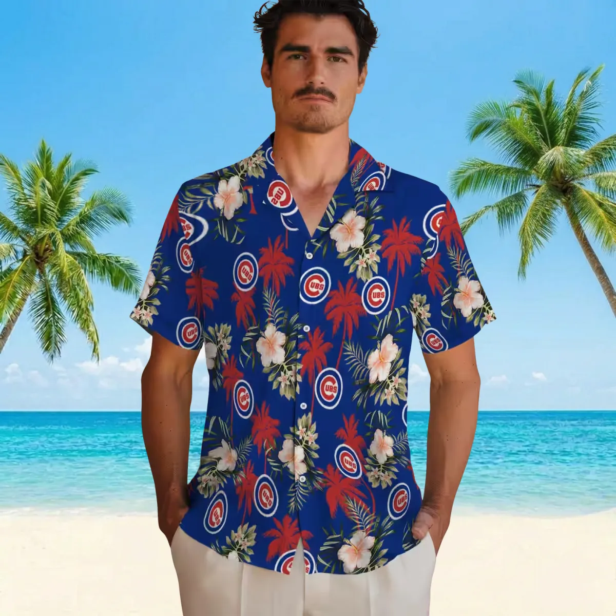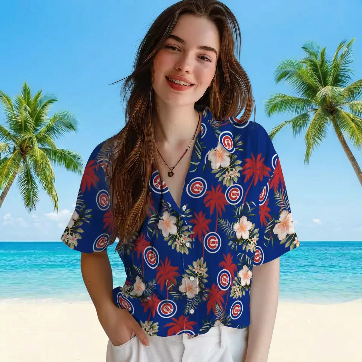 Chicago Cubs Hawaiian Shirt – Palm Tree Flower Blue – Gift For Men, Women
