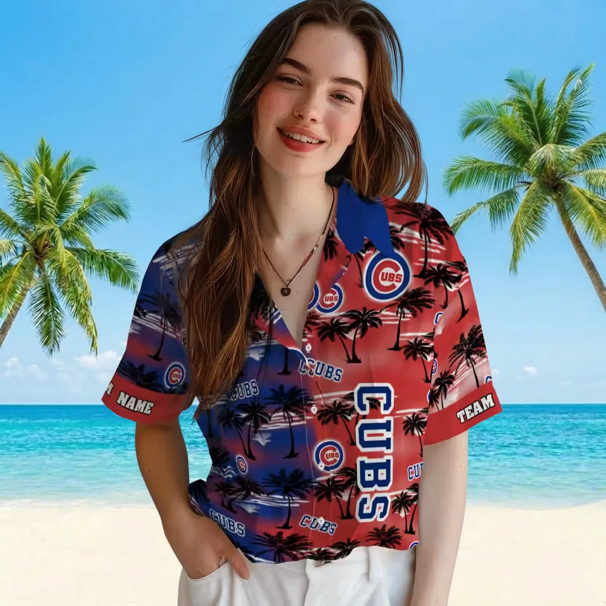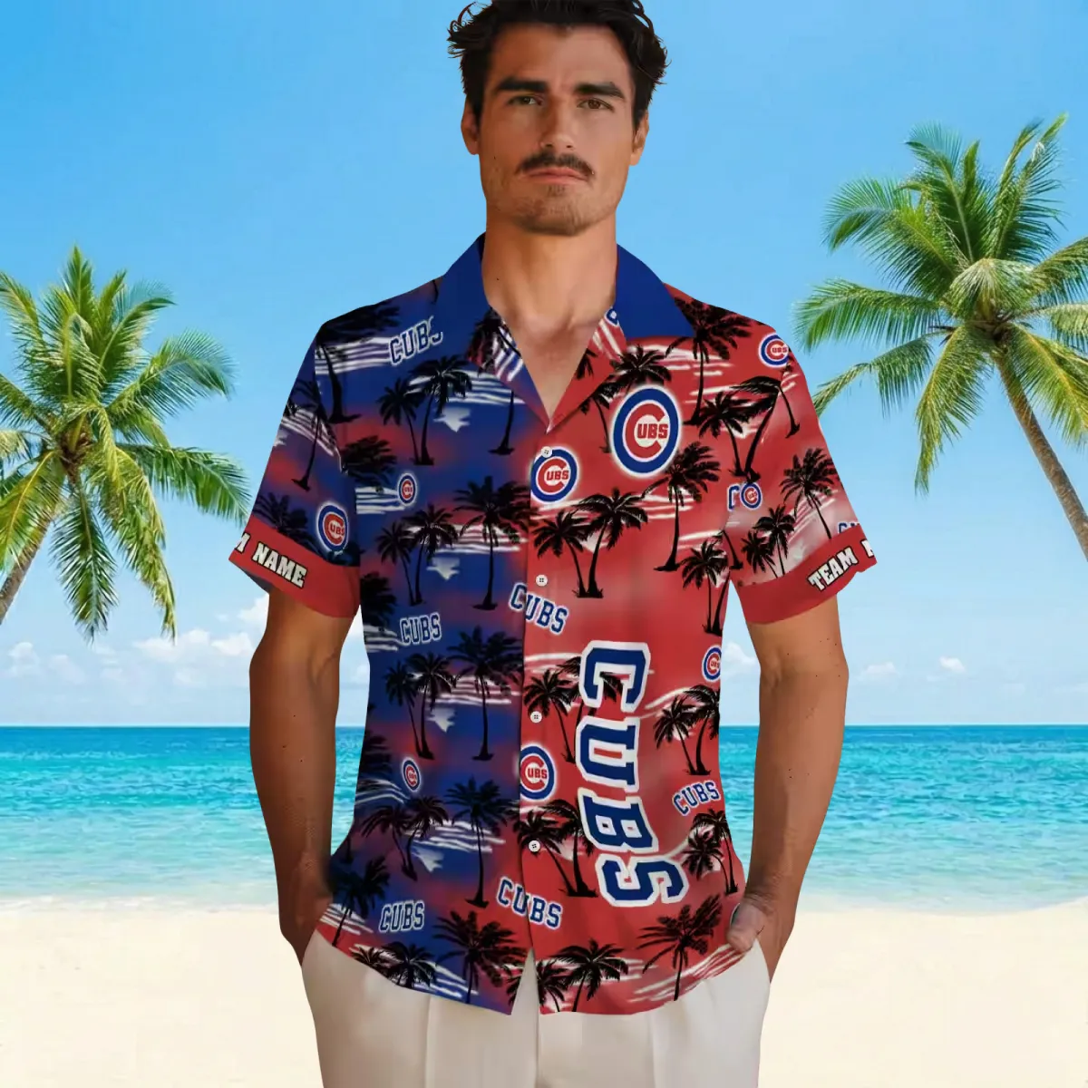 Chicago Cubs Hawaiian Shirt – Personalized Palm Silhouettes Blue – Gift For Men, Women