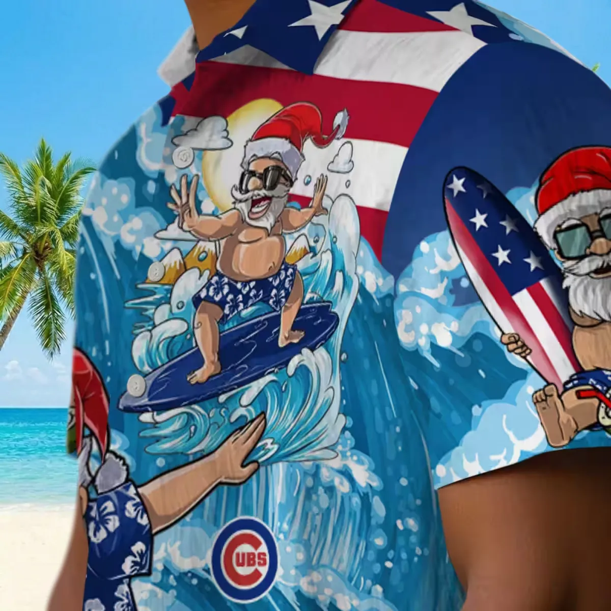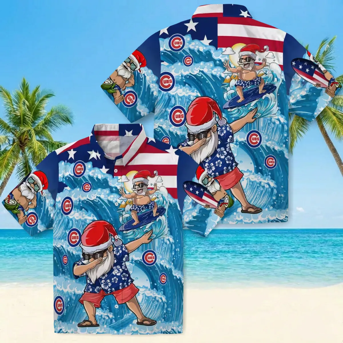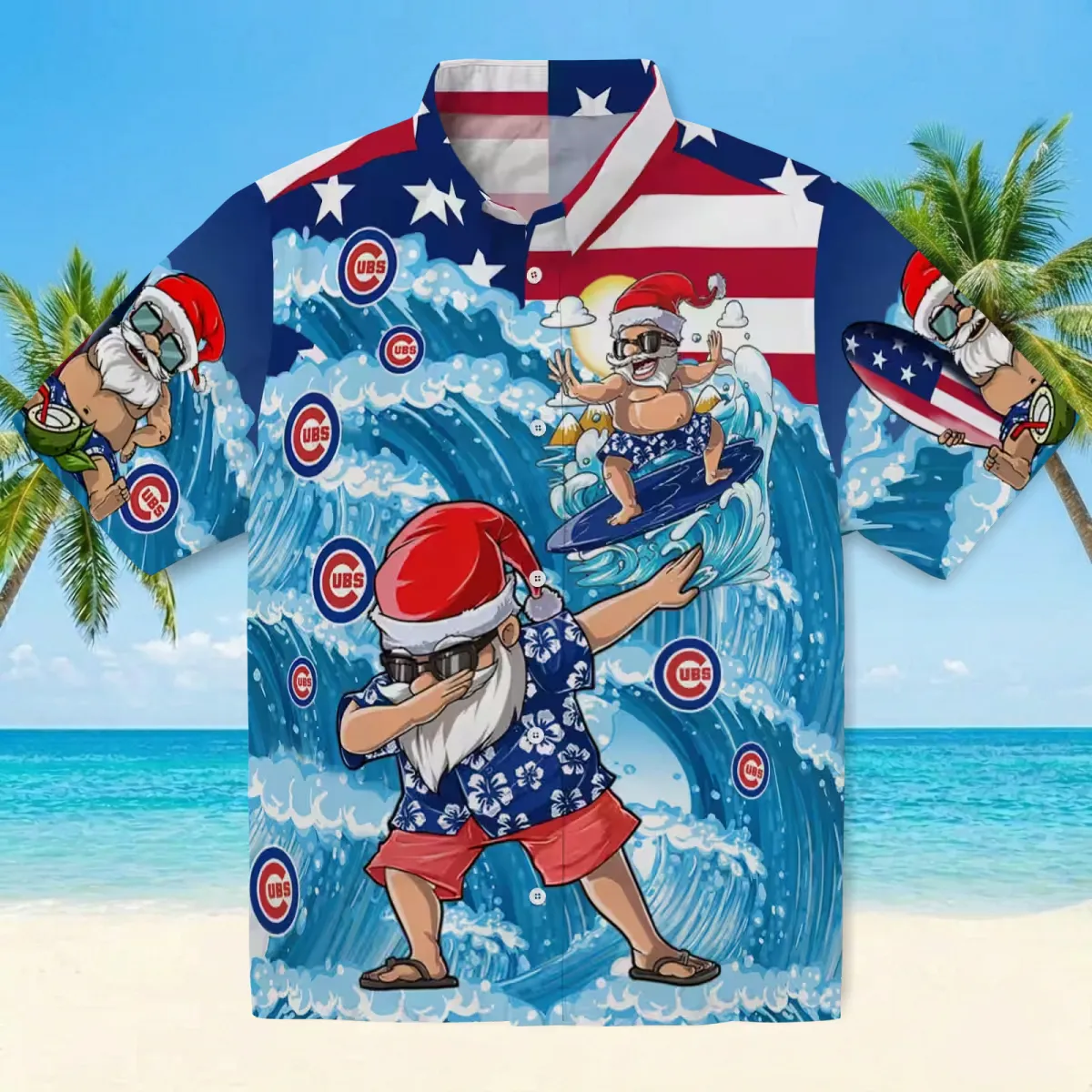 Chicago Cubs Hawaiian Shirt – Surfing Santa Blue – Gift For Men, Women