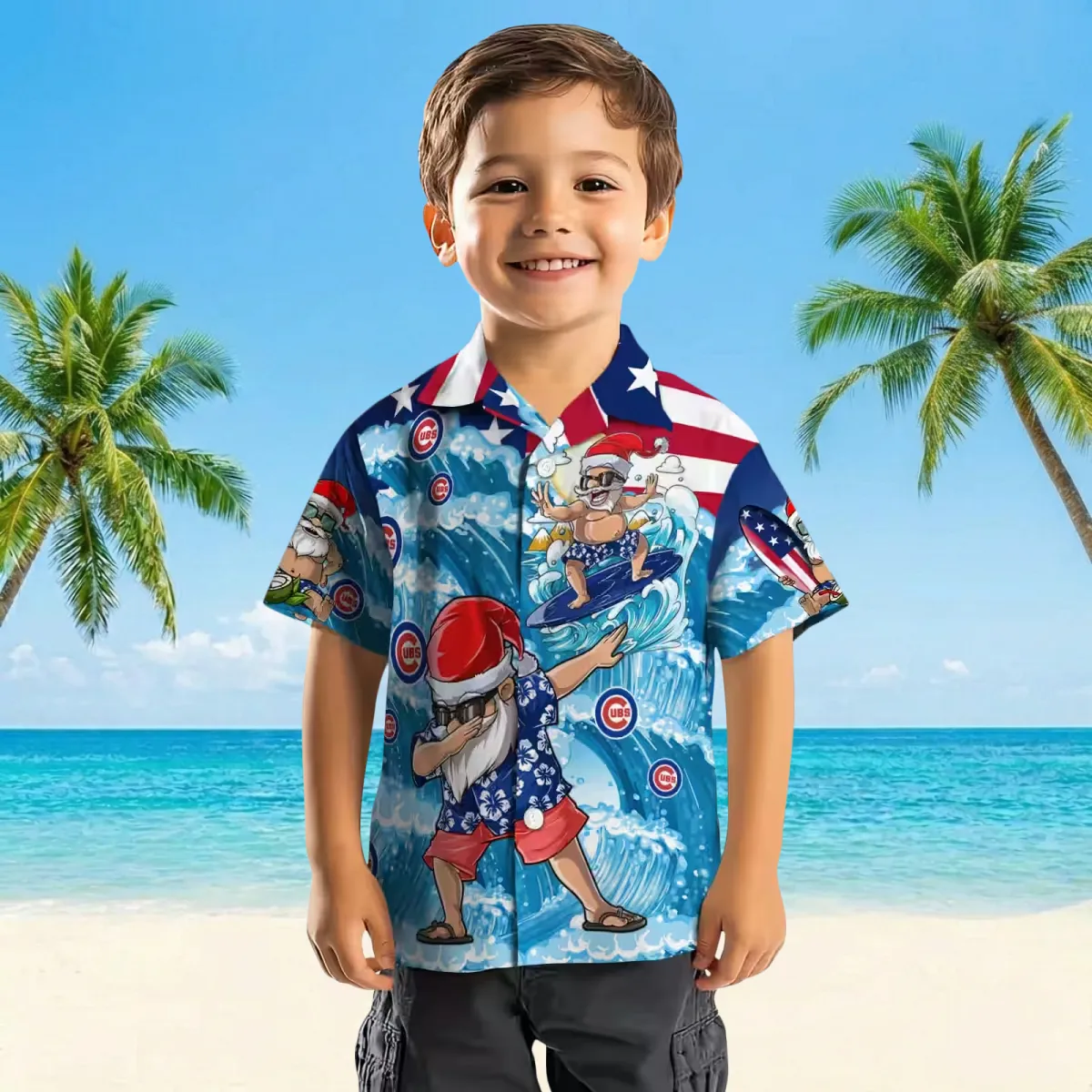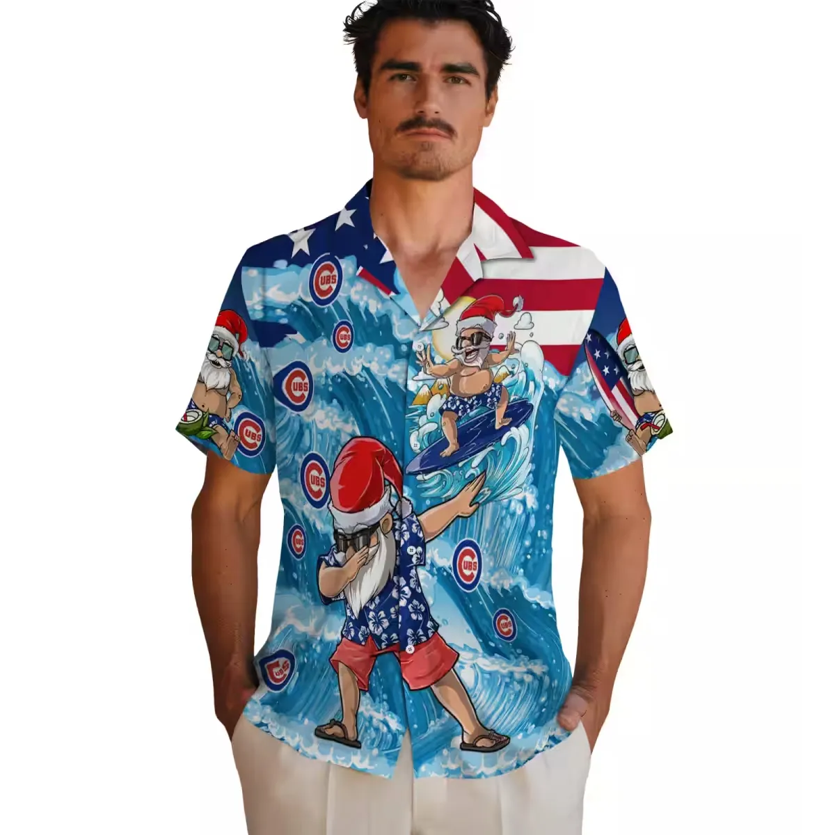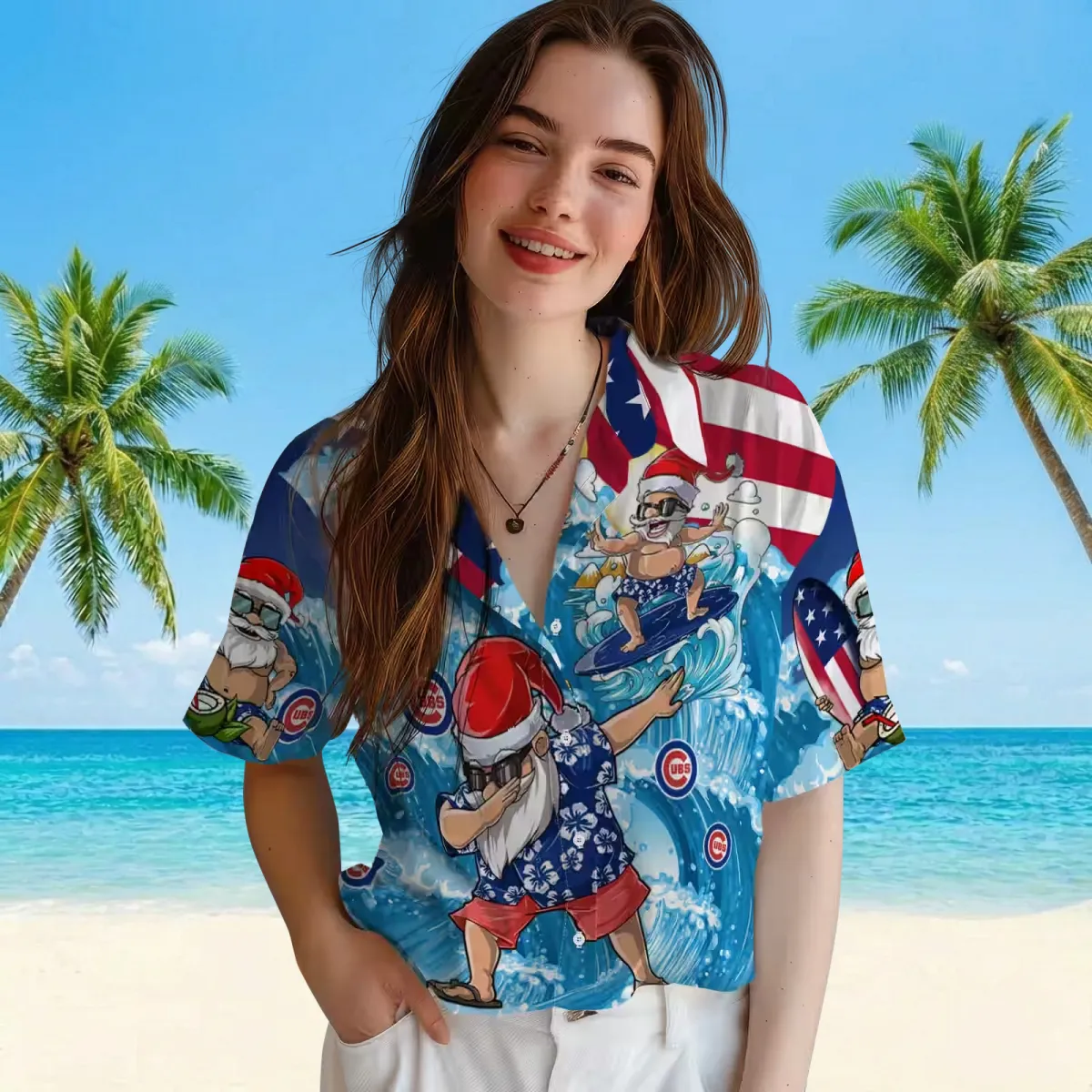 Chicago Cubs Hawaiian Shirt – Surfing Santa Blue – Gift For Men, Women