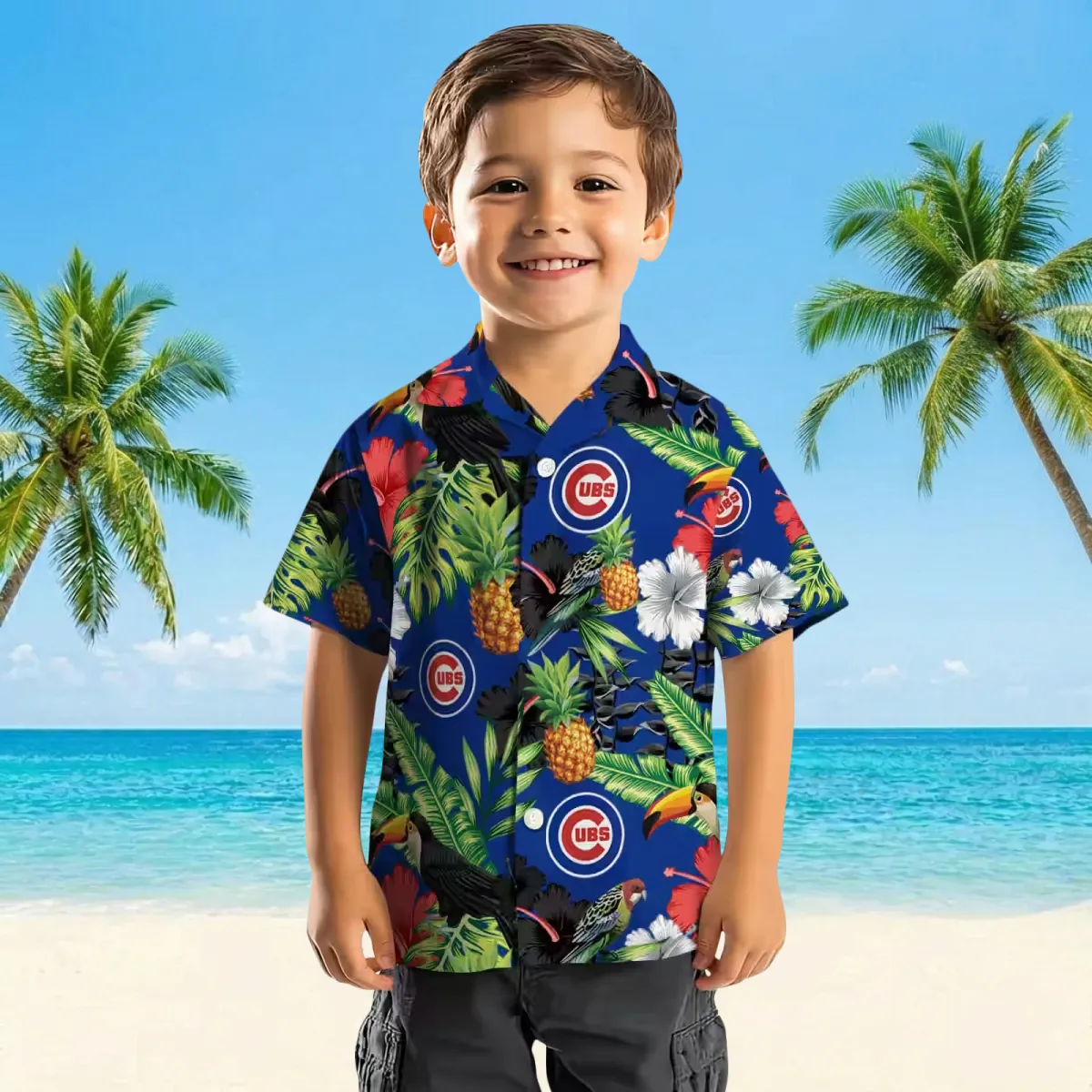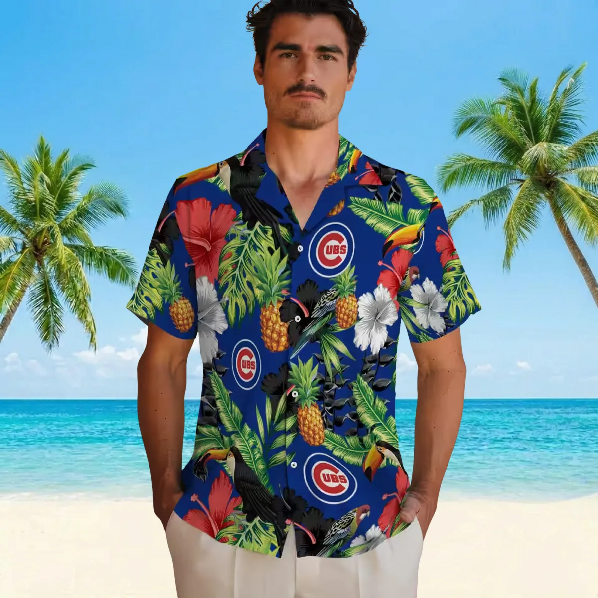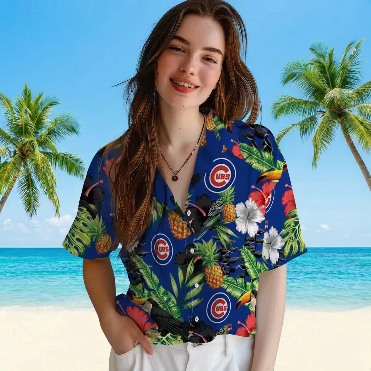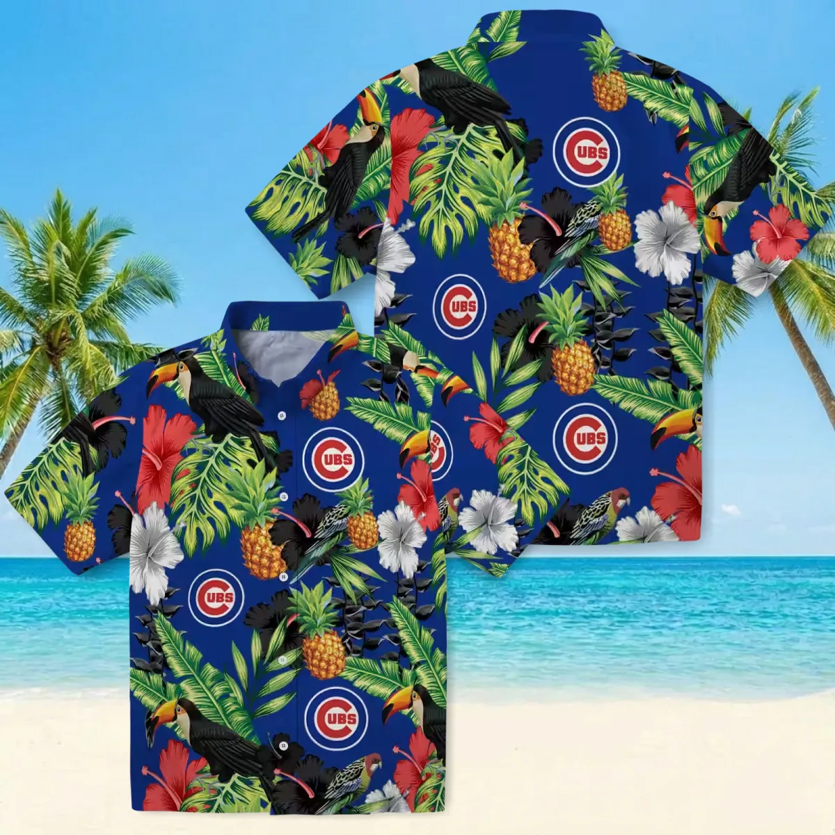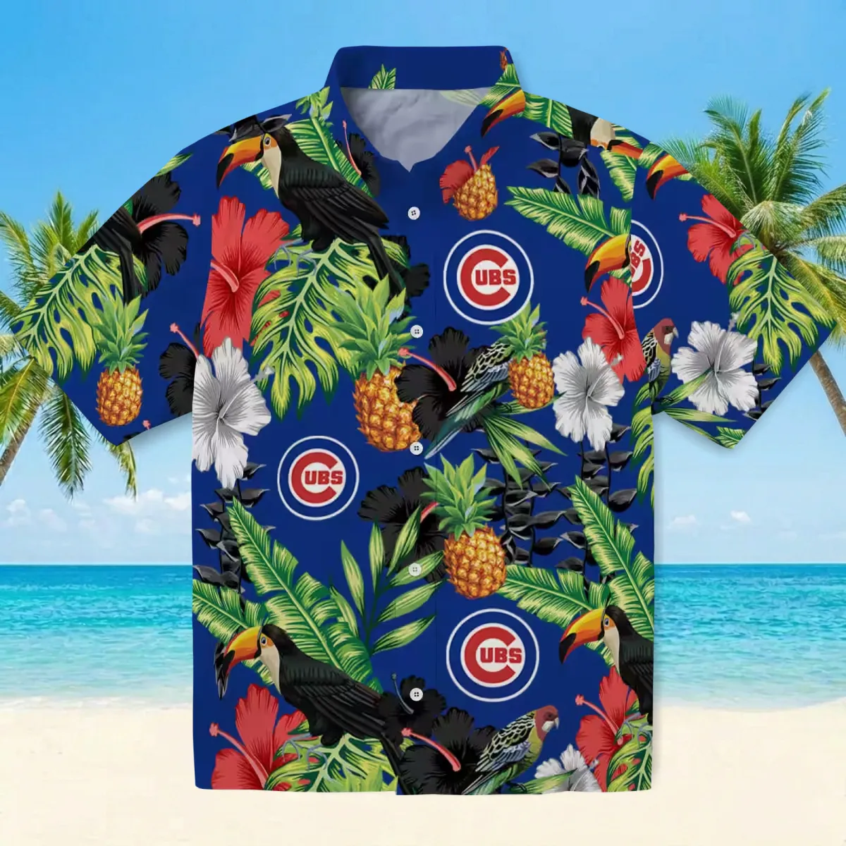 Chicago Cubs Hawaiian Shirt – Toucan Hibiscus Pineapple Blue Green – Gift For Men, Women