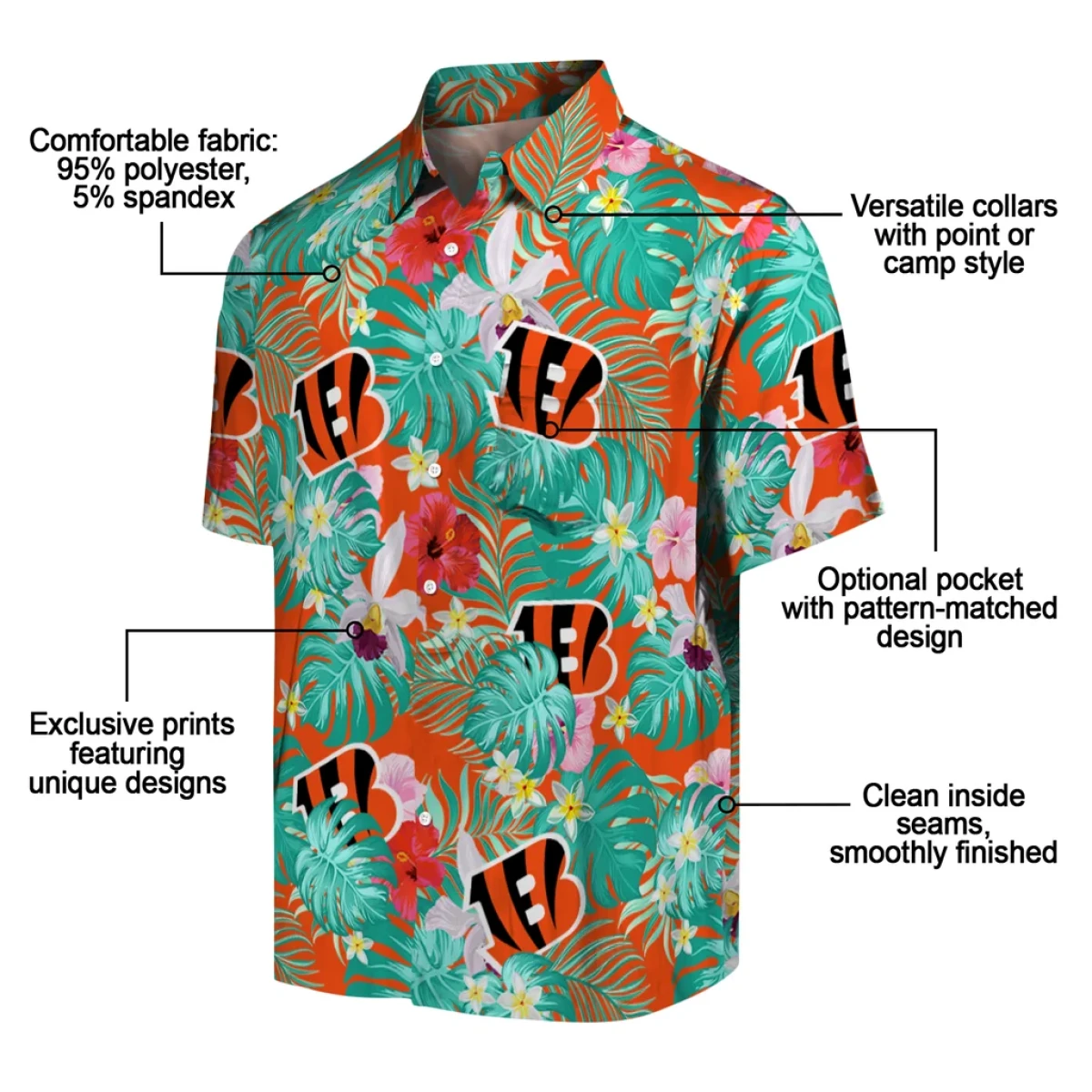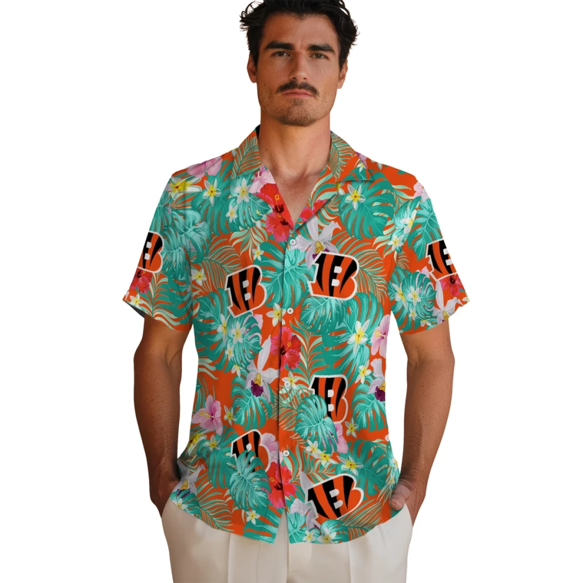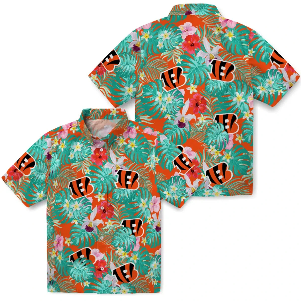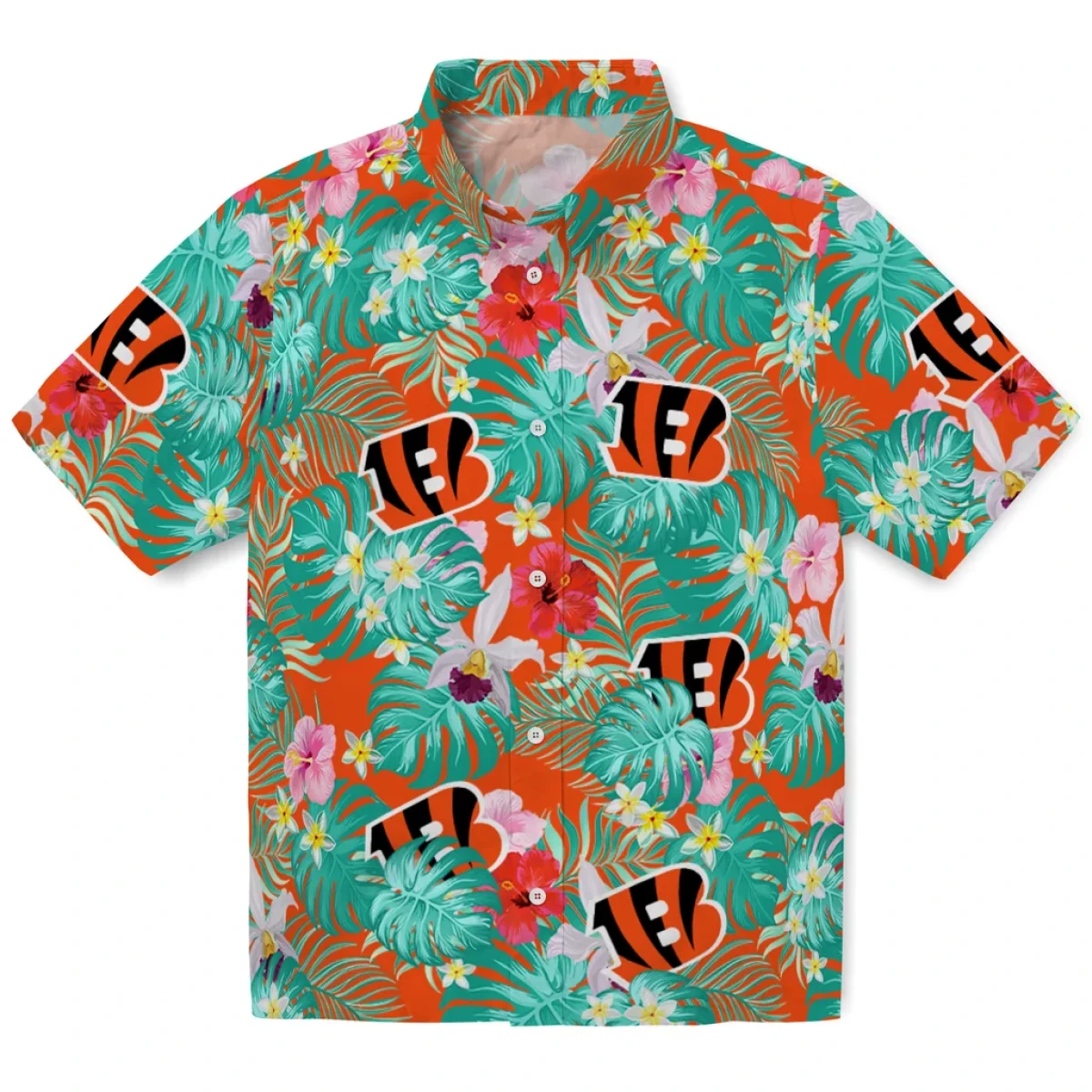Cincinnati Bengals Hawaiian Shirt – Personalized Hibiscus Blossoms Orange, Casual Button Down For Men & Women