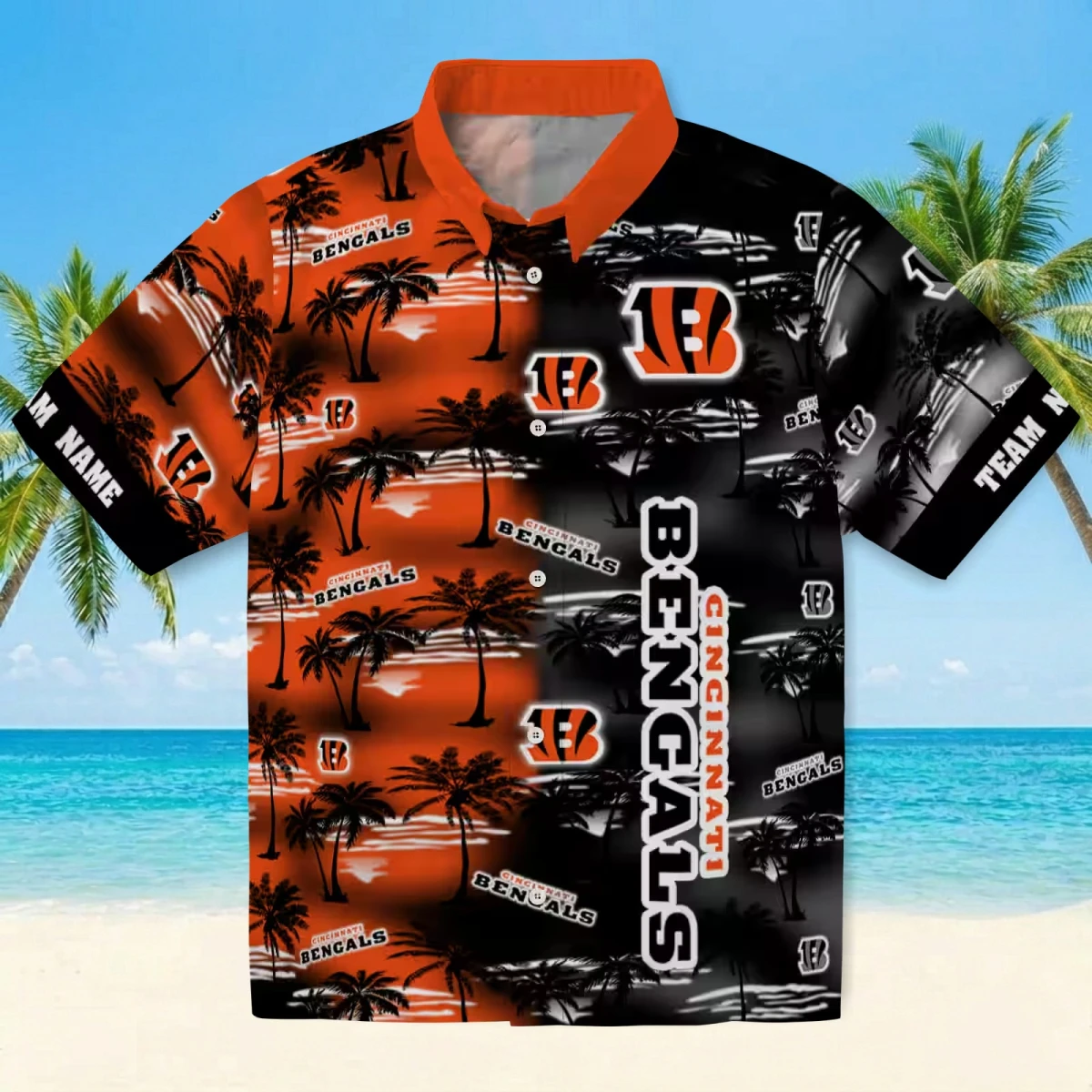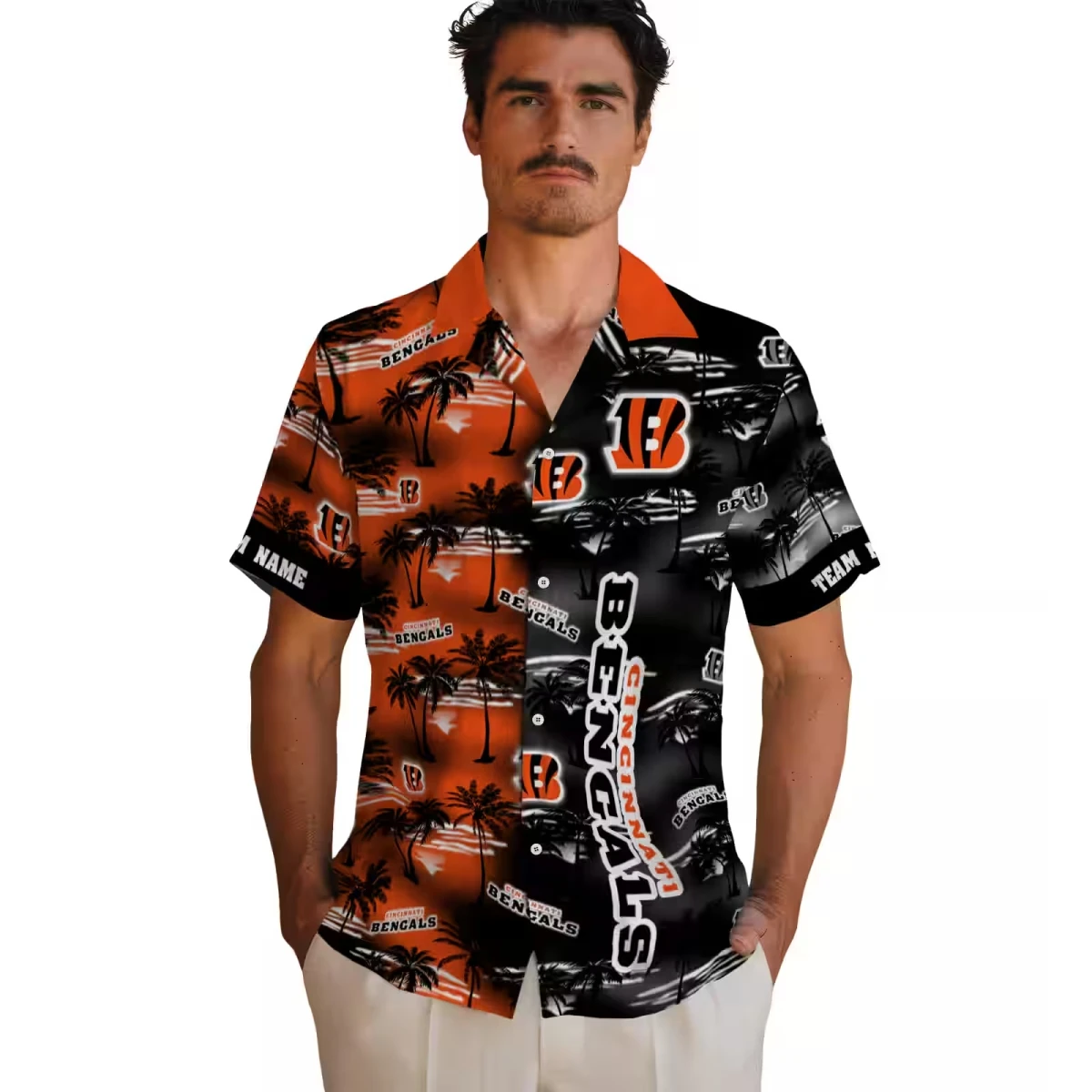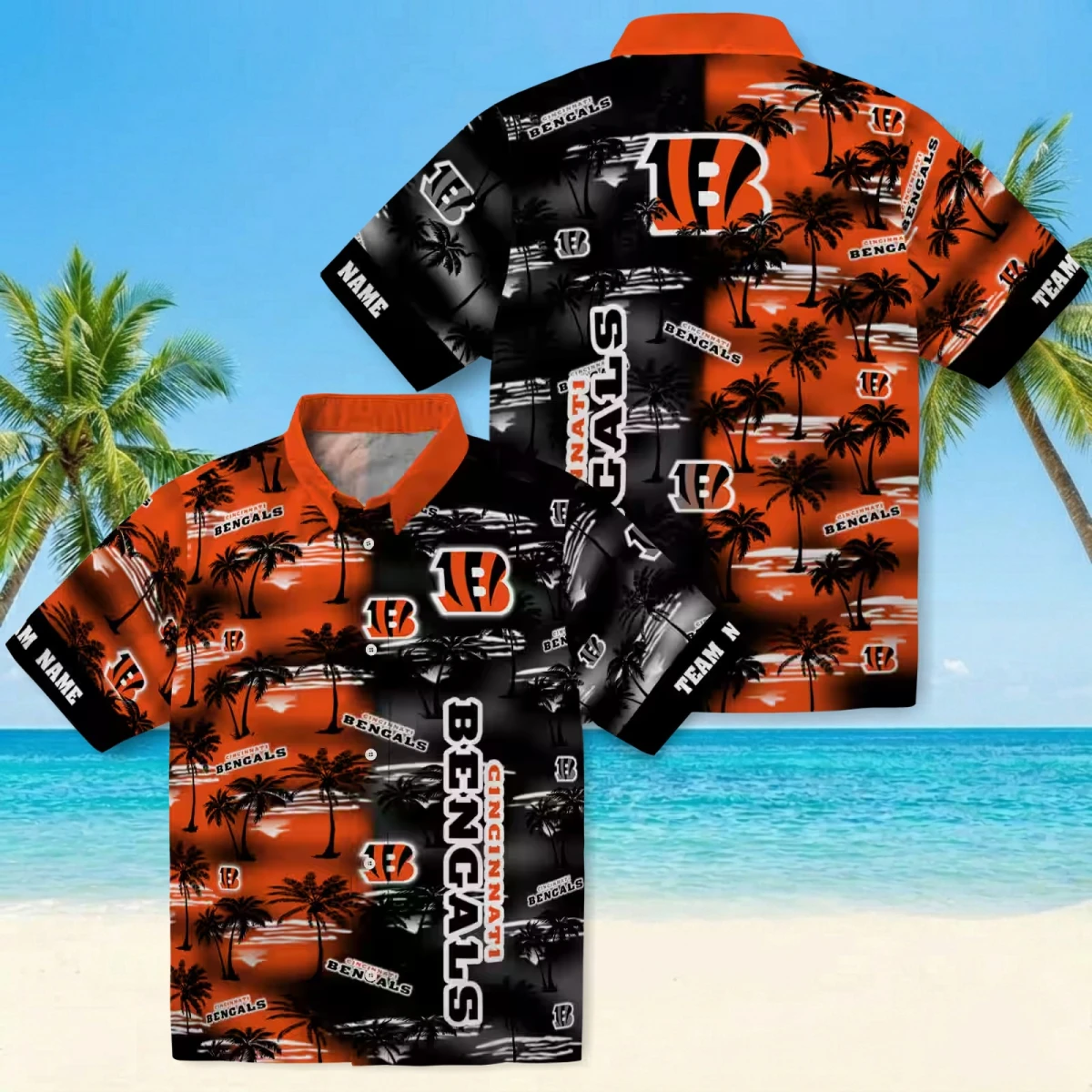 Cincinnati Bengals Hawaiian Shirt – Personalized Palm Silhouettes Orange, Casual Button Down For Men & Women