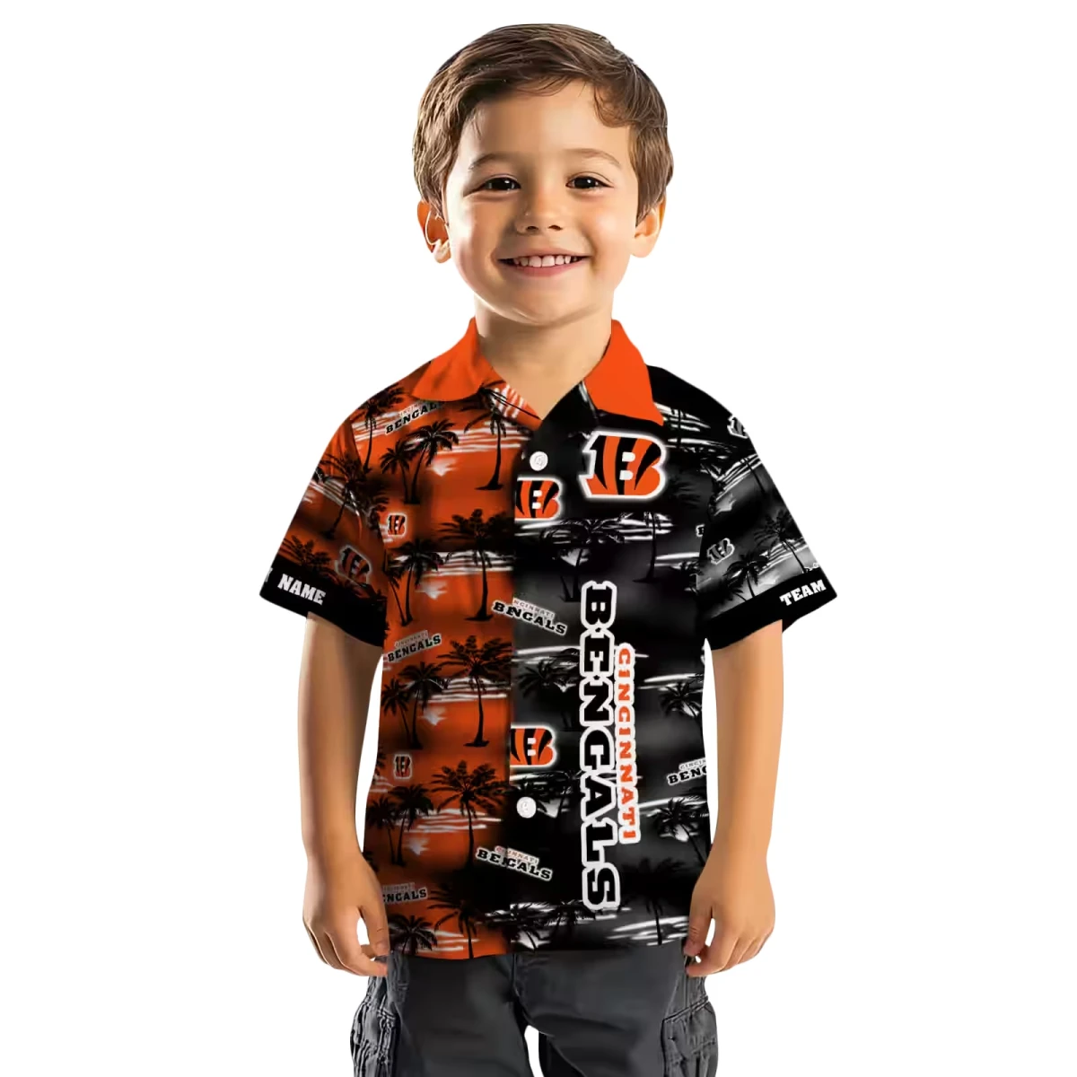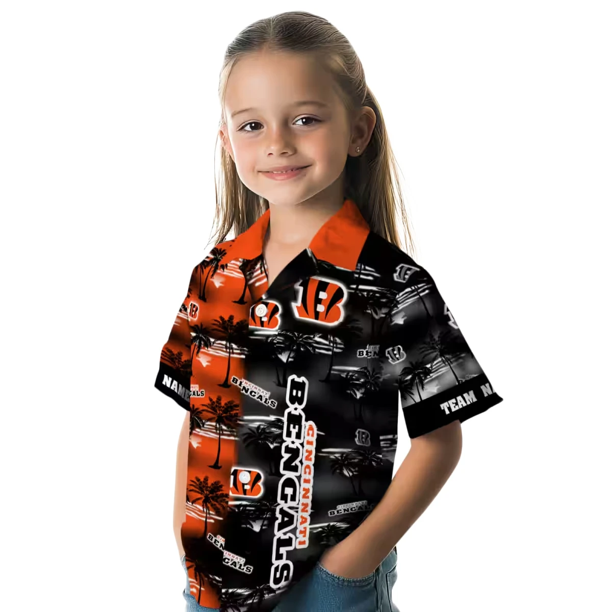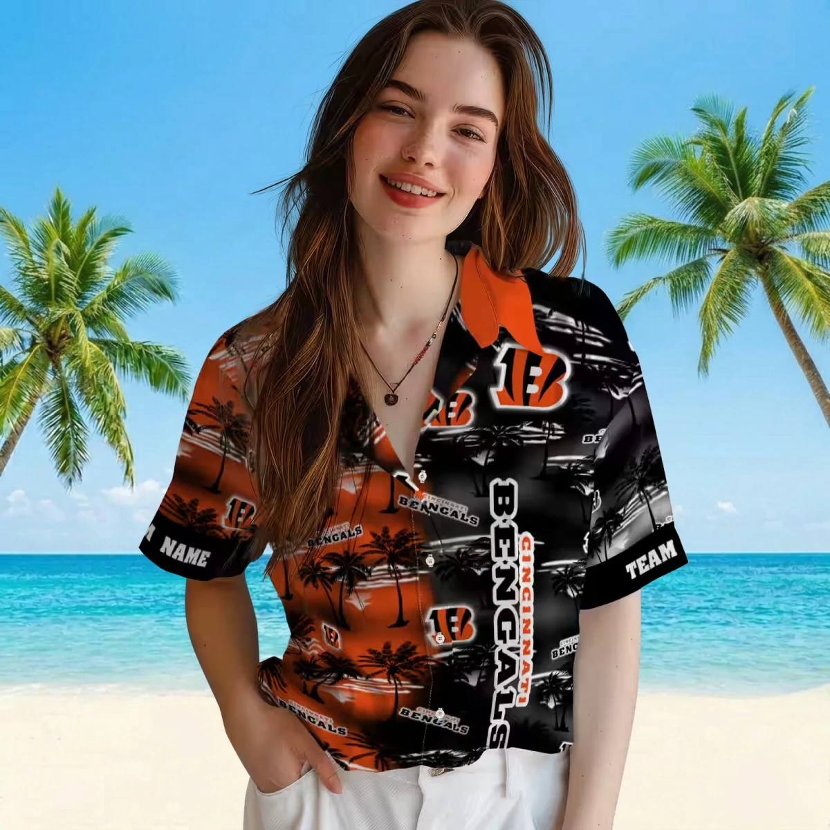 Cincinnati Bengals Hawaiian Shirt – Personalized Palm Silhouettes Orange, Casual Button Down For Men & Women
