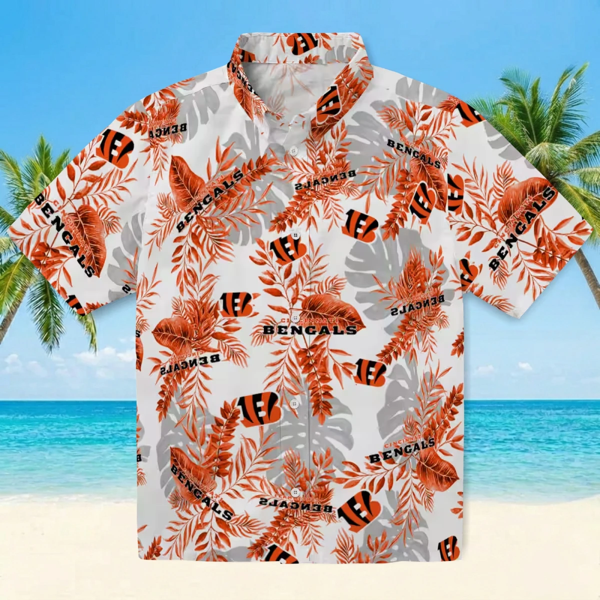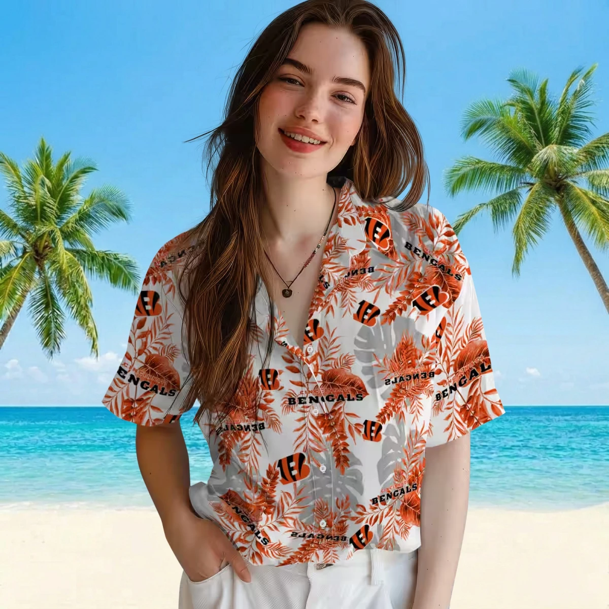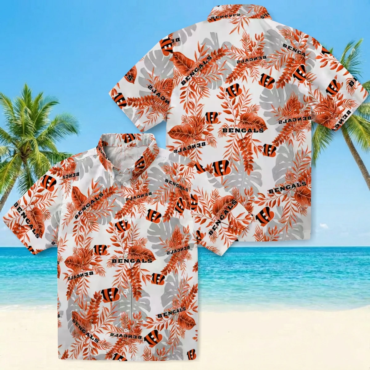 Cincinnati Bengals Hawaiian Shirt – Tropical Leaves Orange White, Casual Button Down For Men & Women
