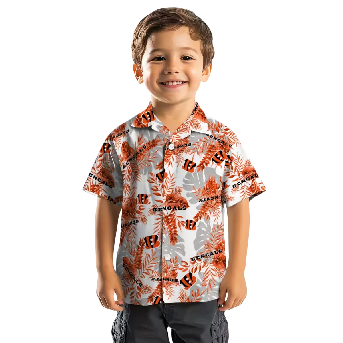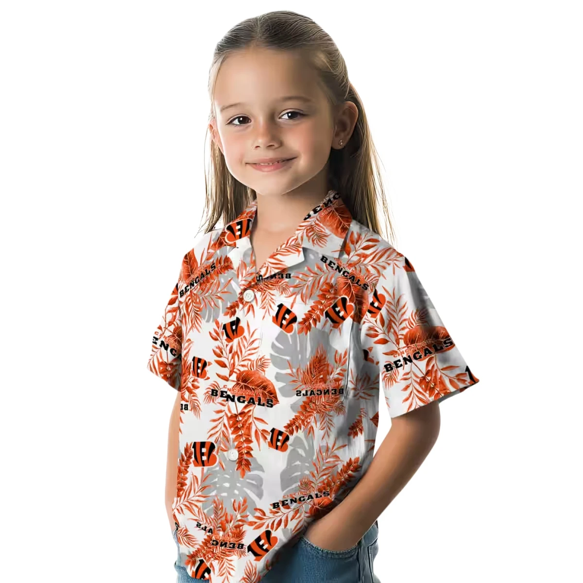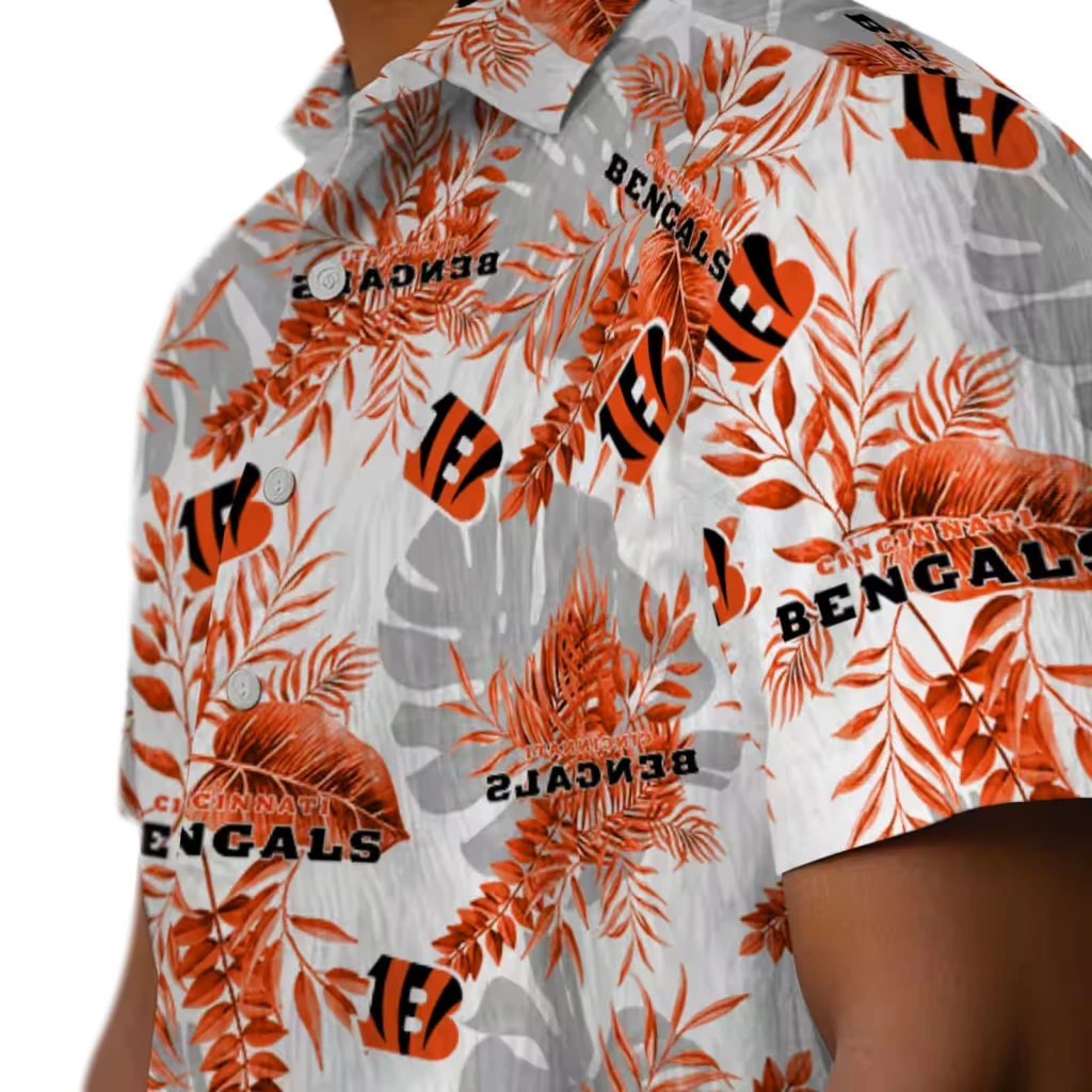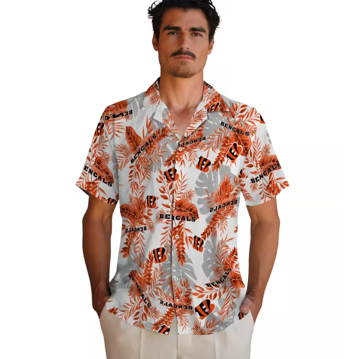 Cincinnati Bengals Hawaiian Shirt – Tropical Leaves Orange White, Casual Button Down For Men & Women