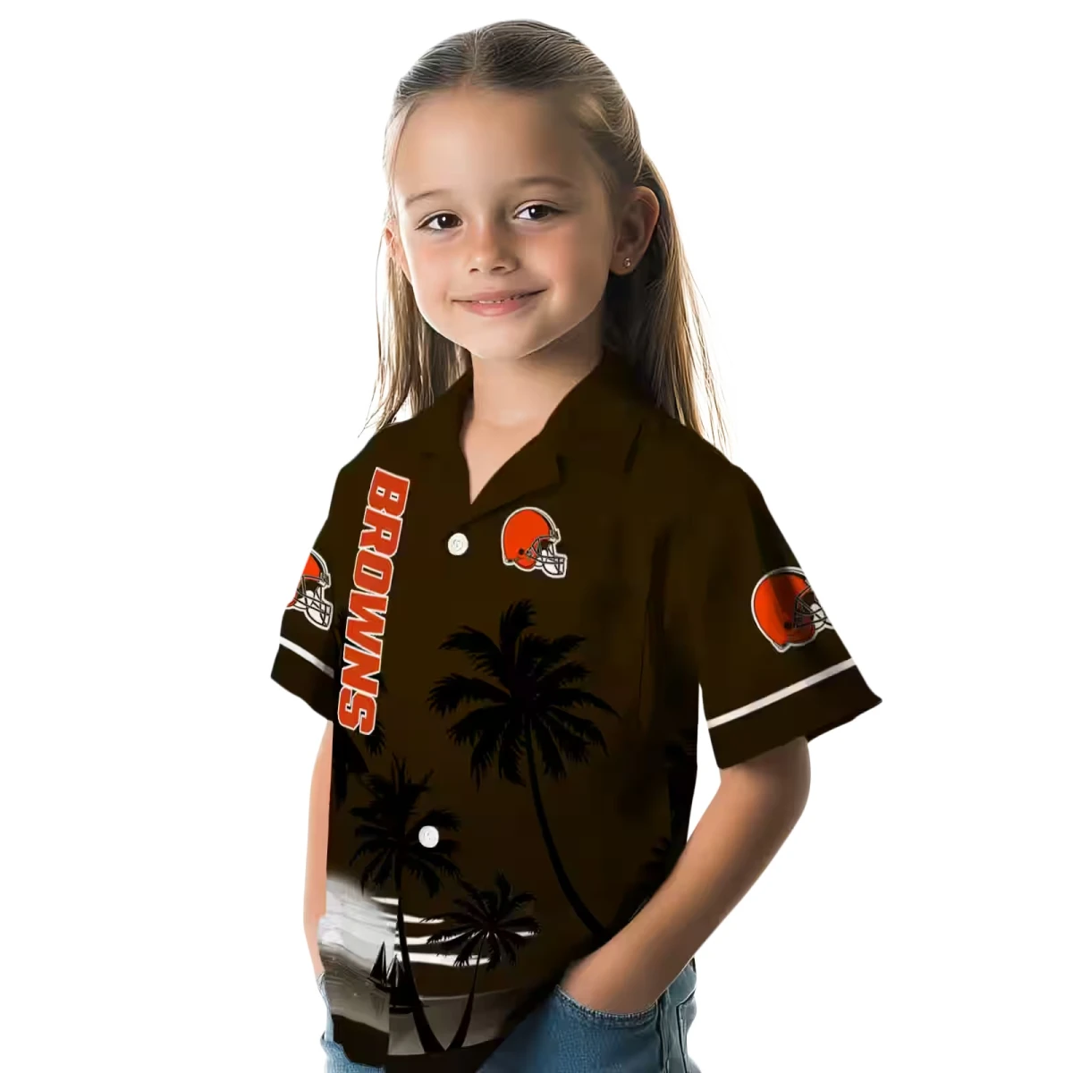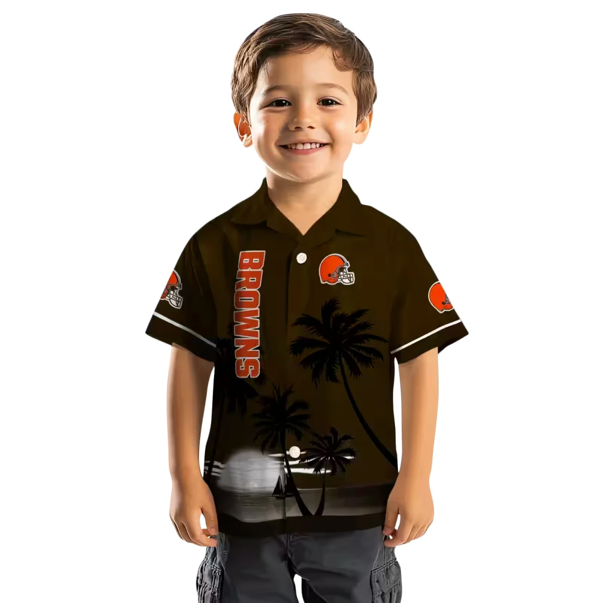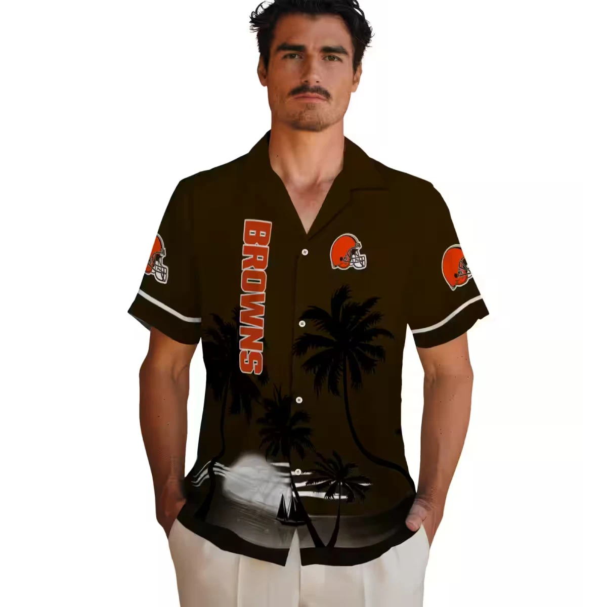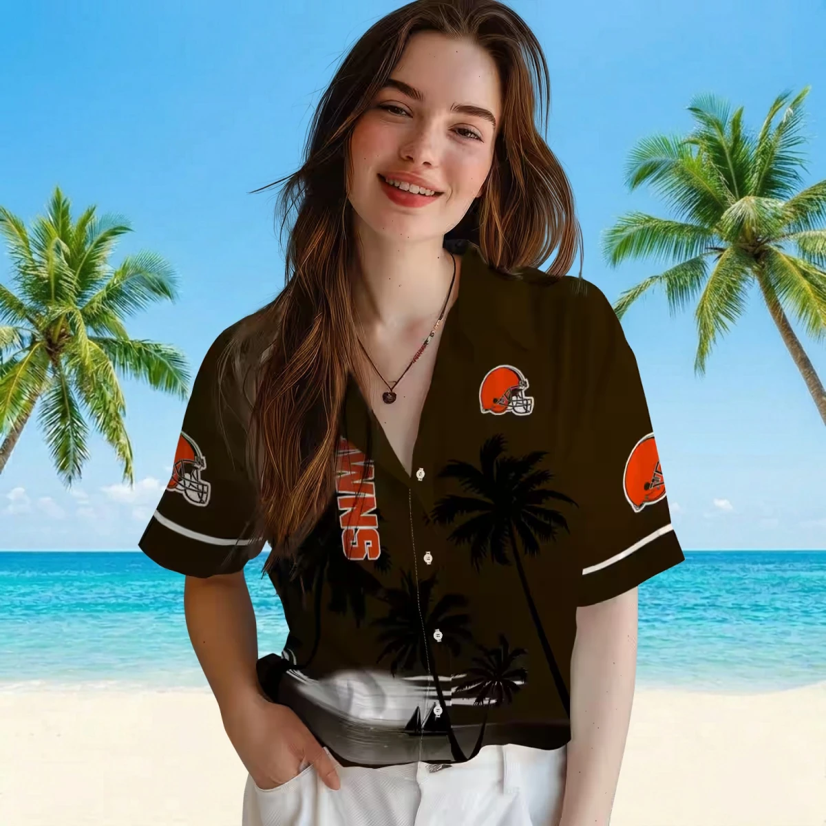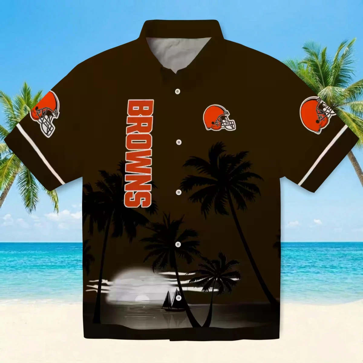 Cleveland Browns Hawaiian Shirt – Beach Sunset Brown Black, Casual Button Down For Men & Women