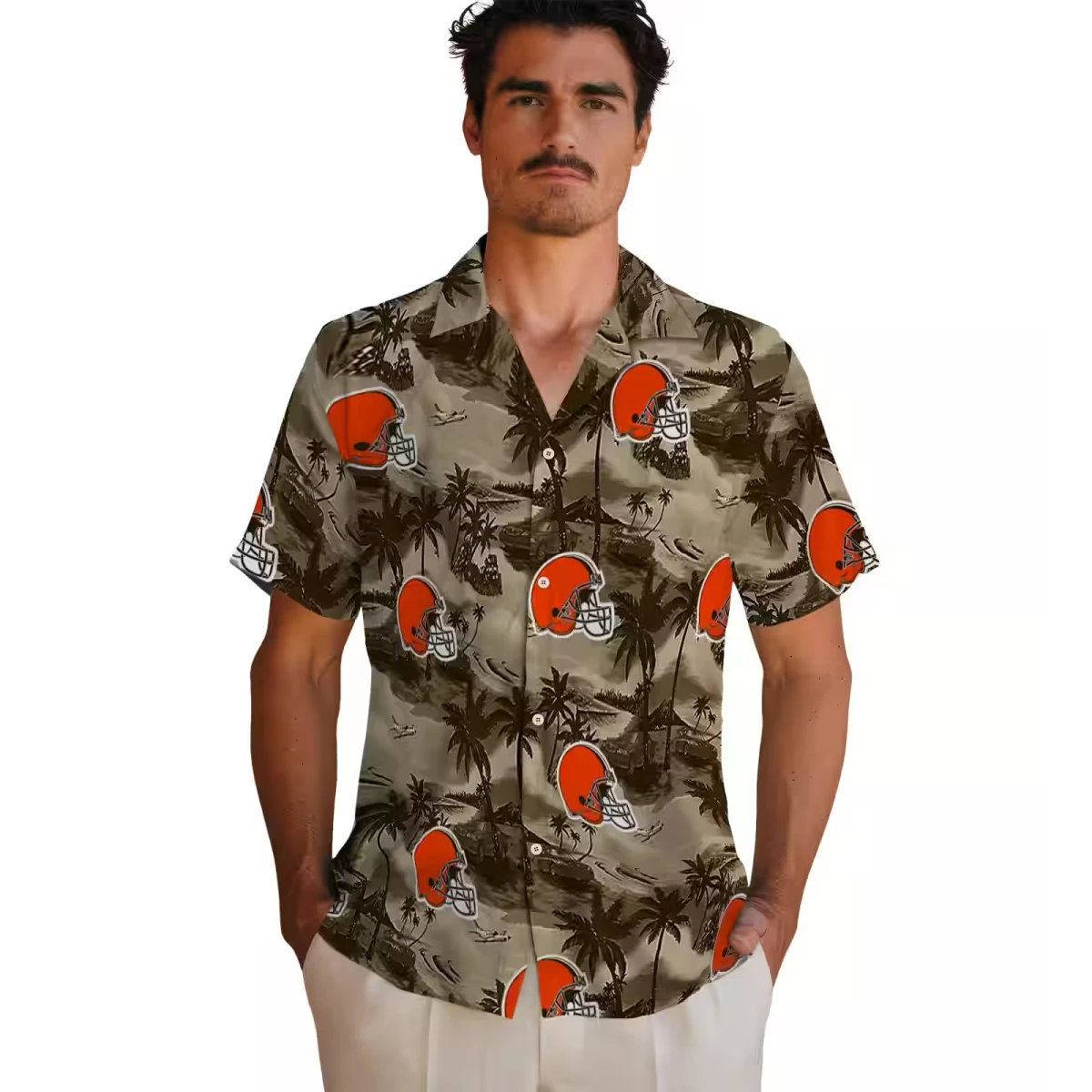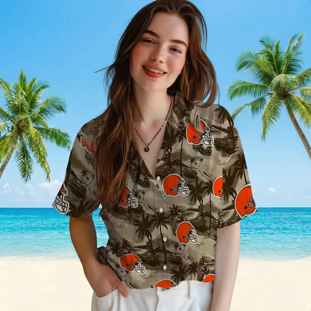 Cleveland Browns Hawaiian Shirt – Coastal Palms Brown, Casual Button Down For Men & Women