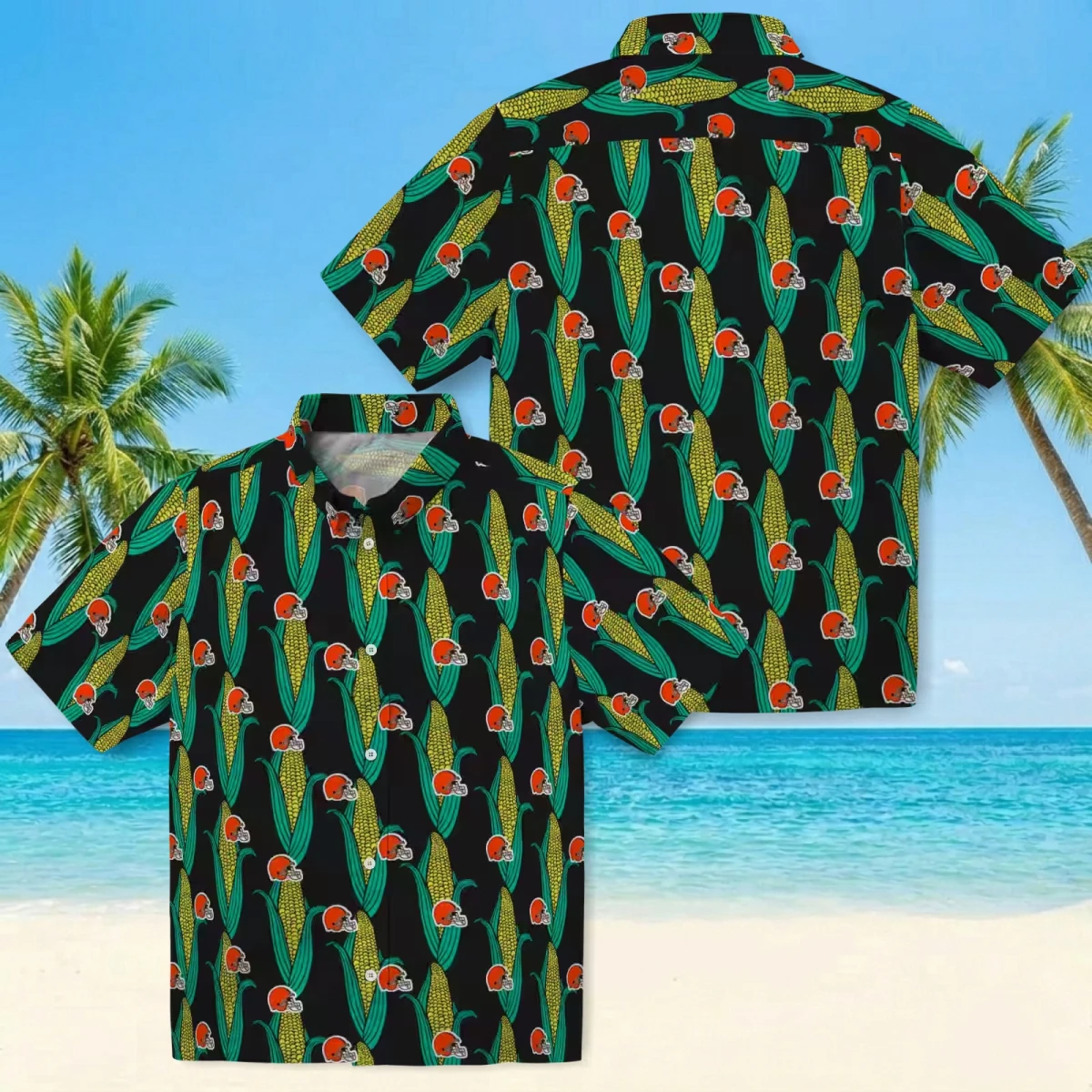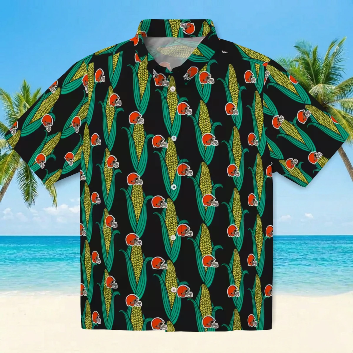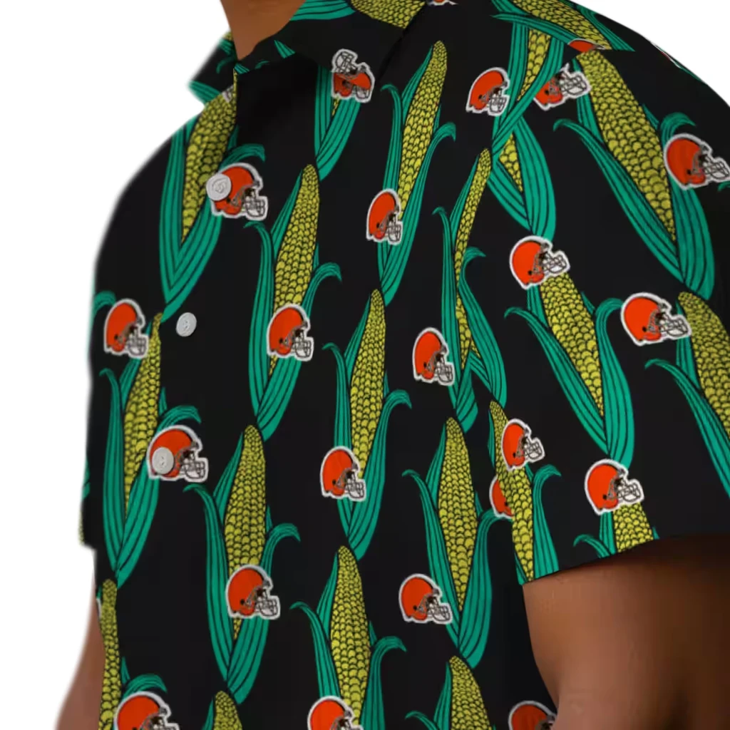 Cleveland Browns Hawaiian Shirt – Corn Motifs Black Green, Casual Button Down For Men & Women