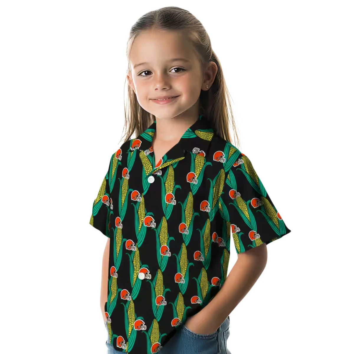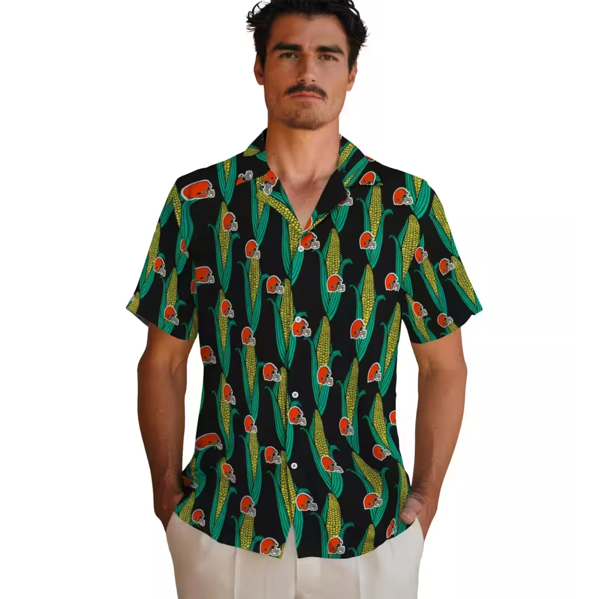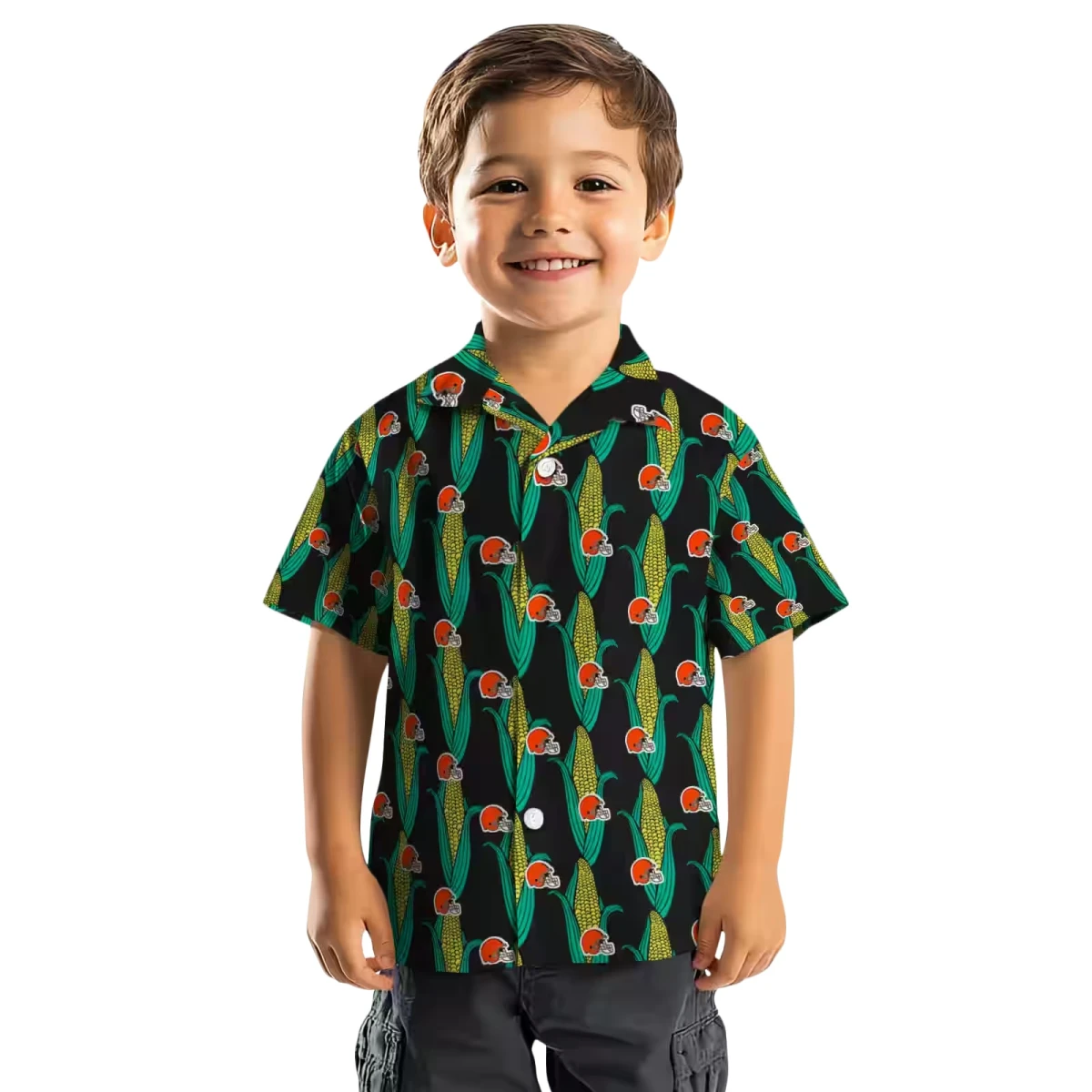 Cleveland Browns Hawaiian Shirt – Corn Motifs Black Green, Casual Button Down For Men & Women