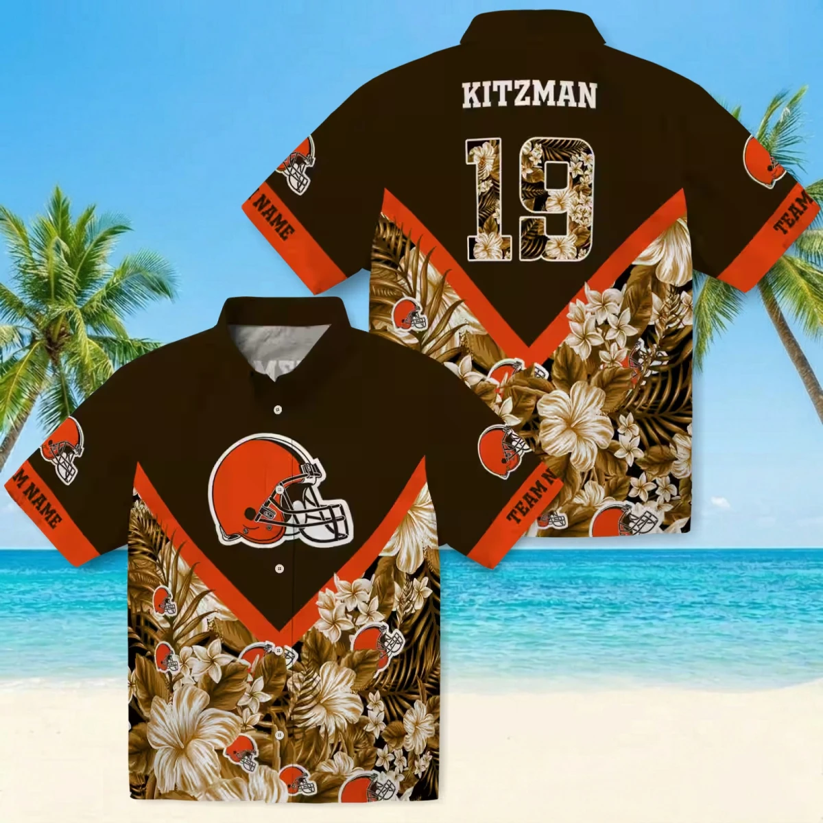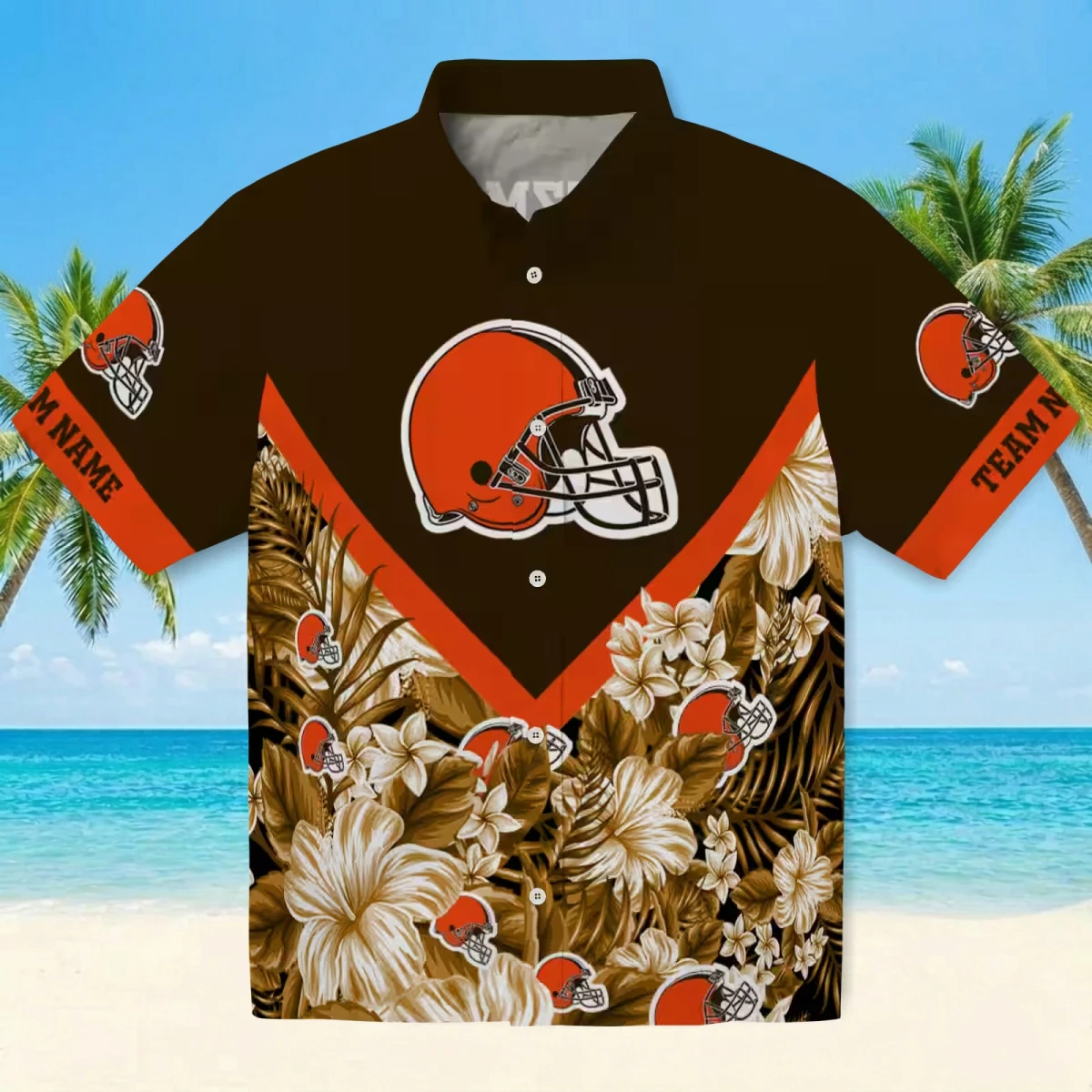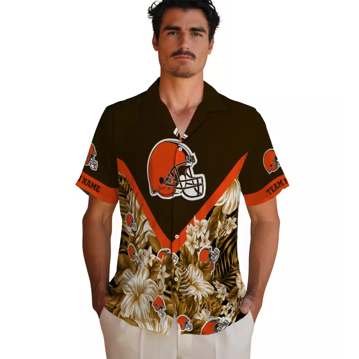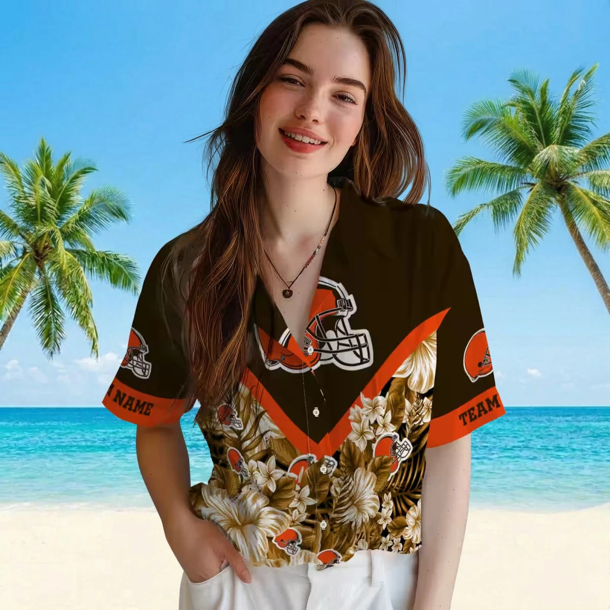 Cleveland Browns Hawaiian Shirt – Custom Floral Chevron Brown, Casual Button Down For Men & Women