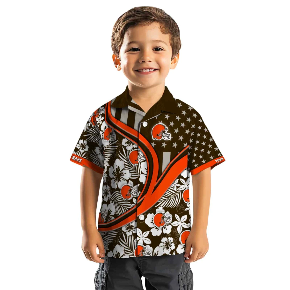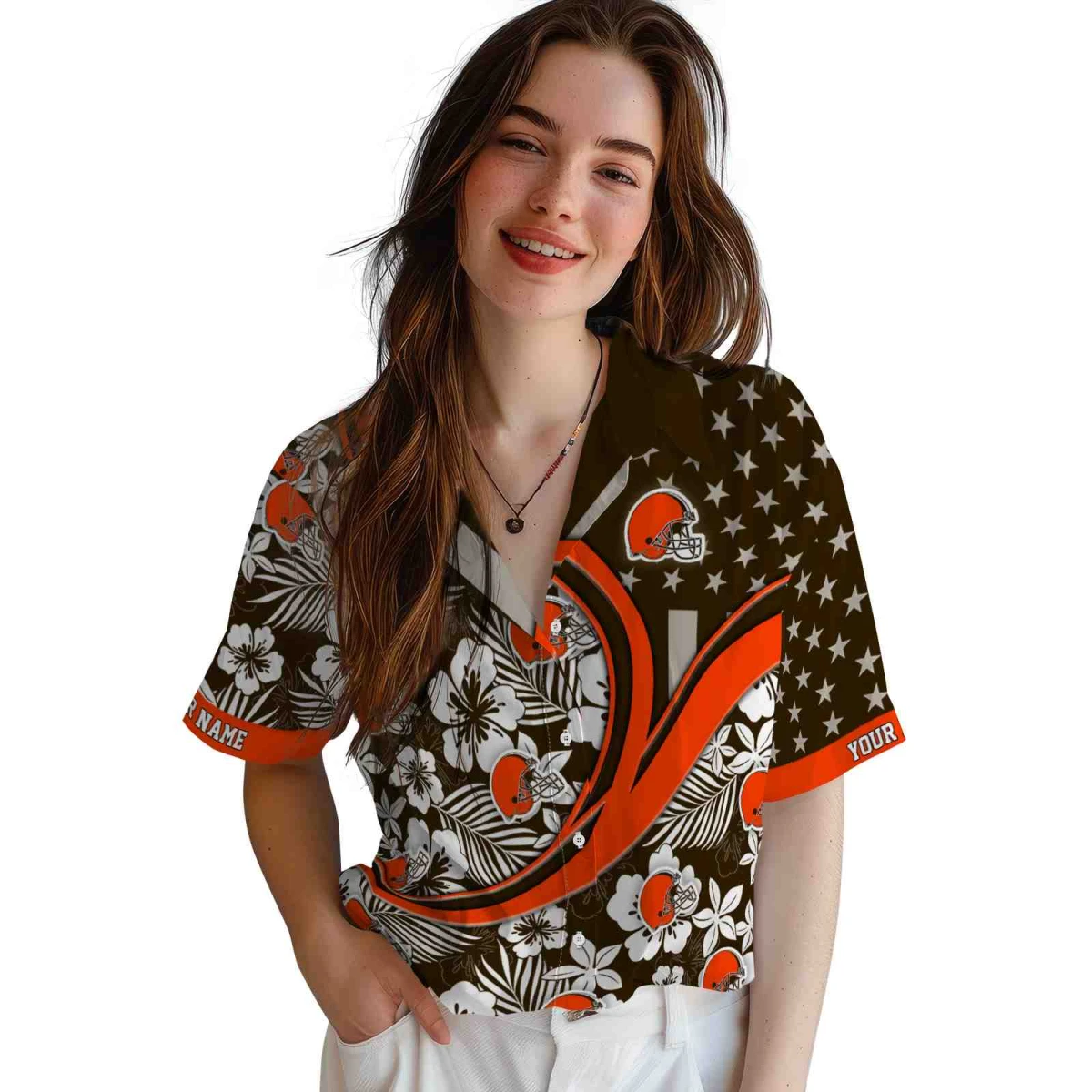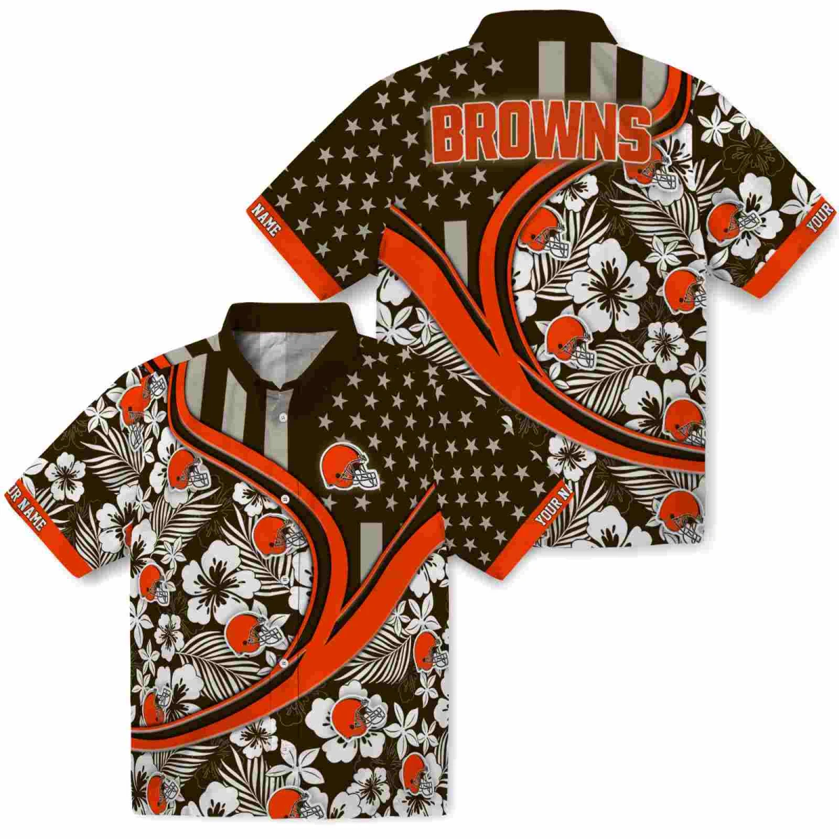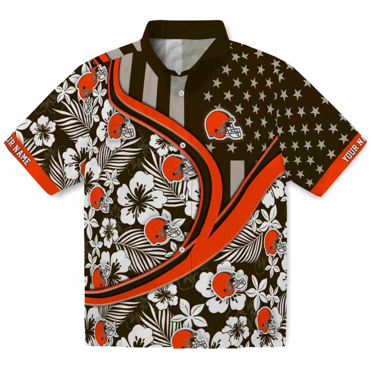 Cleveland Browns Hawaiian Shirt – Custom Floral Wave Brown White, Casual Button Down For Men & Women