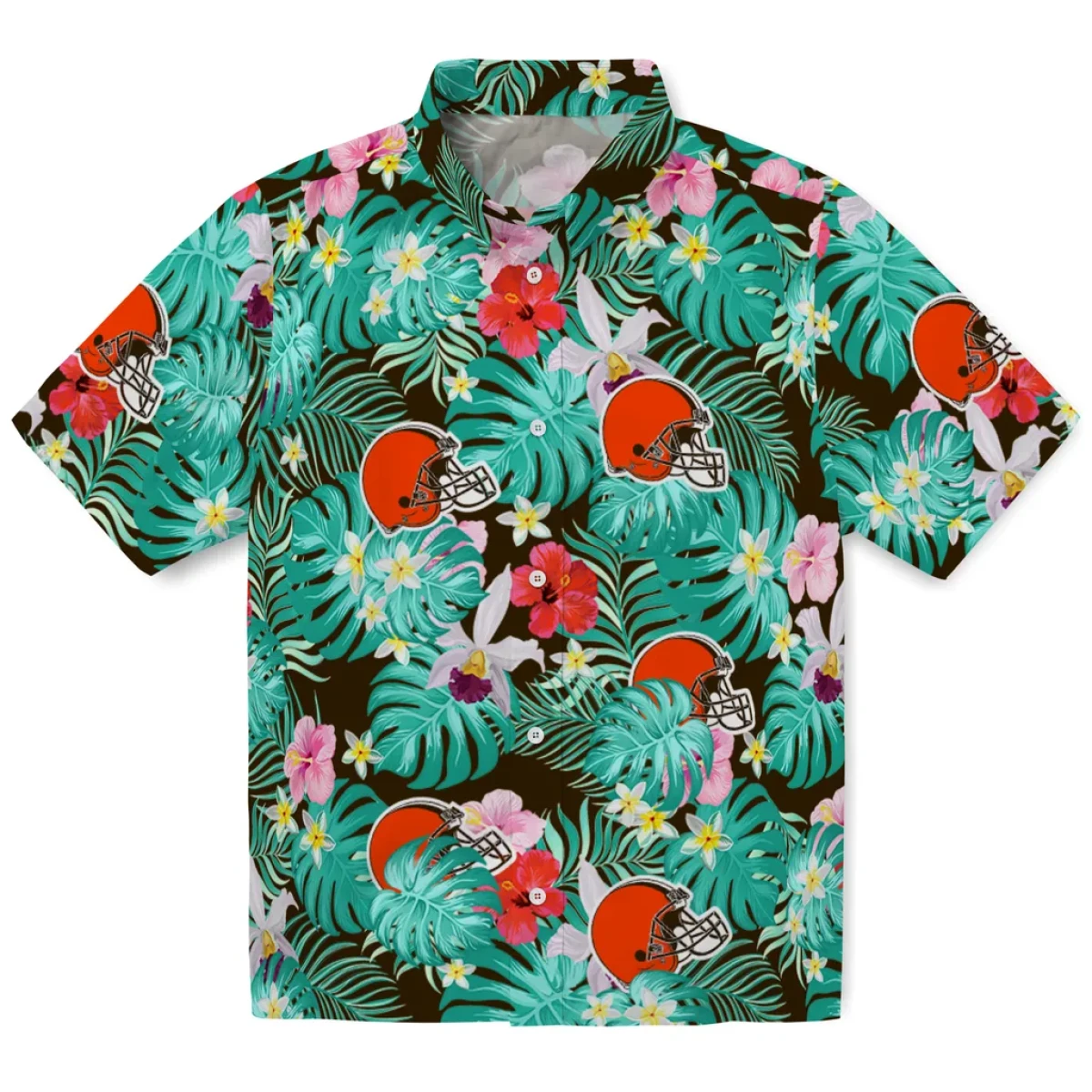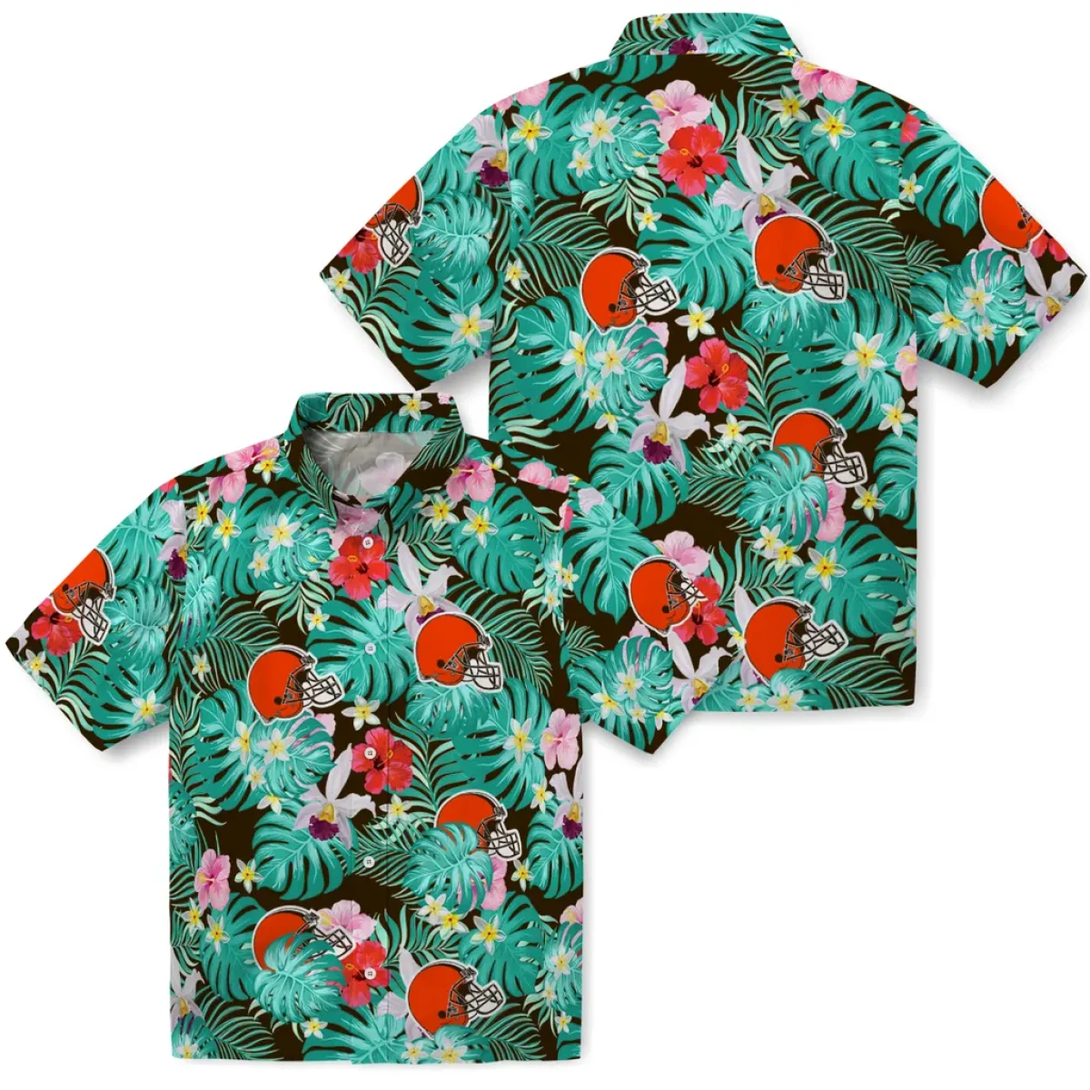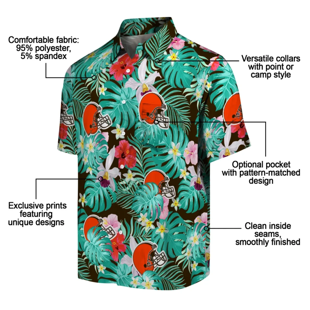 Cleveland Browns Hawaiian Shirt – Custom Hibiscus Blossoms Brown, Casual Button Down For Men & Women