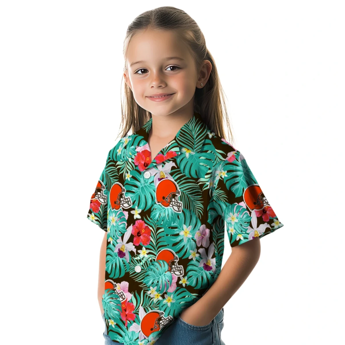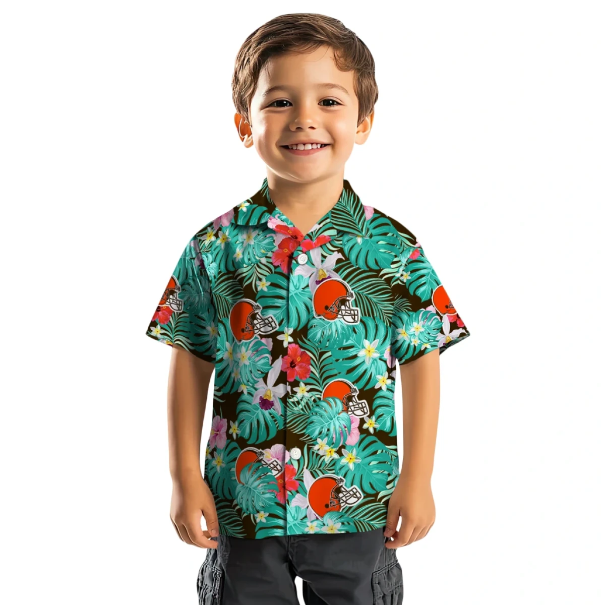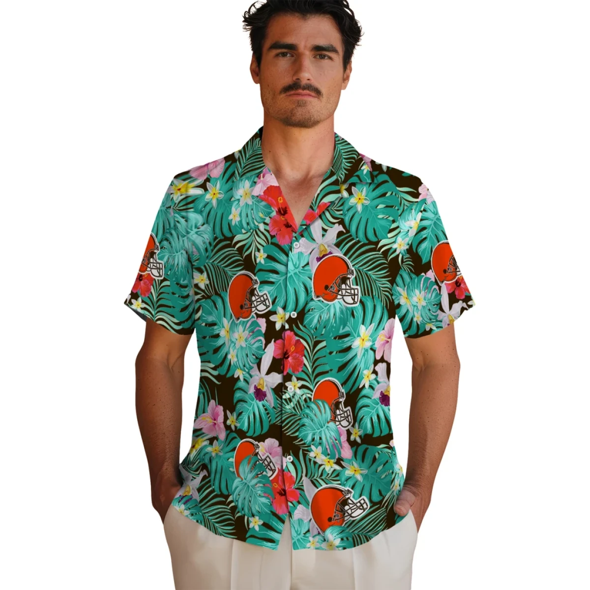 Cleveland Browns Hawaiian Shirt – Custom Hibiscus Blossoms Brown, Casual Button Down For Men & Women