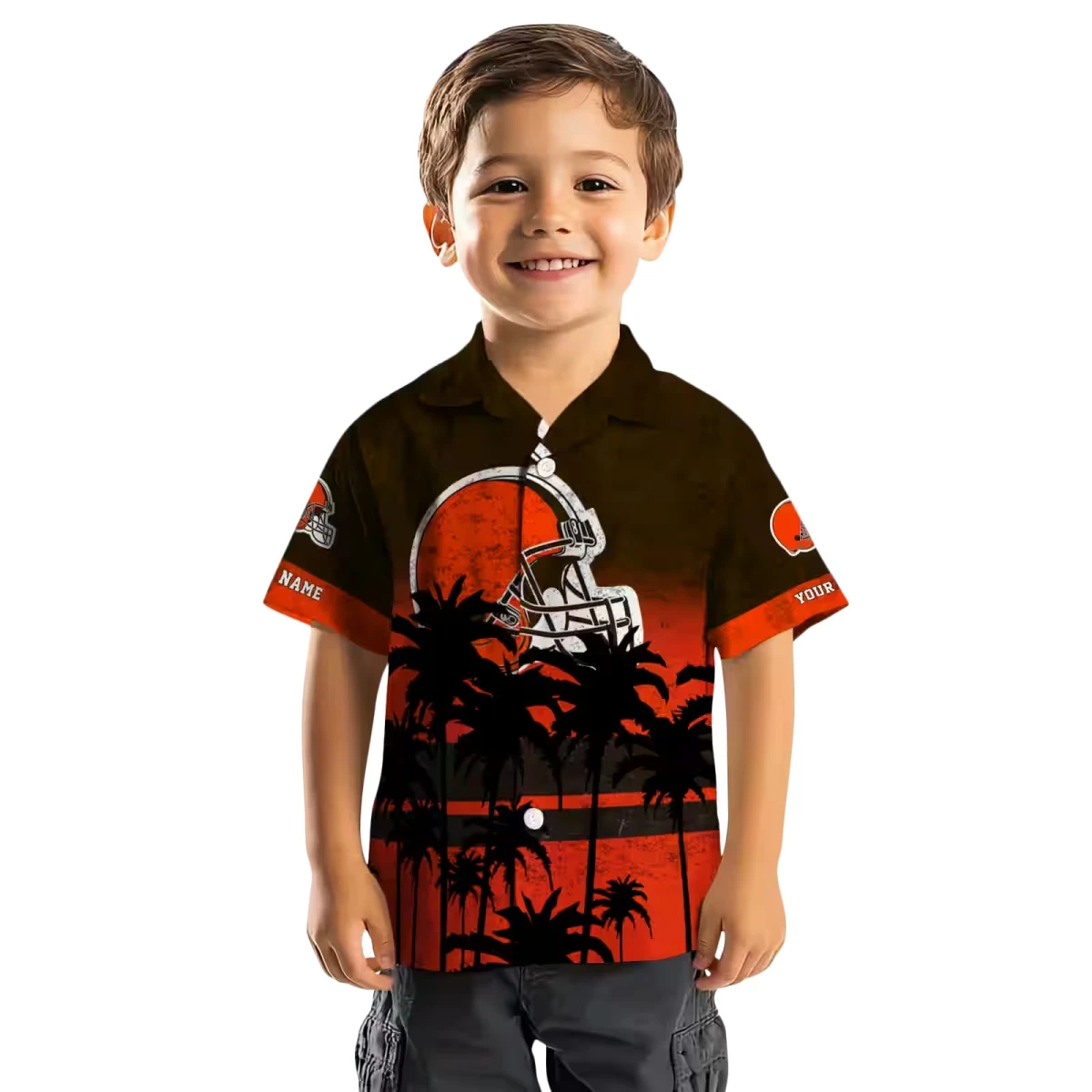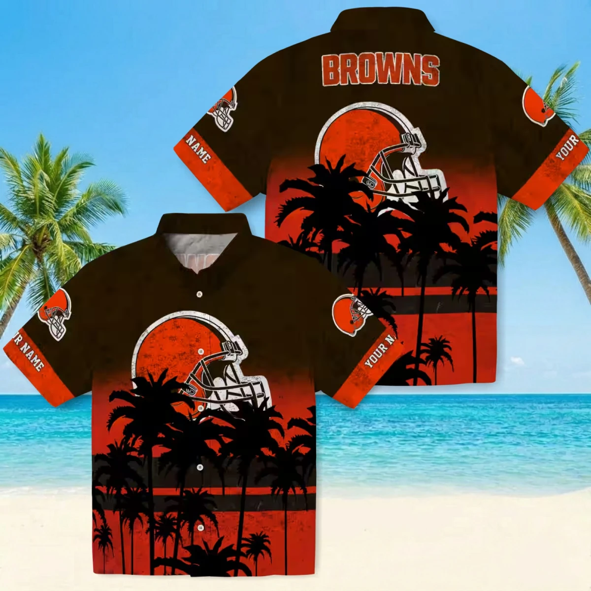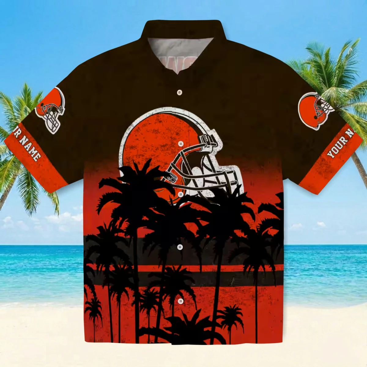 Cleveland Browns Hawaiian Shirt – Custom Sunset Pattern Brown Black, Casual Button Down For Men & Women